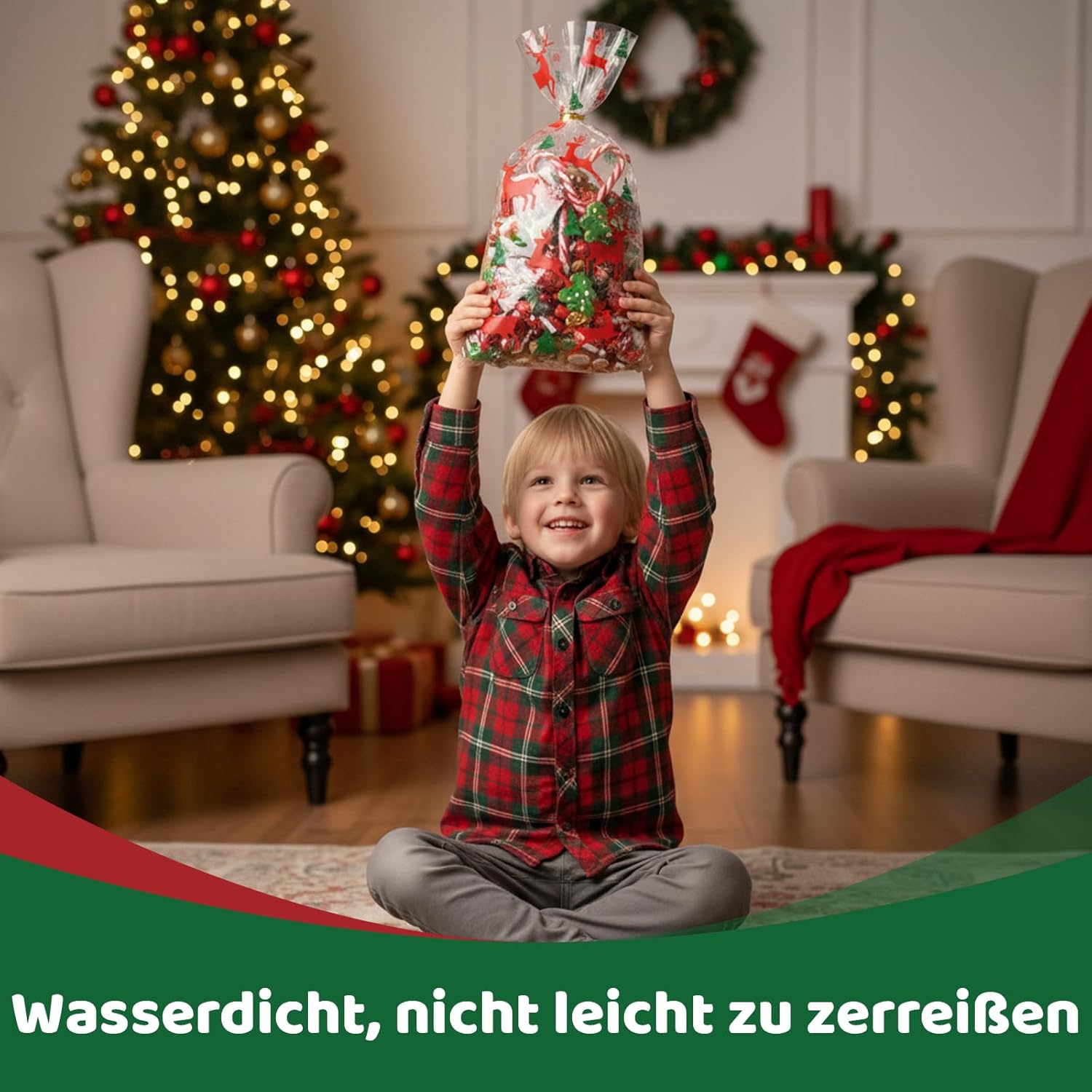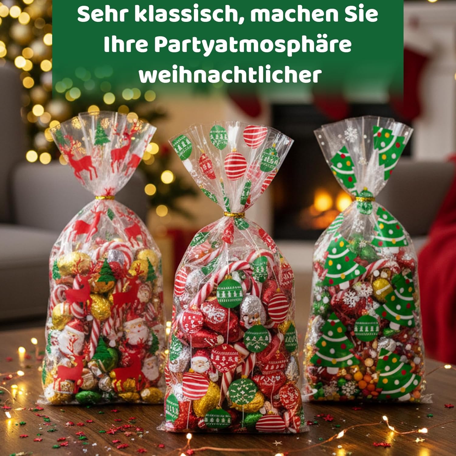Ampio set di sacchetti regalo di Natale: contiene 150 sacchetti regalo di Natale di alta qualità e 180 cravatte in diversi colori; Ideale per avvolgere biscotti, piccoli regali o dolci Pratiche fascette: le 180 fascette incluse consentono un metodo di chiusura facile e sicuro; Evita che il contenuto cada e garantisce una presentazione attraente. Design festivi: i sacchetti per biscotti natalizi hanno motivi e colori natalizi; Perfetto per organizzare feste di Natale, attività scolastiche o riunioni di famiglia. Facile da usare: il sacchetto regalo di Natale è facile da riempire e chiudere; Particolarmente pratico per genitori e insegnanti durante la preparazione delle attività natalizie. Utilizzo versatile: i sacchetti per biscotti non sono adatti solo per i biscotti, ma anche per piccoli regali, caramelle o utensili artigianali; Versatile in vari scenari natalizi