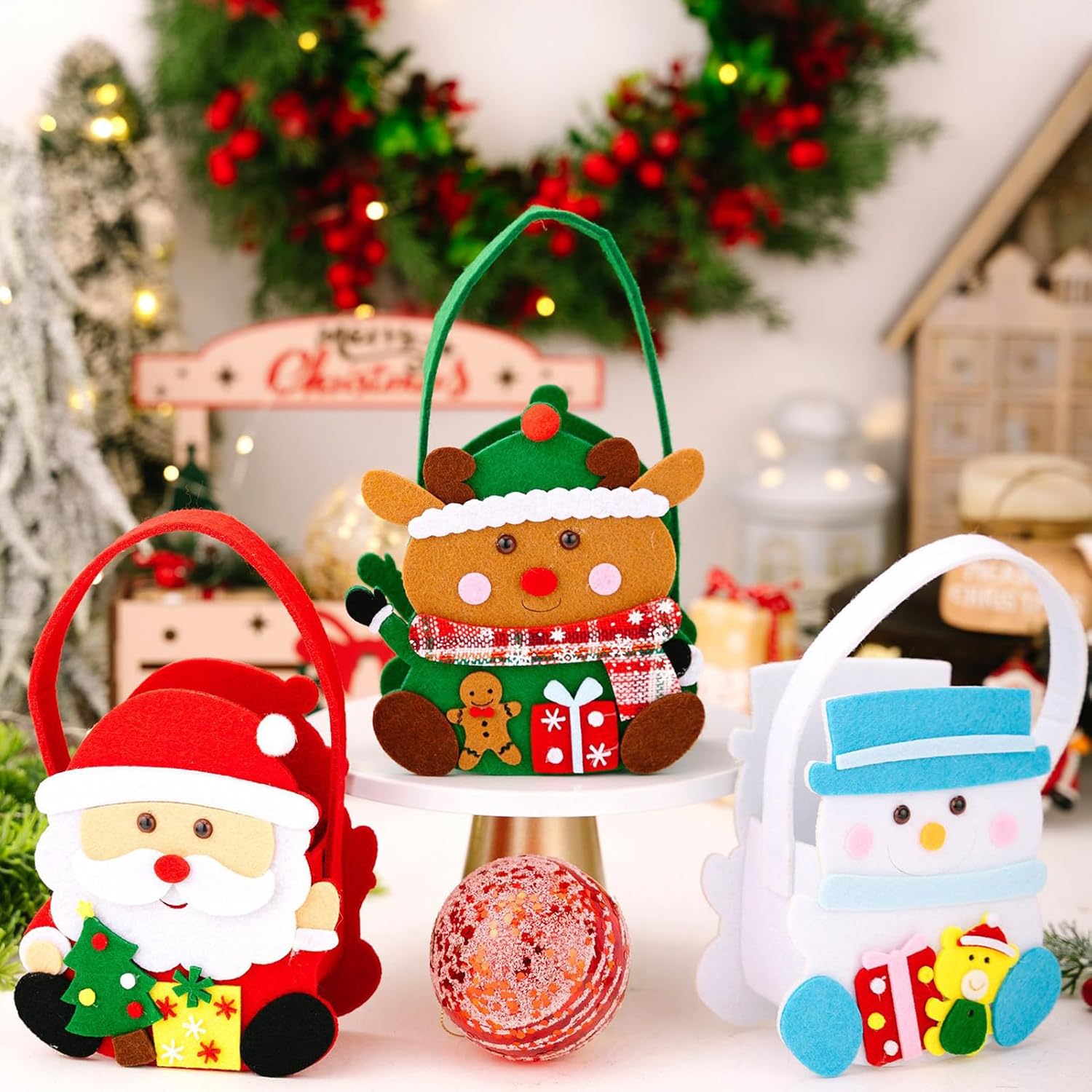 Facile da trasportare: struttura compatta ma spaziosa, queste borse natalizie contengono regali, snack e bottiglie senza sforzo. La loro leggerezza e portabilità garantiscono praticità pratica per riunioni festive o shopping, pur mantenendo un aspetto elegante e festoso. Condivisione semplificata: con tre bustine incluse per confezione, questo prodotto offre un'ampia quantità appositamente progettata per famiglie numerose e riunioni festive. Garantisce una facile distribuzione durante le celebrazioni, rafforzando la magia del Natale con dolcetti convenienti. Robustezza garantita: questi sacchetti per dolcetti natalizi realizzati in resistente tessuto non tessuto e con manici rinforzati rimangono intatti per la distribuzione di dolci o articoli per feste durante le celebrazioni di fine anno, uso affidabile e senza strappi. Atmosfera festosa: questo sacchetto regalo di Natale presenta i classici colori festivi e un tema tradizionale che rafforzano immediatamente le festività natalizie. Il suo design visivamente accattivante dona un tocco affascinante a qualsiasi celebrazione natalizia o momento di scambio di regali, creando un'atmosfera calda e accogliente per gli eventi stagionali. Indispensabili per le vacanze: queste borse natalizie svolgono il doppio compito funzionando sia come versatile confezione regalo che come decorazione da appendere, perfette per conservare caramelle e dolcetti, amplificando la mattina di Natale e le riunioni di famiglia