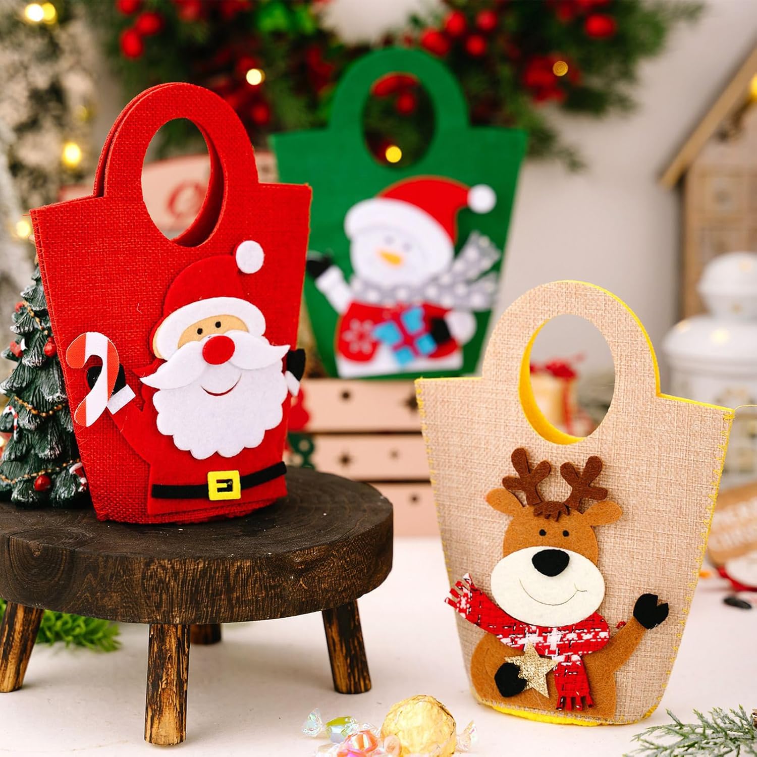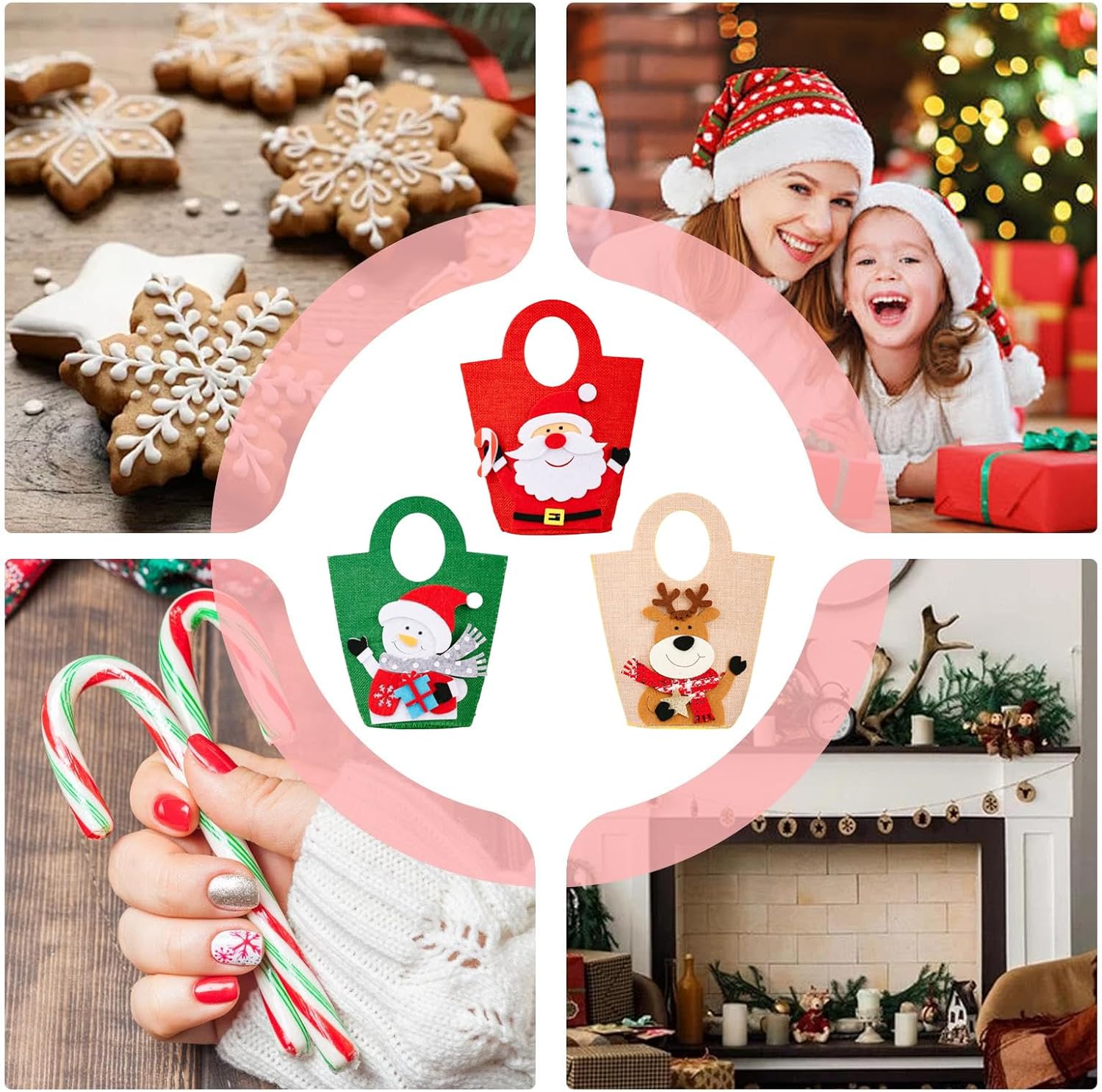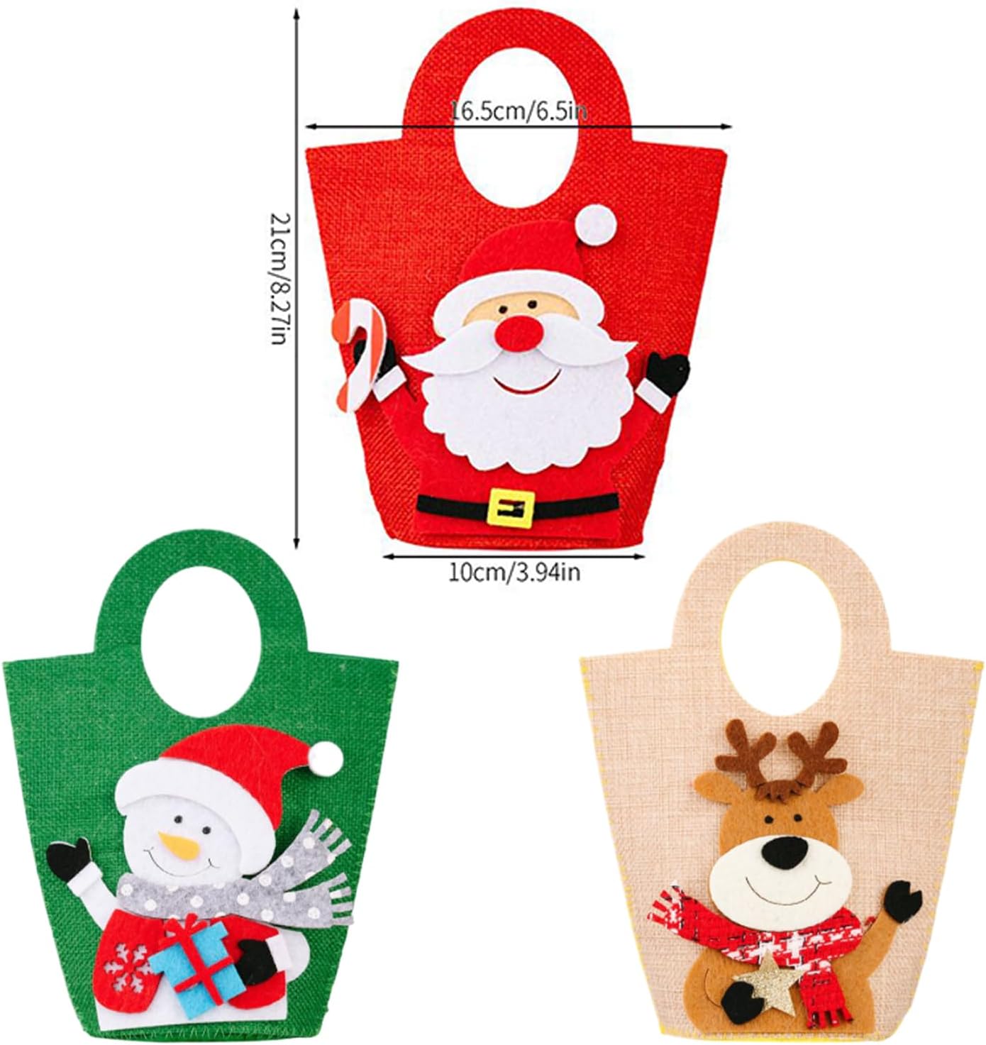 Ideale per regali e dolcetti: le loro dimensioni ben progettate ti consentono di conservare in sicurezza dolci e snack rimanendo leggeri e portatili. Perfetto per feste scolastiche, scambi di regali o tea party di quartiere. Comoda confezione festiva: i sacchetti regalo natalizi migliorano la presentazione di snack e dolcetti con il loro design versatile, ideali per confezionare regali, feste o decorare la tua casa durante le vacanze di Natale e Capodanno. Condivisione festiva resa semplice: questo set di tre sacchetti regalo natalizi semplifica la distribuzione dei dolcetti tra i membri della famiglia o gli ospiti, creando un'atmosfera ideale per condividere momenti preziosi con i propri cari durante le festività natalizie. Garantisce un'organizzazione conveniente e ricordi memorabili. Ideale per i dolcetti natalizi: progettati con elementi natalizi tradizionali e ricchi colori stagionali, questi sacchetti per biscotti forniscono un imballaggio perfetto per i dolcetti festivi, migliorando l'atmosfera e rendendo ogni occasione speciale e memorabile. Resistenza e durata: Realizzati in tessuto non tessuto resistente e riutilizzabile, questi sacchetti di caramelle natalizie garantiscono una presa sicura di dolcetti e regali per le feste, resistendo agli strappi per un uso affidabile durante le celebrazioni festive