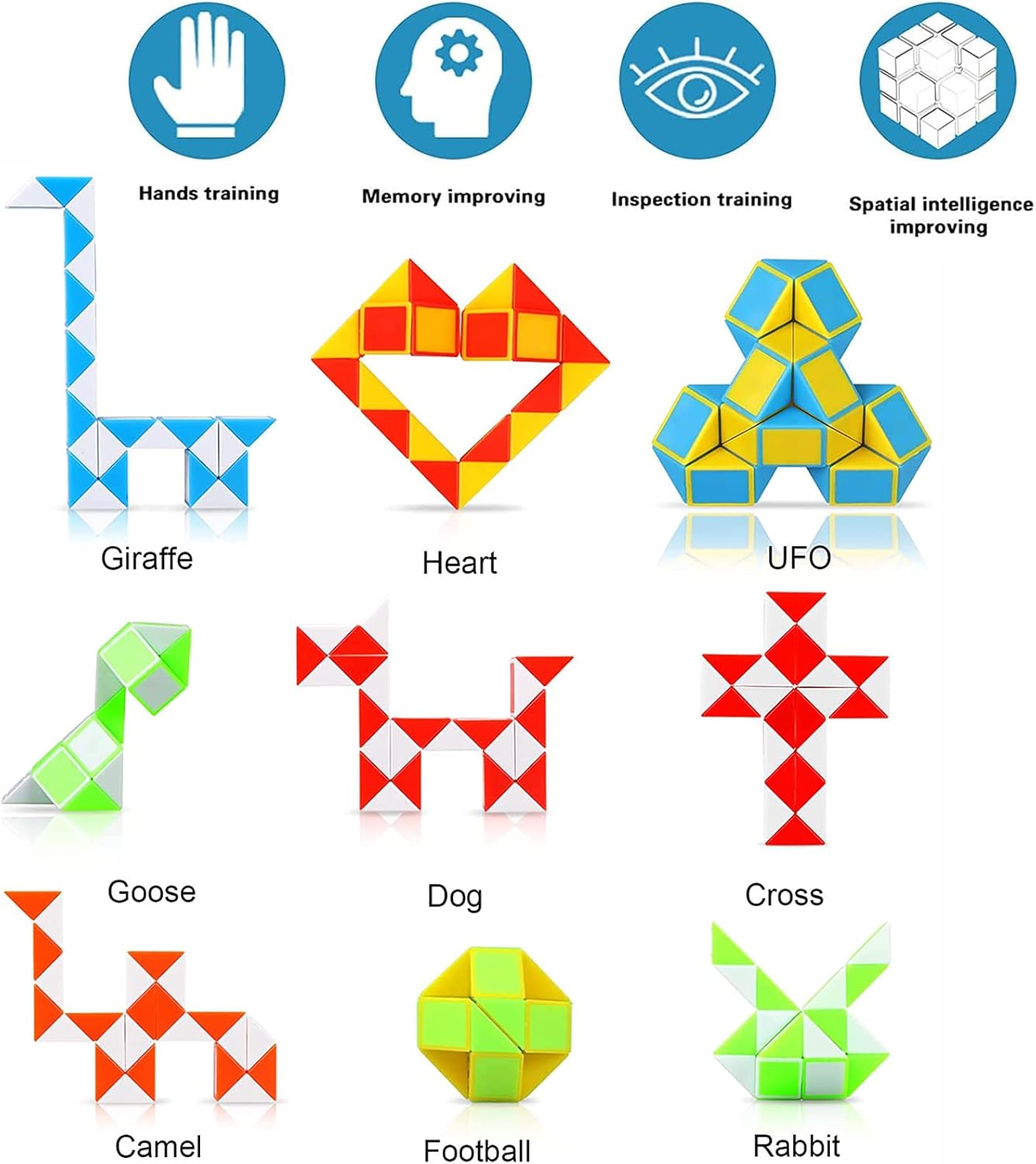 Sicurezza e rispetto dell'ambiente: realizzato in materiale ecologico, non tossico e durevole. Regalo perfetto: questo è un giocattolo educativo. Per i bambini, può sviluppare le loro capacità cerebrali e di pensiero logico. Per gli adulti, può alleviare la pressione dopo il lavoro. Il serpente magico può assumere una varietà di forme, ad es. come serpenti, cani, fenicotteri, chiavi, linee rette, scale e altre forme diverse, ecc. Ampie applicazioni: il serpente magico è un regalo ideale per Natale, Halloween, riempimento del calendario dell'Avvento per bambini o souvenir per compleanni e omaggi dei bambini. Incluso nella consegna: Il serpente magico contiene 12 pezzi di giocattoli serpenti magici (Nota: questi colori sono casuali)