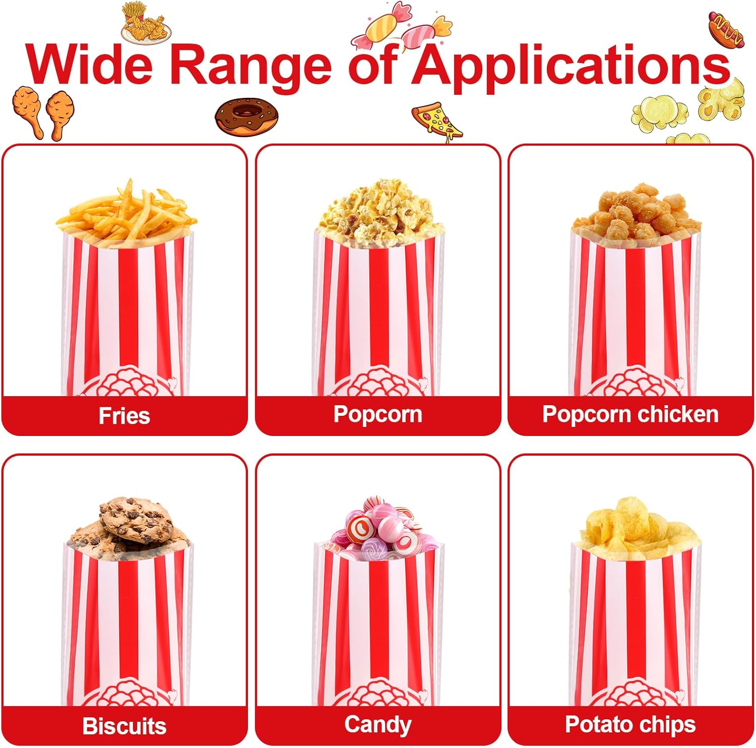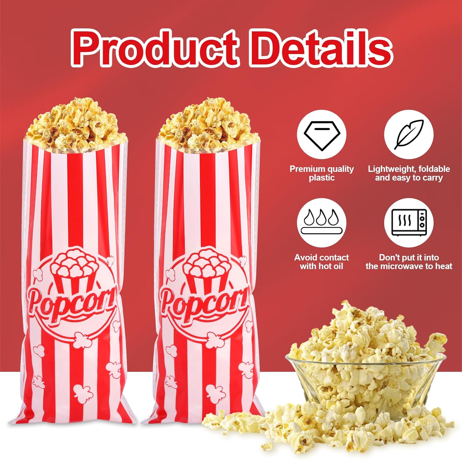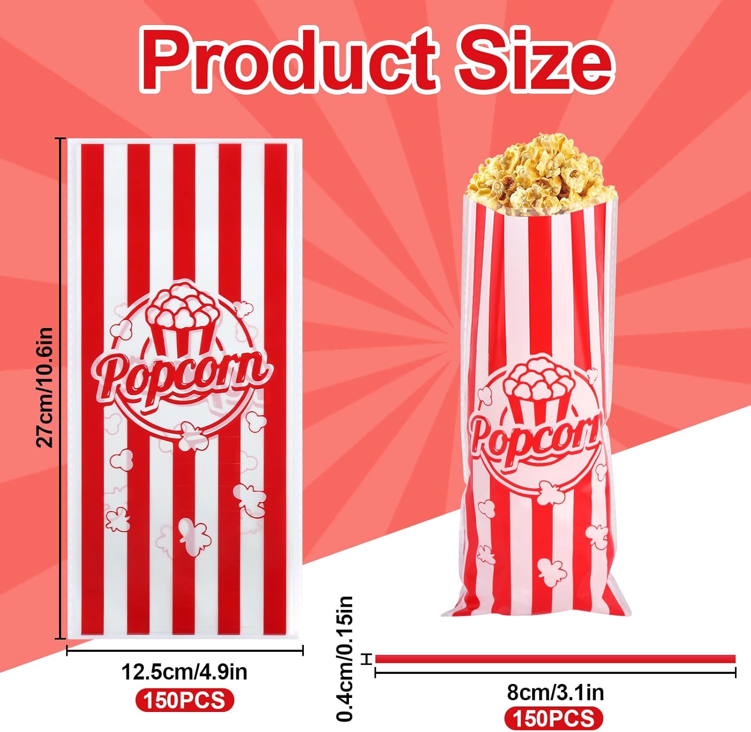 【Set di sacchetti per popcorn】: riceverai 150 pezzi di sacchetti per popcorn e 150 pezzi di seta bondage. I piccoli sacchetti di popcorn sono progettati con classiche strisce rosse e bianche, l'aspetto è alla moda ed elegante, che può mostrare il tuo gusto e la tua personalità unici, ed è un must per serate di cinema in famiglia, picnic all'aperto e feste. 【Sacchetti per popcorn in polipropilene】: i piccoli sacchetti per popcorn sono realizzati in polipropilene di alta qualità, sicuri e inodore, impediscono la fuoriuscita di grasso e mantengono i vestiti puliti. Non devi preoccuparti che l'olio fuoriesca e macchi i tuoi vestiti, così potrai goderti i tuoi deliziosi popcorn senza preoccupazioni. 【Dimensioni adeguate】: Ogni tazza di popcorn è lunga 27 cm e larga 12,5 cm, le scatole di popcorn possono contenere una varietà di popcorn, snack, caramelle, piccoli regali, pasticcini, ecc., tale capacità può fornire una porzione abbondante alle feste dei bambini, ed è anche una buona porzione per la maggior parte degli adulti per soddisfare le loro diverse esigenze. Facile da usare: i sacchetti per caramelle con scatola di popcorn sono semplici nel design e leggeri, facili da riporre e trasportare, comodi da usare in varie occasioni, particolarmente adatti per attività all'aperto o viaggi, devi solo mettere i popcorn nel contenitore dei popcorn per goderti i deliziosi popcorn, quando non in uso, possono essere facilmente piegati e riposti nella borsa, perfetti per confezionare e condividere i pasti. 【Ampia gamma di usi】: le borse da festa per il cinema possono essere utilizzate non solo per i popcorn, ma anche per caramelle, biscotti, noccioline, patatine e una varietà di altri snack per le feste. Che tu stia guardando un film a casa, facendo un picnic all'aperto o festeggiando il compleanno di un bambino, questi sacchetti di popcorn aggiungeranno divertimento e praticità alla festa.