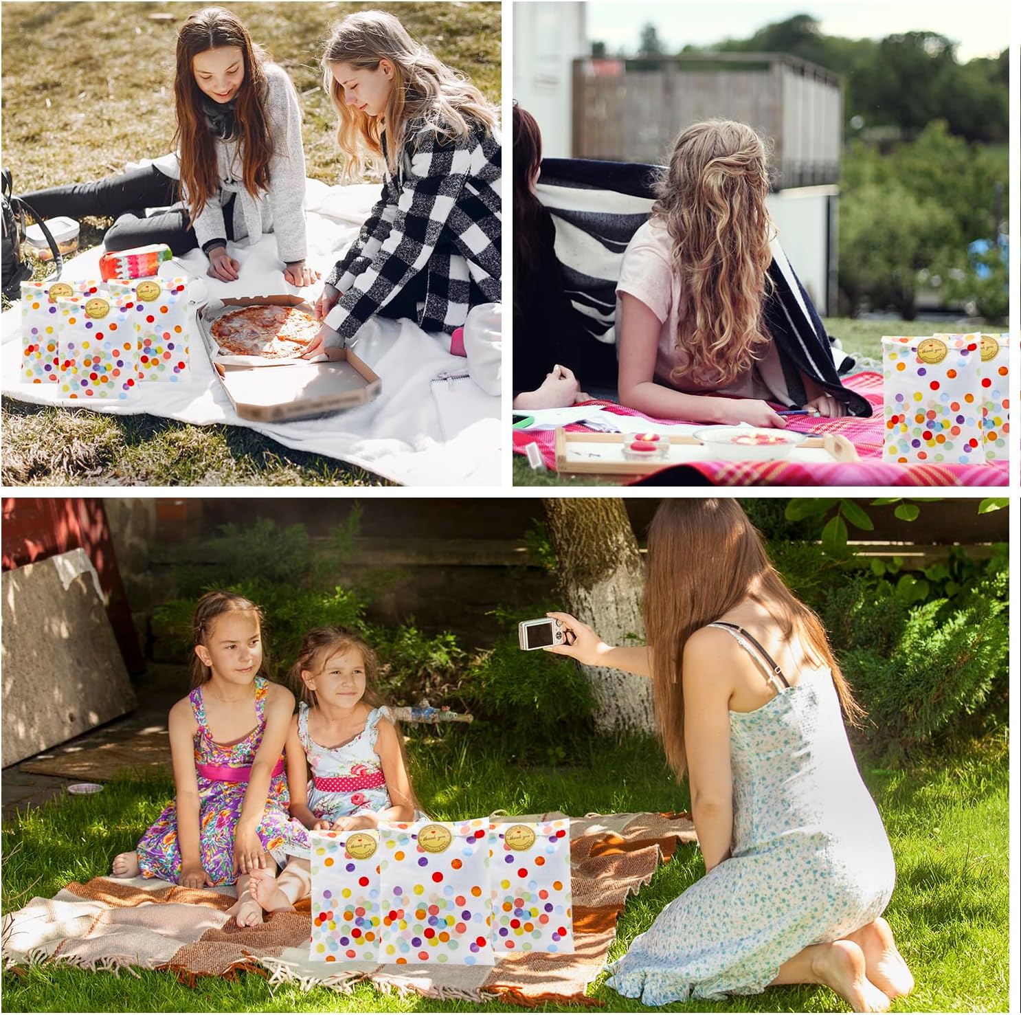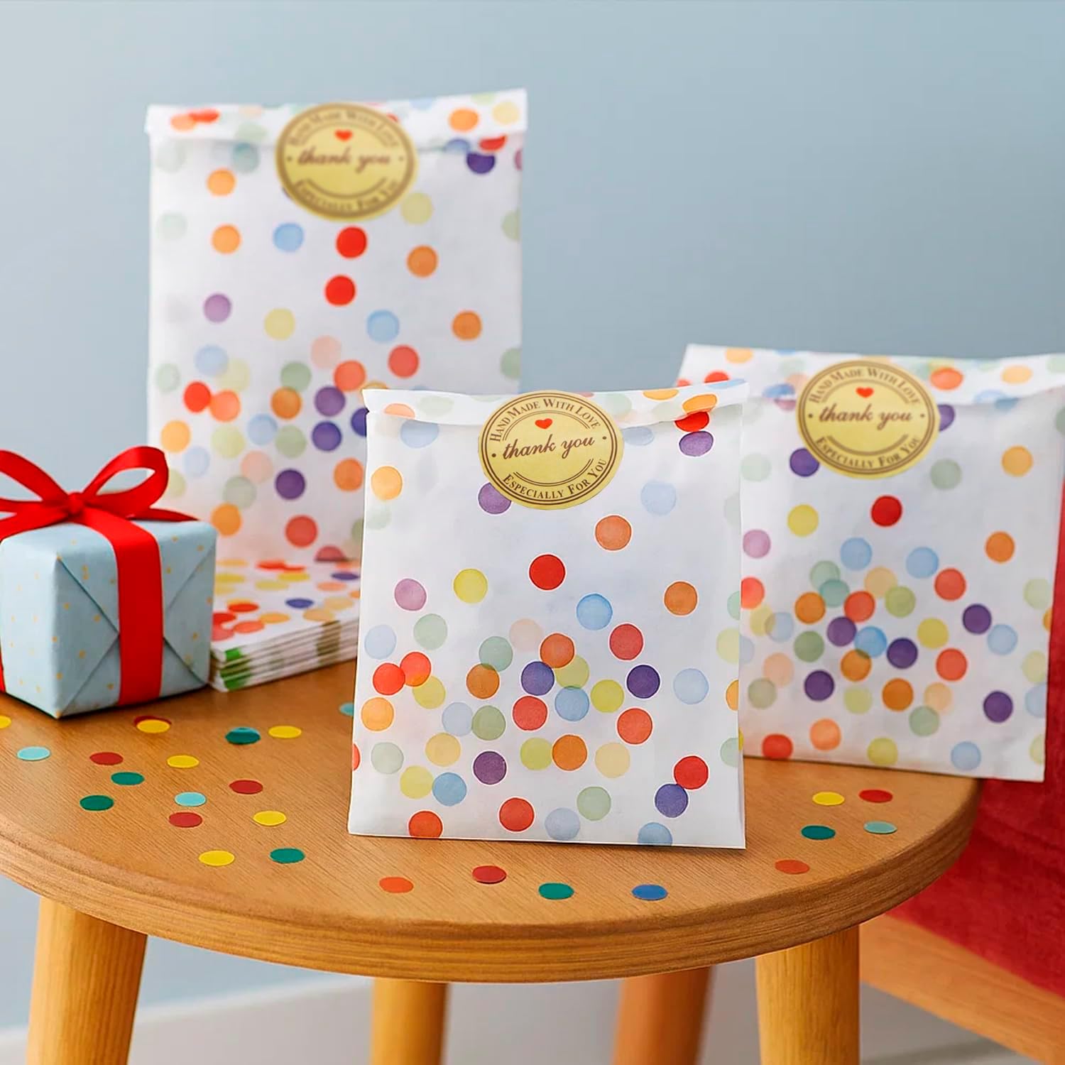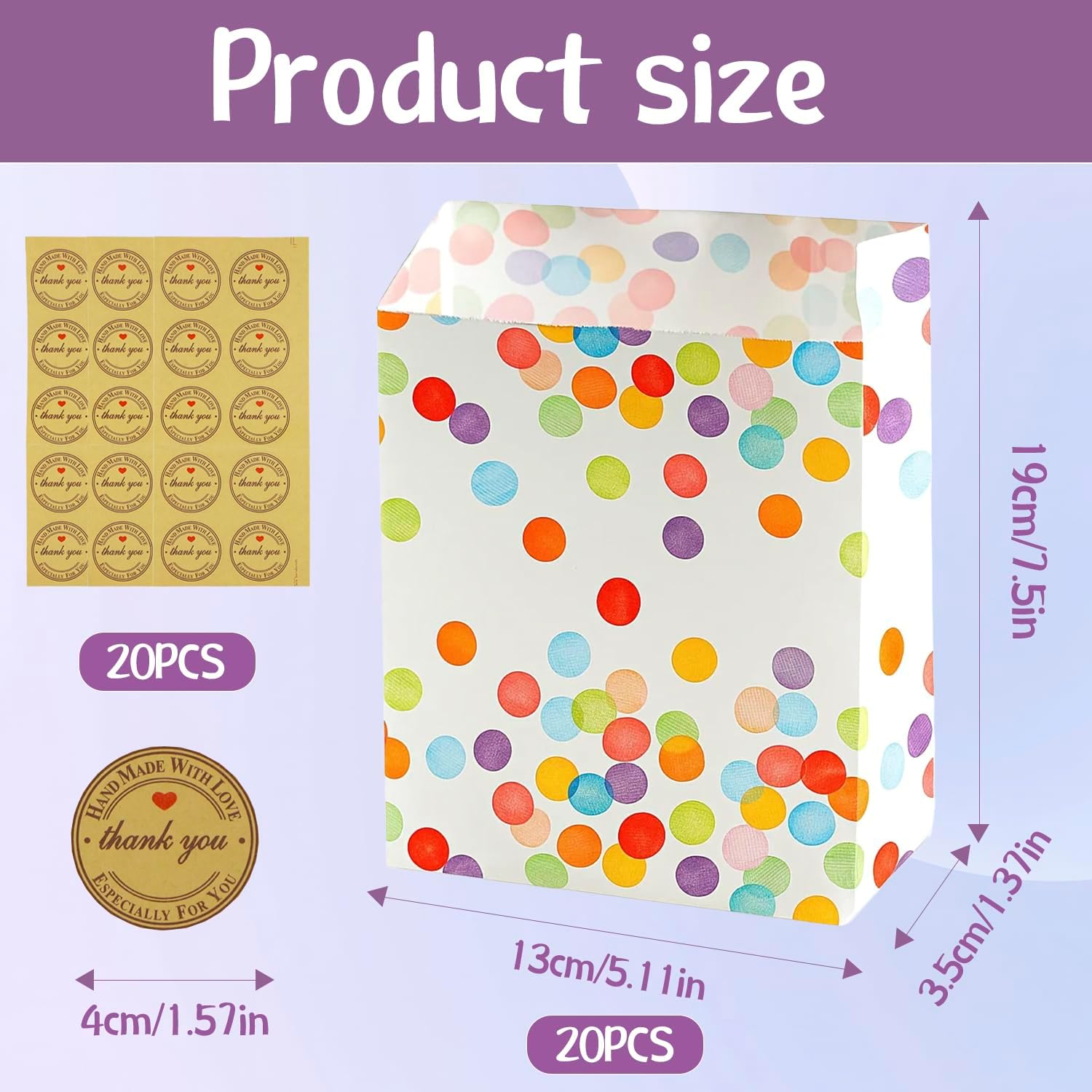 【Set di sacchetti regalo】 Riceverai 20 sacchetti di carta per il compleanno di bambini e 20 adesivi di ringraziamento, le dimensioni sono: 19 x 13 x 3,5 cm/5,71 x 4 x 1,05 pollici, il diametro degli adesivi è: 4 cm/1,57 pollici e interessante 【Adesivi adesivi】 I piccoli sacchetti di carta sono dotati di adesivi di ringraziamento abbinati, che hanno un'elevata forza adesiva, non sono solo perfetti per sigillare i sacchetti, ma anche come elementi decorativi. 【Carta kraft di alta qualità】 I sacchetti regalo sono realizzati in carta oleorepellente di alta qualità, ad alta densità. È stabile e spesso, non si deforma facilmente né si strappa, è idrorepellente e oleorepellente e blocca efficacemente i grassi di cottura. Adatto per occasioni e celebrazioni