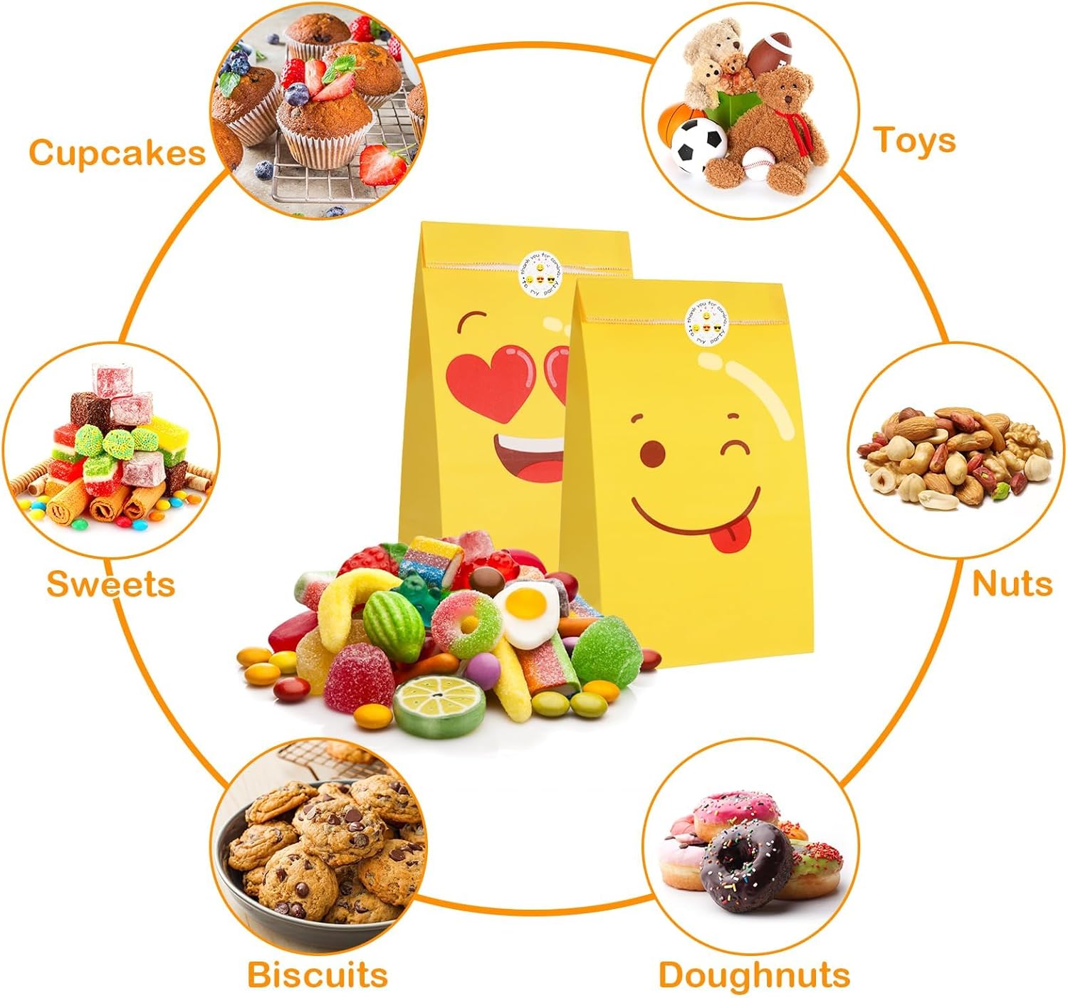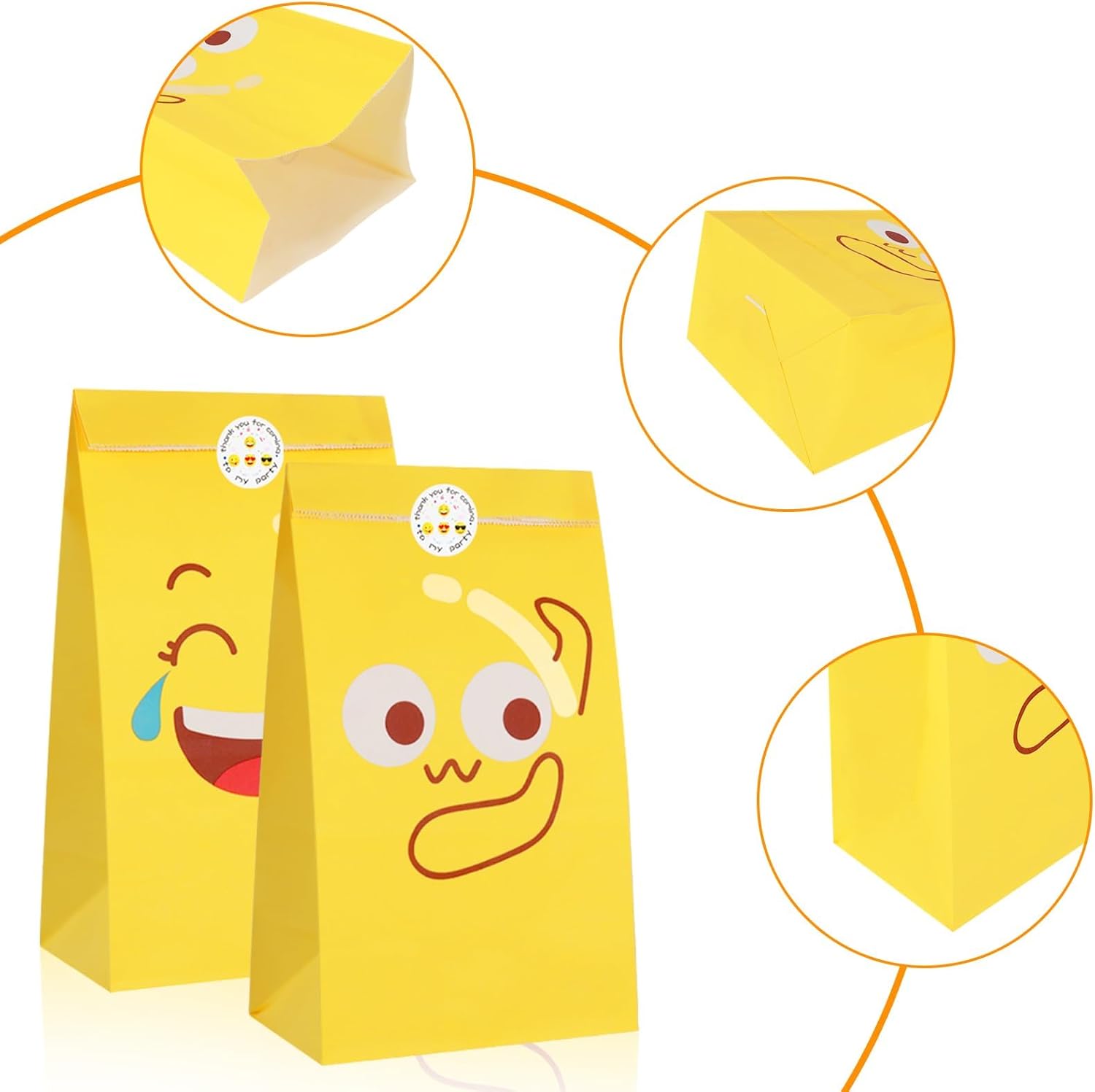 Set di sacchetti di carta per caramelle: ci sono 32 sacchetti di carta gialli in un set di sacchetti di carta, 8 stili, 4 tipi per stile. La dimensione di ciascun sacchetto di carta è 23*13*8 cm. Sia gli adulti che i bambini li adorano, possono soddisfare pienamente le tue esigenze di imballaggio quotidiane. Materiale sicuro: il sacchetto di carta è realizzato in carta kraft di alta qualità, esteticamente sofisticata, anche ecologica, robusta e durevole. Ideale per conservare torte, caramelle, biscotti e altri dolci. Adesivi multifunzionali: il set di sacchetti di carta per caramelle contiene anche 32 simpatici adesivi. Sono autoadesivi, facili da rimuovere e possono essere utilizzati per sigillare, adatti per sigillare sacchetti di carta o incollarli come decorazione e classificazione. Personalizzati e pratici: questi piccoli sacchetti regalo hanno un fondo piatto, possono piegare i sacchetti di carta per riporli. Può anche essere posizionato in posizione verticale. Multifunzionale: questi graziosi sacchetti regalo sono adatti a te. Puoi usare questi sacchetti per avvolgere dolci, regali o altri piccoli oggetti. Può essere utilizzato anche per feste, compleanni, feste estive, matrimoni o piccoli negozi come una barretta di cioccolato.