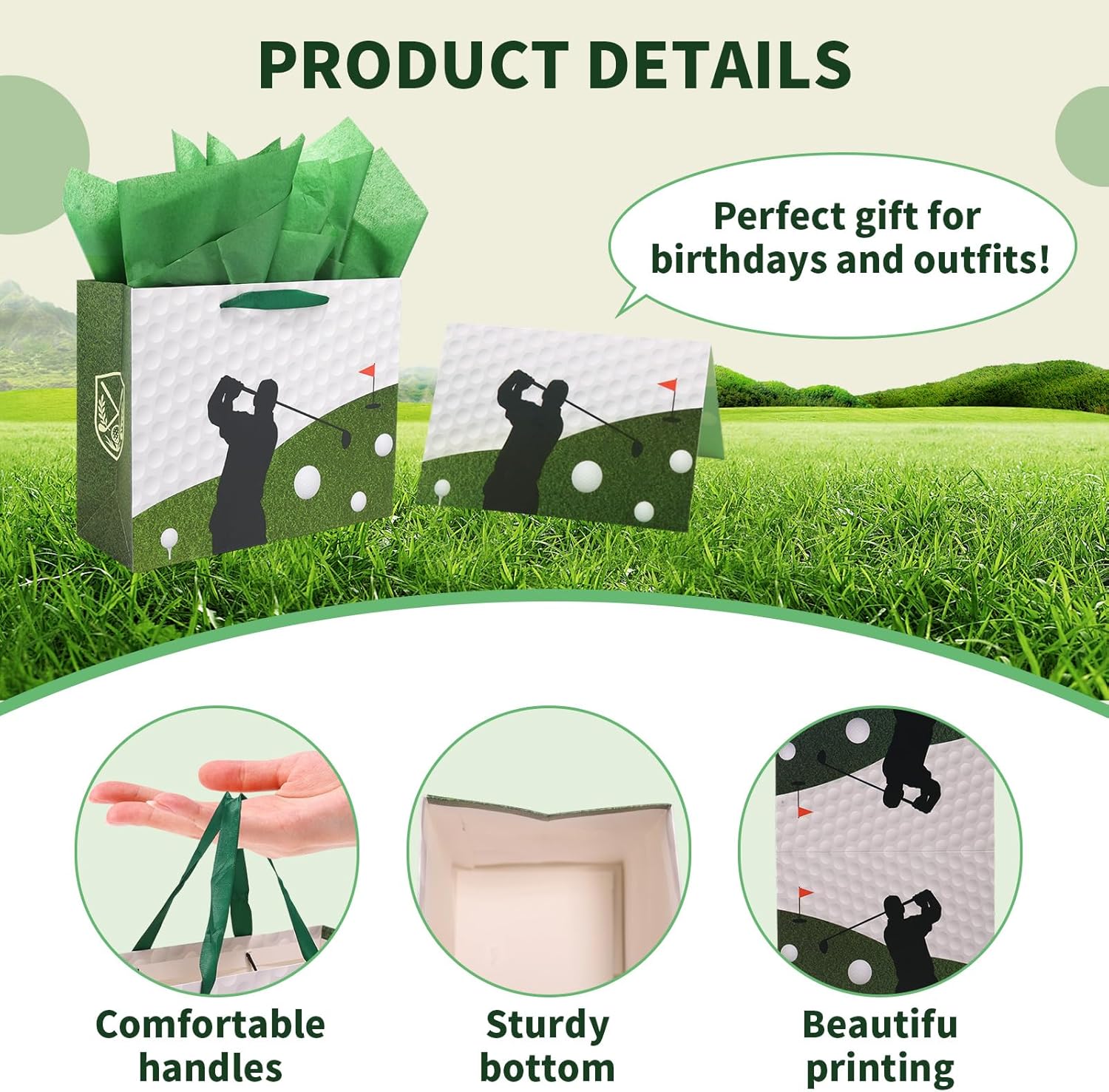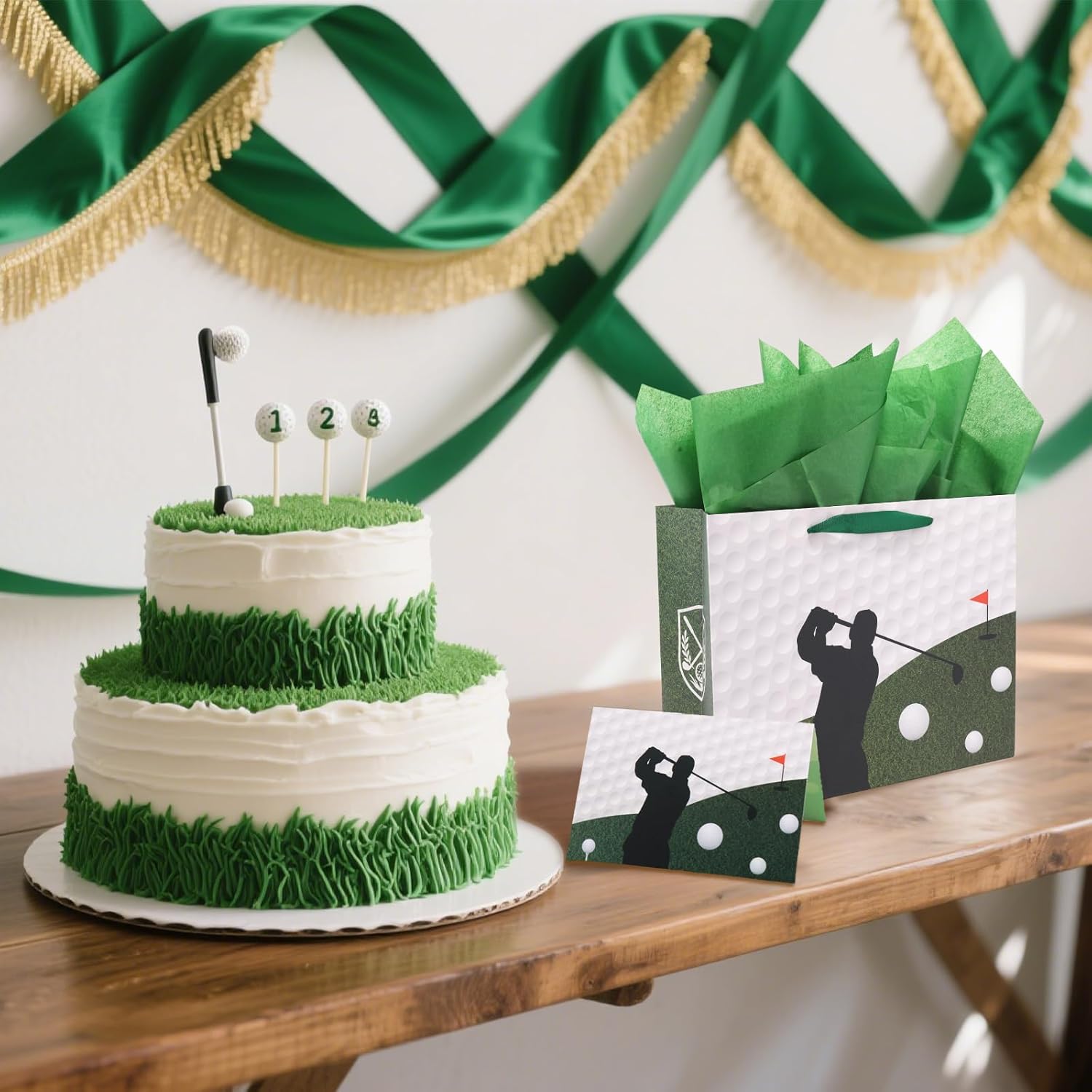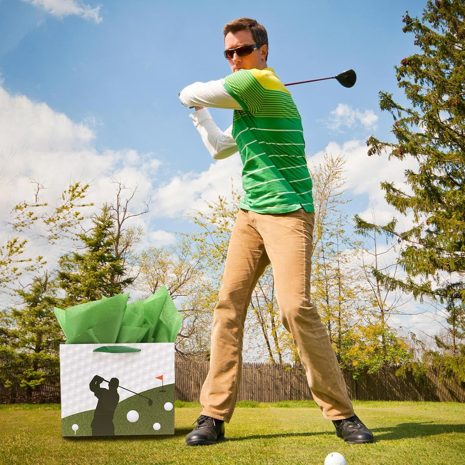 Prodotto incluso: riceverai 1 regalo per il golf, 1 biglietto di auguri e 3 fogli di carta velina, che sono ottimi pacchetti regalo e decorazioni per le feste. Materiale premium: questa borsa da golf per compleanno è realizzata in carta di alta qualità, abbastanza spessa, con una consistenza eccellente, non facile da strappare e può essere riutilizzata. Dotato di una robusta maniglia superiore per un facile trasporto. Design speciale: la nostra festa del golf preferisce un tema golfistico con il verde fresco e il bianco come colori principali, pieno di vitalità e vivacità sportiva, adatto per celebrazioni a tema per gli amanti dello sport, in particolare per gli appassionati di golf. Il divertimento del fai-da-te: questa borsa per bomboniere sportive contiene un biglietto di auguri e 3 fogli di carta velina verde. Puoi scriverli o disegnarli, crearli liberamente, esprimere le tue benedizioni esclusive, divertirti e provare un senso di realizzazione. Ampie applicazioni: questa pratica e bella borsa regalo per feste di golf può contenere una varietà di caramelle, piccoli giocattoli, snack, regali e articoli per feste. È perfetto per celebrazioni di giochi, temi del golf, feste natalizie e scambi di regali.
