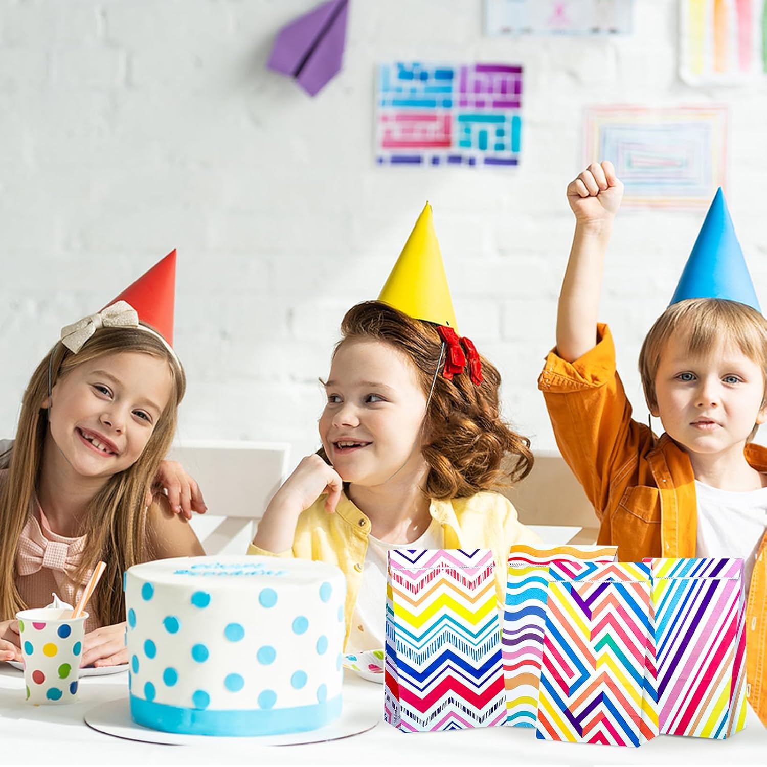 La confezione include: riceverai 48 sacchetti di compleanno per bambini a strisce arcobaleno, che possono soddisfare le diverse esigenze della scena. La dimensione dei sacchetti regalo colorati è 12 × 7 × 22 cm / 4,72 x 2,76 x 8,66 pollici, con uno spazio ampio che può facilmente ospitare vari oggetti. 【4 stili disponibili】 I nostri colorati sacchetti regalo di compleanno per bambini hanno quattro stili diversi, costituiti da strisce diritte e curve in diversi colori. Questi colori delle borse da festa in carta sono luminosi e unici nello stile, aggiungendo divertimento e moda a varie occasioni. 【Materiali durevoli】Questi sacchetti regalo colorati sono realizzati in carta kraft di alta qualità, facili da piegare e trasportare e possono essere riutilizzati. Queste borse di compleanno per bambini con strisce arcobaleno sono abbastanza robuste da contenere piccoli regali o snack senza strapparsi, garantendo la sicurezza dei tuoi oggetti. 【Ecologico】 I nostri sacchetti per feste in carta sono realizzati con materiali ecologici, riciclabili e rispettosi dell'ambiente. Questi colorati sacchetti regalo di compleanno per bambini hanno un'elevata capacità di carico e riutilizzabilità con una lunga durata. 【Ampia applicazione】 Queste borse da festa in carta kraft sono adatte per varie occasioni tra cui matrimoni, feste di compleanno, shopping e celebrazioni stagionali. Le borse per il compleanno dei bambini sono molto adatte come confezioni regalo, borse per la spesa al dettaglio, borse per la conservazione, ecc.