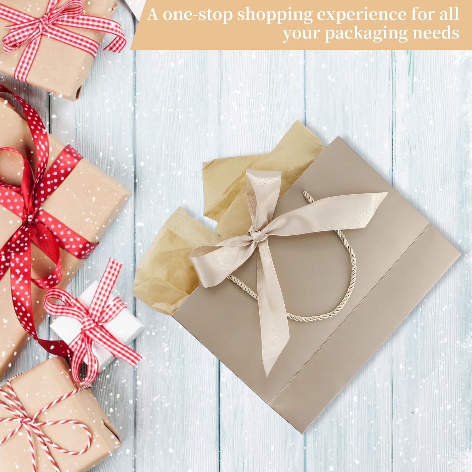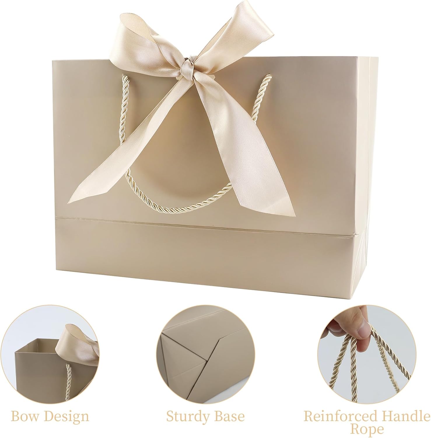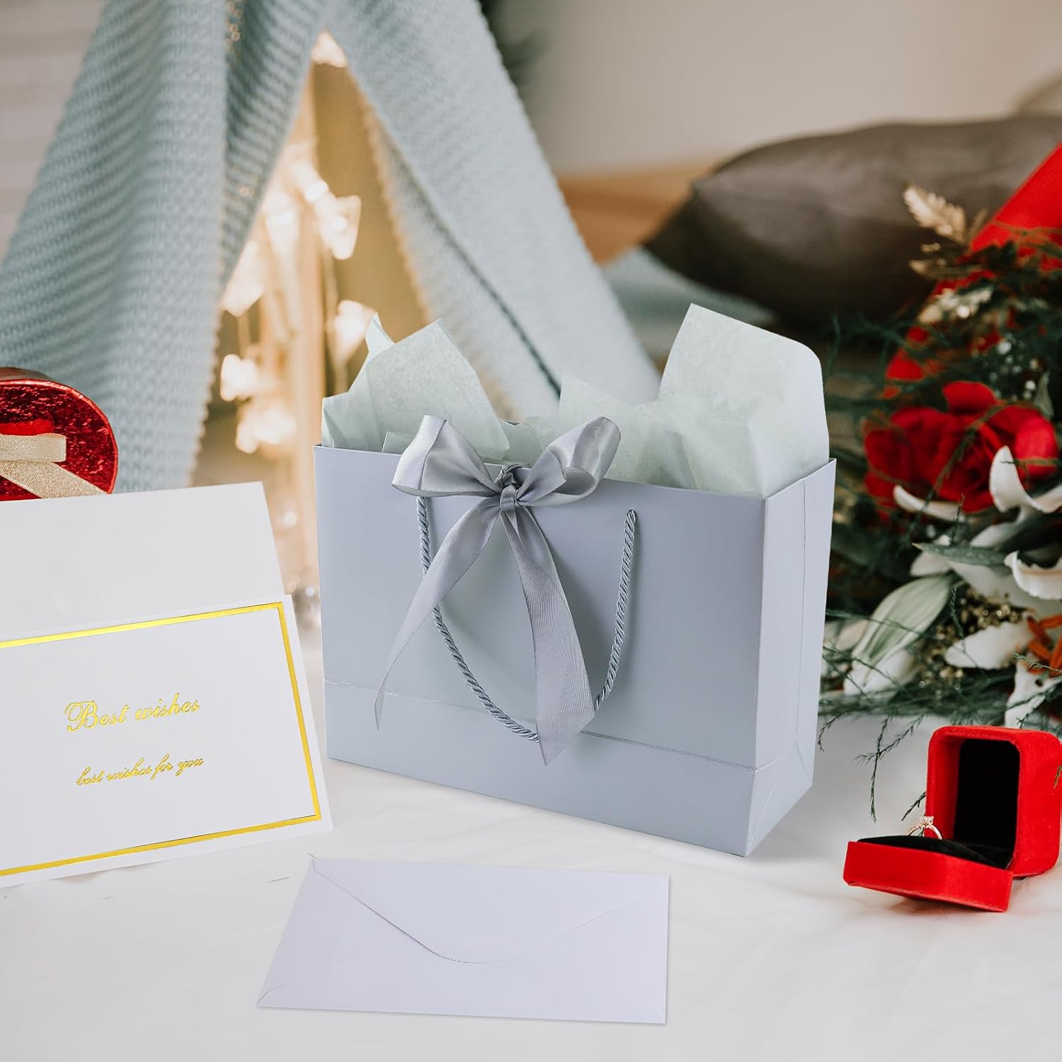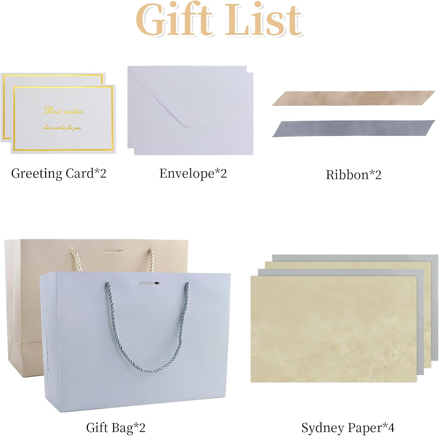 SET REGALO COMPLETO - Include 2 sacchetti regalo per regali, 4 carte veline decorative, 2 biglietti di auguri bianchi e 2 buste abbinate. Ogni busta misura circa 28 x 20 x 10 cm (11,0 x 7,9 x 3,9 pollici) e i biglietti hanno uno spazio vuoto all'interno per i messaggi personali. Un'esperienza di acquisto unica che soddisfa tutte le tue esigenze di imballaggio. MATERIALE ECCELLENTE - I sacchetti per le feste sono realizzati in cartone spesso di alta qualità, sono riciclabili, robusti e colorati, resistenti agli strappi e offrono ampio spazio per una varietà di regali. Quando non vengono utilizzati, i sacchetti regalo di medie dimensioni possono essere piegati e riposti per risparmiare spazio. Con maniglie rinforzate per un trasporto senza fatica. La stabilità incontra l'estetica - Con una base appositamente rinforzata per una migliore capacità di carico e una maggiore durata, è robusto e affidabile. I sacchetti di carta con manici sono facili da riempire, conservare e trasportare e trasmettono i tuoi sentimenti caldi al destinatario. Accenti distintivi del nastro: decorati con un design a fiocco semplice ma elegante, i sacchetti per feste in carta aggiungono un tocco di eleganza e raffinatezza ai tuoi regali. La superficie semplice della borsa invita alla creatività e ti incoraggia a dipingerla o dipingerla tu stesso per creare una confezione regalo unica e preziosa che si distinguerà davvero. VERSATILE PER TUTTE LE OCCASIONI - Questa borsa regalo è il partner di imballaggio perfetto per album, puzzle, snack, regali squisiti, libri, bambole, vestiti, giocattoli, fiori e altro ancora. Ideale per matrimoni, Halloween, eventi aziendali, San Valentino, festa della mamma, compleanni, anniversari, feste, Capodanno, Natale, Ringraziamento e tutte le altre occasioni festive e speciali.