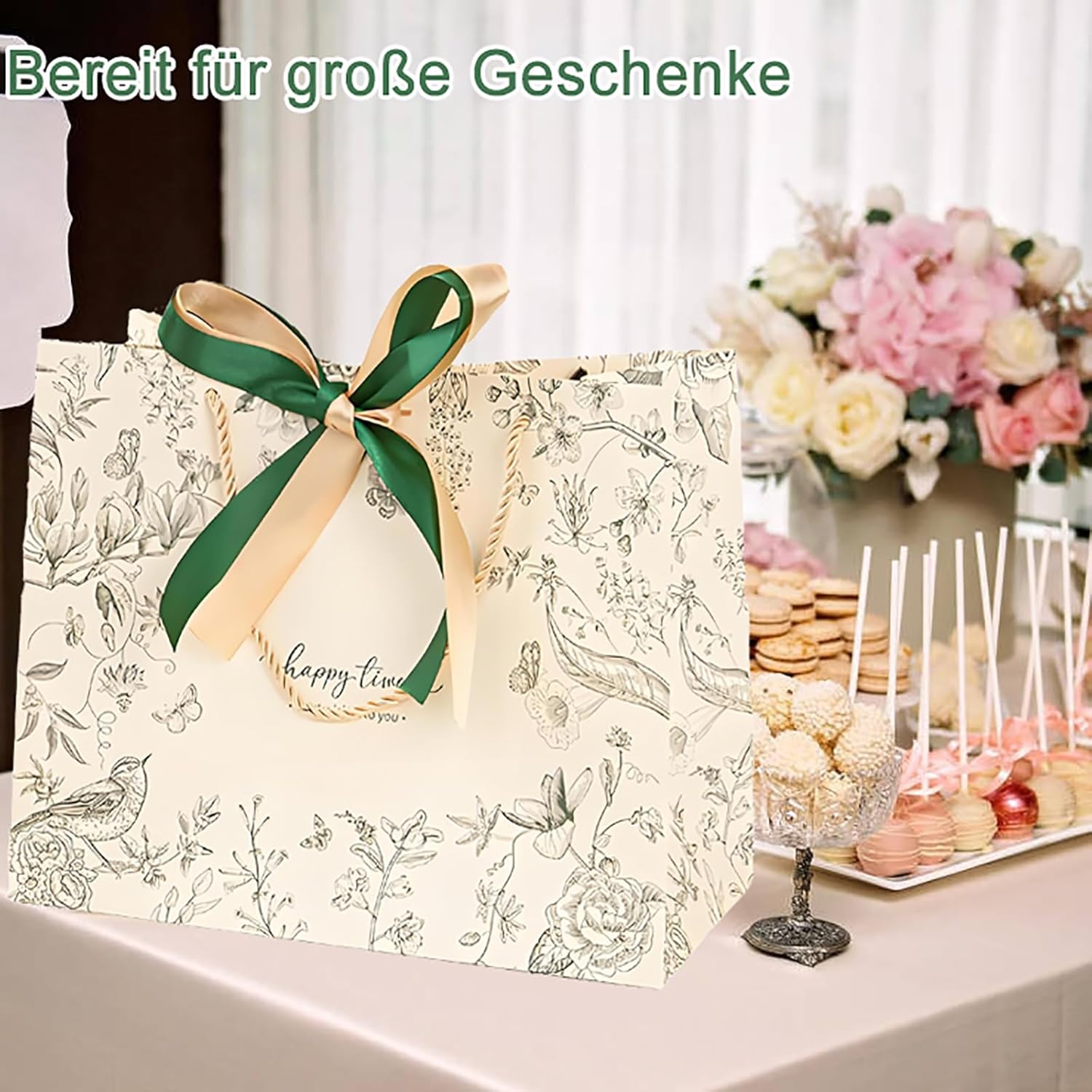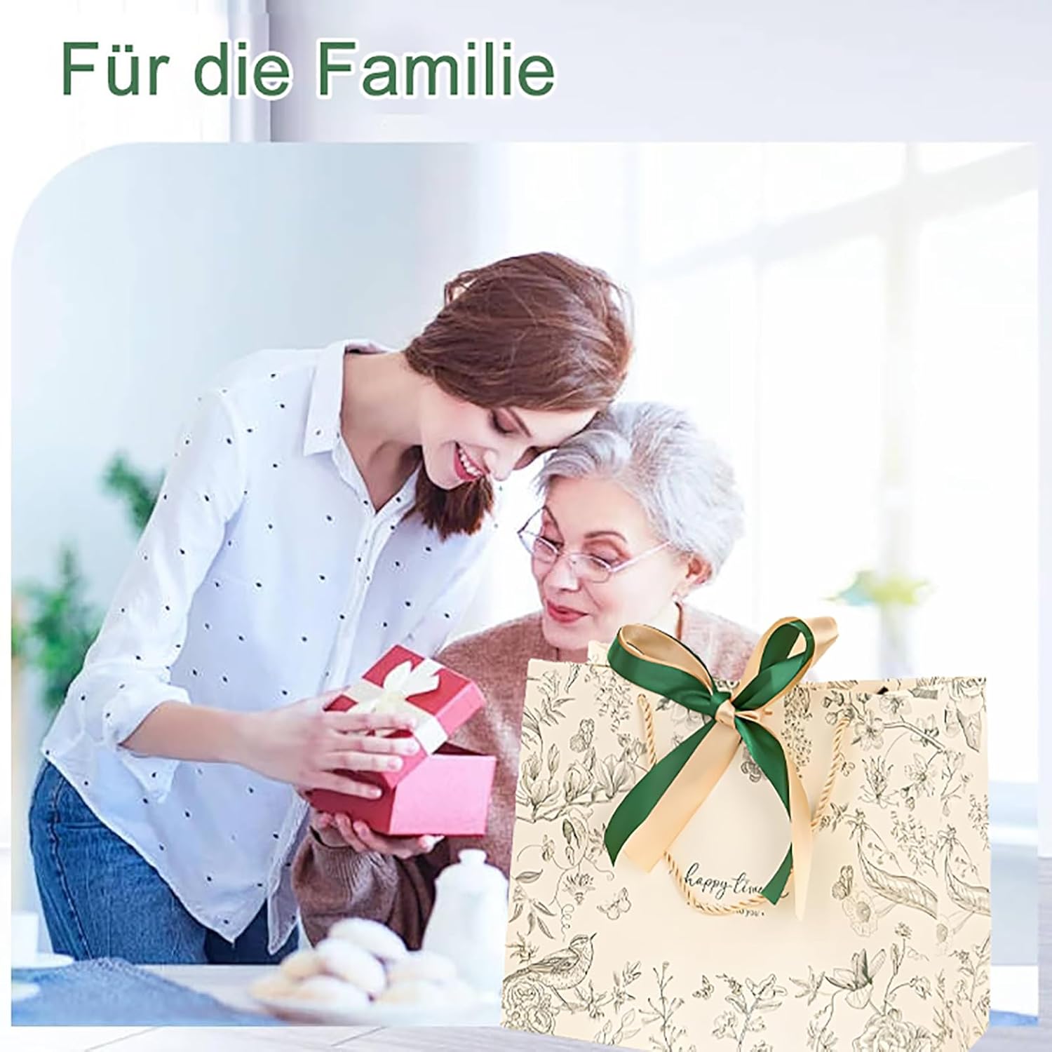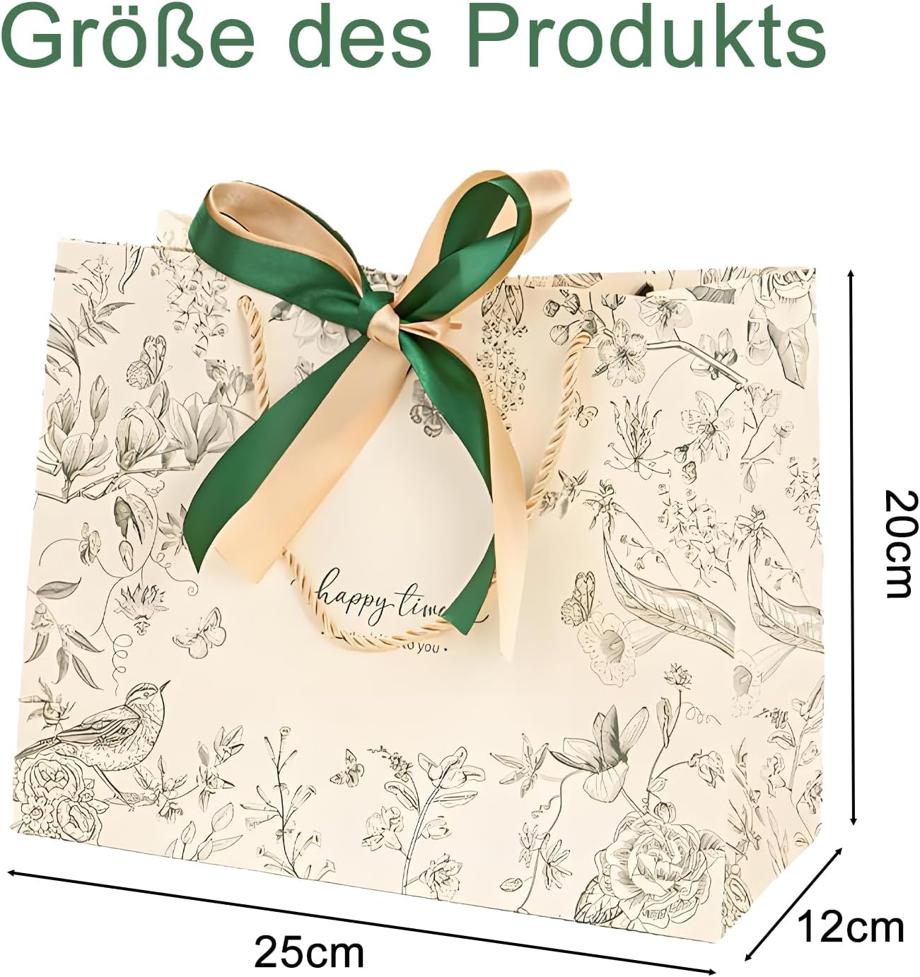 Ricca configurazione del set: il set contiene 5 sacchetti regalo (dimensioni ca. 252012 cm), ulteriori 5 carte decorative in seta e 5 biglietti di auguri. Sui biglietti è possibile scrivere auguri affettuosi per parenti o amici e la carta velina aggiunge un tocco elegante alla confezione regalo: tutte le esigenze decorative e di messaggio emotivo della confezione regalo vengono soddisfatte in un colpo solo. Materiale durevole e di alta qualità: realizzato in materiale di alta qualità, robusto e durevole. Non solo è facile da tenere in mano, ma è anche resistente all'usura e non si danneggia facilmente. Le robuste maniglie lo rendono facile da trasportare e la base robusta consente alla borsa regalo di stare in posizione verticale per evitare che i regali interni cadano: più sicuro durante il trasporto. Comoda opzione di imballaggio: non è necessaria alcuna piegatura o incollaggio complesso: basta aprire e utilizzare direttamente, una scelta efficiente per la confezione regalo. Che si tratti di incartare quotidianamente o di emergenze festive, la confezione regalo può essere completata rapidamente, risparmiando tempo e garantendo un risultato pulito e attraente. Ampie applicazioni: perfetto per varie occasioni di regali, come: B. per confezionare regali di Capodanno e Natale, regali di compleanno, regali di nozze, regali aziendali, regali di San Valentino, regali per la festa della mamma, ecc. Sia per regali privati che aziendali, può aumentare la solennità dei regali attraverso la confezione squisita. Trasmettere emozioni positive: grazie al materiale di alta qualità e all'aspetto elegante, il destinatario del regalo non solo sente la cura dietro il regalo, ma rimane anche colpito dal suo aspetto fantastico. Ogni regalo avvolto in esso crea bellissimi ricordi per il donatore e il destinatario e rende più calda la trasmissione dei desideri.