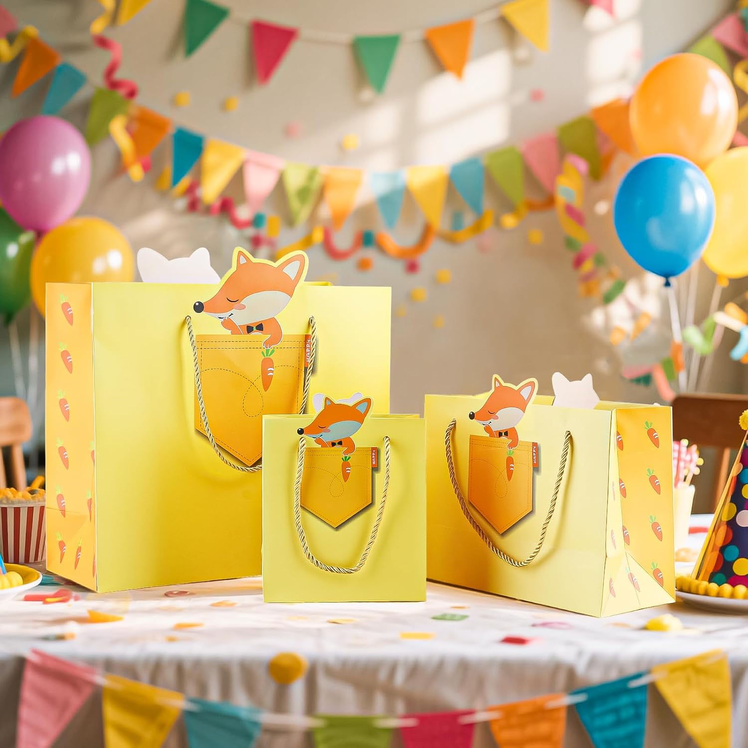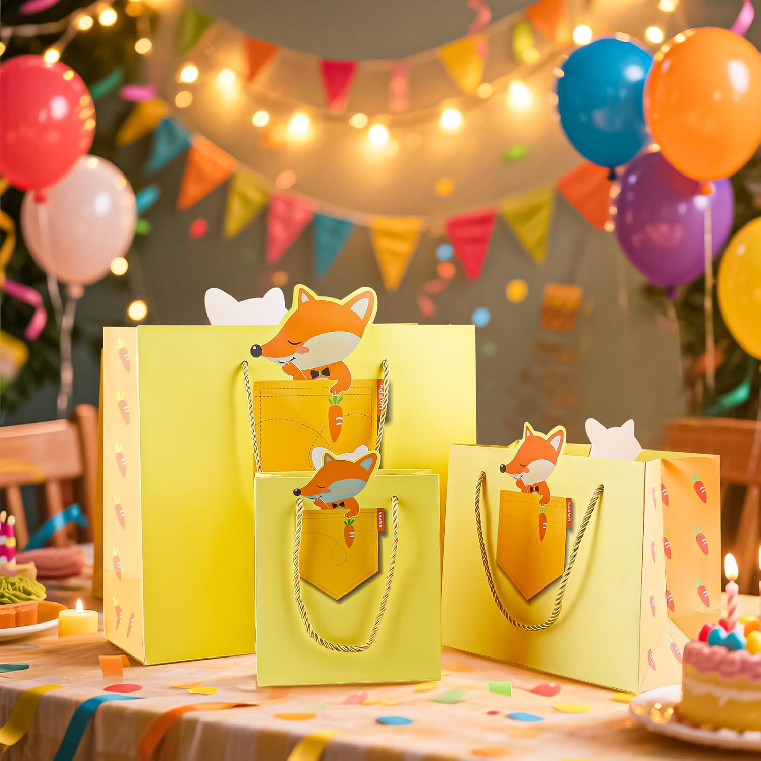 Informazioni sui sacchetti regalo: viene fornito con 3 sacchetti regalo Fox (grande/medio/piccolo) con 1 nastro giallo. La dimensione dei sacchetti regalo grandi è 33x25,9x14 cm/12,99x10,19x5,51 pollici; la dimensione dei sacchetti regalo medi è 22,9x17,8x10,2 cm/9x7x4 pollici; le dimensioni ridotte dei sacchetti regalo sono 16x12x6,1 cm/6,29x4,72x2,4 pollici. Questa borsa regalo di compleanno Yellow Fox si adatta alla maggior parte delle confezioni regalo e caramelle, abbastanza per soddisfare le tue esigenze. 【BORSE REGALO A TEMA ANIMALI DI QUALITÀ DECENTE】: le borse regalo con volpe con manici sono abbastanza robuste e resistenti e possono essere utilizzate per trasportare regali per ridurre il rischio di strappi. Realizzato in cartone di alta qualità, la maniglia è fissata con colla di alta qualità, riutilizzabile ed ecologica, puoi sostituire i tuoi sacchetti di plastica puzzolenti con questi sacchetti regalo di carta super ecologici. 【Confezione regalo ideale】: queste borse gialle per feste di compleanno sono molto adatte per la maggior parte delle confezioni di regali e caramelle, possono contenere qualsiasi regalo per bambini, adolescenti, neonati e ragazze. Puoi usarlo per feste di compleanno, regali di compleanno, baby shower, feste di laurea, confezioni regalo di compleanno, decorazioni di compleanno, confezioni regalo. 【ESPERIENZA DELICATA】: i sacchetti di carta da regalo Fox sono significativi per festeggiare il tuo compleanno. Bellissimo nastro giallo per confezionare i regali di compleanno, creando un'atmosfera romantica e aggiungendo un tocco di eleganza. 【ABBINAMENTO COLORI】: Le nostre borse gialle per feste di compleanno favoriscono colori vivaci e motivi a tema animali le rendono attraenti, perfette per neonati e adolescenti, ragazze e ragazzi. In caso di problemi, contattaci liberamente. Faremo del nostro meglio per renderti soddisfatto.