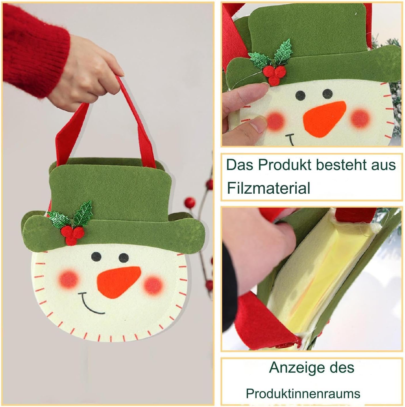 Costruzione robusta e sicura: questa borsa natalizia è realizzata in tessuto di feltro che resiste allo strappo e alla rottura, garantendo una costruzione affidabile per un uso prolungato durante le festività natalizie e oltre. Ideale per conservare regali, dolcetti e ricordi durante le riunioni di famiglia, fornisce un supporto sicuro per i tuoi oggetti essenziali per le feste ed è durevole anche con un uso frequente. Ampia gamma di usi: i robusti manici di questi sacchetti natalizi offrono una presa sicura e consentono di appenderli facilmente al caminetto o agli alberi di Natale. Ciò significa che dolcetti e regali rimangono sempre intatti e protetti nell'attraente confezione. Perfetto per le feste sociali di Natale e le occasioni festive speciali, dove le borse fungono da elementi decorativi e aumentano la gioia di donare. Le versatili borse natalizie sono adatte anche per feste e famiglie. Trasporto e versatilità senza sforzo: le borse natalizie sono dotate di maniglie facili da trasportare e un design leggero, garantendo un trasporto senza sforzo, mentre le loro dimensioni versatili possono ospitare vari oggetti come regali o snack, rendendo i preparativi natalizi per riunioni di famiglia o celebrazioni festive facili ed efficienti e aumentando la gioia della condivisione. MIGLIORA LA PRESENTAZIONE DEI REGALI: Con i loro classici colori natalizi e l'autentico fascino visivo, queste borse natalizie esaltano lo spirito festivo e fungono da scelta di imballaggio ideale per presentare in modo attraente i regali durante le occasioni festive. Il design accattivante e i dettagli festivi garantiscono una presentazione regalo di successo e portano lo spirito natalizio a un nuovo livello. Quantità adeguata: i sacchetti di Natale in quantità sufficiente, decorati con motivi festivi e di Babbo Natale, rendono la condivisione dei regali in occasioni speciali particolarmente semplice e semplice. Sono perfetti per riunioni di grandi gruppi e aggiungono una dose extra di calore e intimità a qualsiasi esperienza di vacanza condivisa. I disegni amorevoli contribuiscono a creare l'atmosfera natalizia e rendono ogni celebrazione un momento indimenticabile