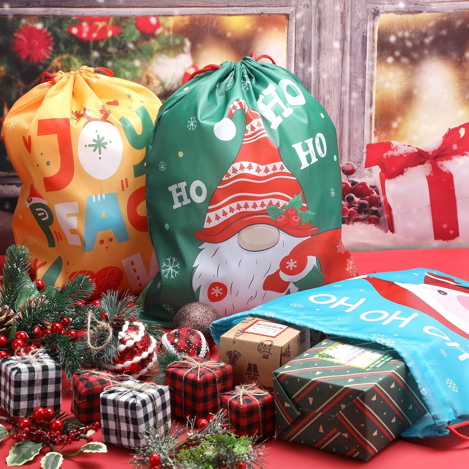 Design a tema natalizio: 12 sacchetti regalo natalizi con coulisse in 12 stili diversi, pieni di elementi classici natalizi come pupazzo di neve, Babbo Natale, albero di Natale, calze, alce, orso polare, elfo, omino di pan di zenzero e altro ancora, ricchi di colori; Porta una forte atmosfera natalizia. Grande capacità: ogni sacchetto regalo con coulisse misura circa 13,19 x 16,34 pollici, abbastanza grande da contenere molti regali di Natale, caramelle, snack, calze, bomboniere e altri oggetti. Materiale affidabile: i nostri sacchetti regalo di Babbo Natale sono realizzati in poliestere di alta qualità, inodore, affidabile e riutilizzabile, più resistente dei sacchetti di carta, lavabile e non facile da sbiadire, che ti porterà gioia per molto tempo. Design con coulisse: queste divertenti borse natalizie con coulisse adottano una borsa da palestra con coulisse. design, facile da stringere e aprire, comodo da usare e portatile; Conserva bene le tue scorte quotidiane in modo che non vadano perse o lasciate cadere. Ampia applicazione: questi sacchetti regalo natalizi con cordoncino possono essere utilizzati come imbottiture per regali, caramelle, vestiti, giocattoli, libri e premi per feste per bambini; Possono essere utilizzati anche come decorazioni per le feste di Natale per migliorare l'atmosfera natalizia