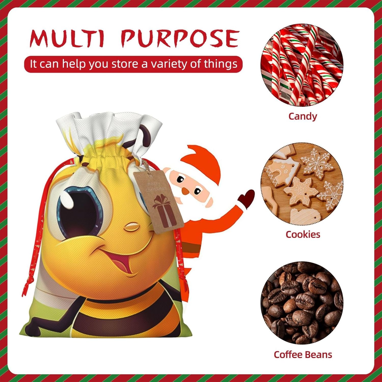 Sacchetti regalo per feste di Natale: niente più sprechi di carta da regalo e nastri. I nostri sacchetti regalo natalizi con cordoncino in tessuto sono realizzati in tela di poliestere di buona qualità, molto morbida al tatto, robusta e riutilizzabile, che renderà i tuoi regali ben protetti. Le nostre etichette regalo sono realizzate in carta kraft di alta qualità, resistente e pratica. Grande capacità di stoccaggio: forniamo sacchetti per confezioni regalo in 2 diverse dimensioni, sacchetto medio (30 x 21 cm), sacchetto piccolo (17 x 12 cm). Puoi usarli per decorare le scene delle feste di Natale e conservare molti articoli e regali natalizi, che possono facilmente soddisfare le tue esigenze di utilizzo. 10 secondi per incartare un regalo: dì addio alla tradizionale carta da regalo che ti fa risparmiare tempo prezioso durante le frenetiche festività natalizie. Sperimenta la confezione regalo senza sforzo con i nostri sacchetti regalo con coulisse, avvolgi i tuoi regali in soli 10 secondi. Queste borse opache possono creare un'atmosfera forte e misteriosa e portare più sorprese alle persone che riceveranno i tuoi regali. Vari modelli accattivanti: i sacchetti regalo di Natale sono disponibili con diversi design natalizi, colori vivaci e design a tema natalizio li rendono attraenti, molto adatti per confezioni regalo e caramelle, staranno benissimo sotto il tuo albero con tutti gli altri regali incartati. Bellissimi accessori per Babbo Natale: questo sacco di Babbo Natale è adatto a chi vuole giocare a Babbo Natale durante le feste di Natale, non solo permette loro di conservare regali, caramelle, giocattoli e calze da inviare ai propri amanti e famiglie, ma li fa anche sembrare un vero Babbo Natale, grande successo per Natale