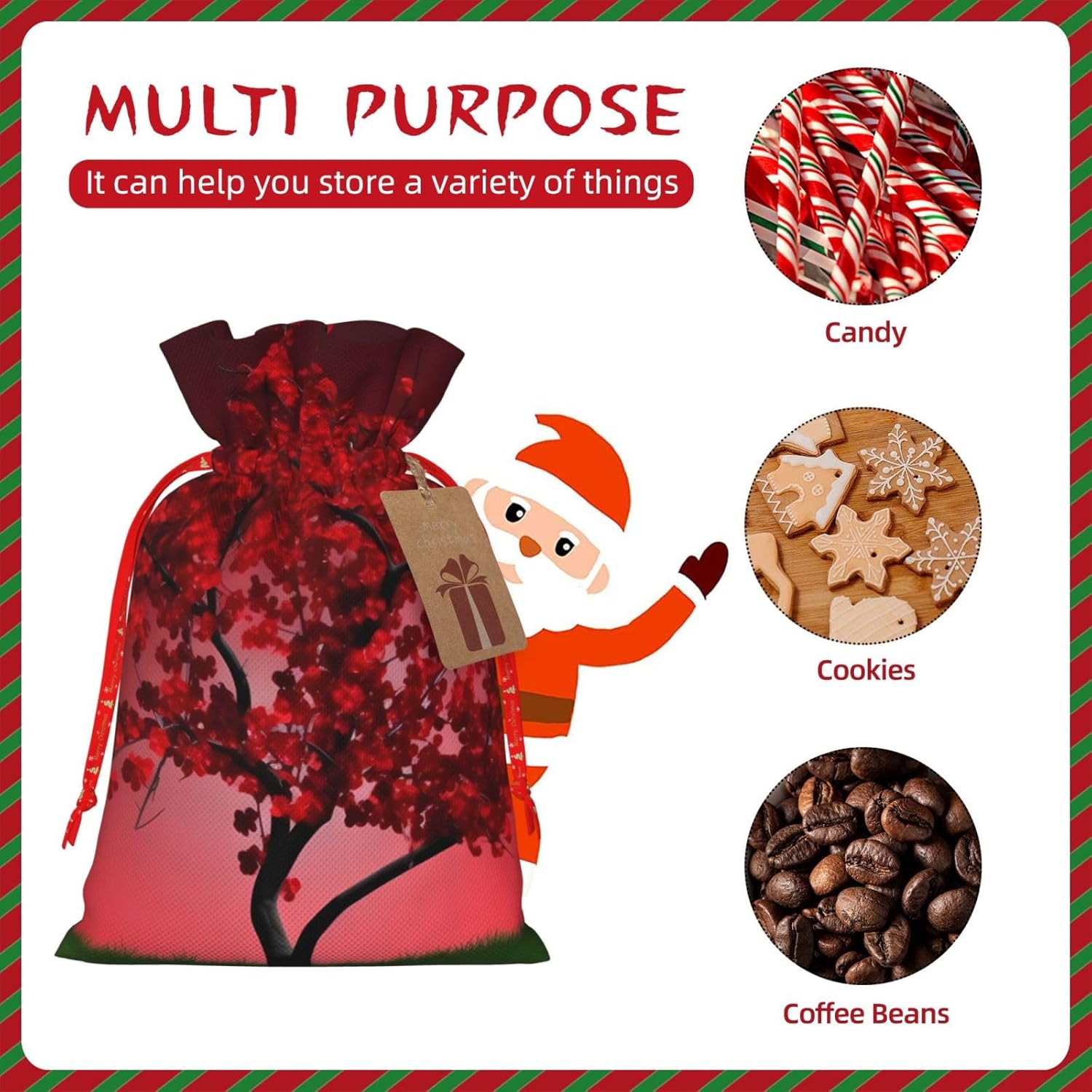 Sacchetti regalo per feste di Natale: niente più sprechi di carta da regalo e nastri. I nostri sacchetti regalo natalizi con cordoncino in tessuto sono realizzati in tela di poliestere di buona qualità, molto morbida al tatto, robusta e riutilizzabile, che renderà i tuoi regali ben protetti. Le nostre etichette regalo sono realizzate in carta kraft di alta qualità, resistente e pratica. Grande capacità di stoccaggio: forniamo sacchetti per confezioni regalo in 2 diverse dimensioni, sacchetto medio (30 x 21 cm), sacchetto piccolo (17 x 12 cm). Puoi usarli per decorare le scene delle feste di Natale e conservare molti articoli e regali natalizi, che possono facilmente soddisfare le tue esigenze di utilizzo. 10 secondi per incartare un regalo: dì addio alla tradizionale carta da regalo che ti fa risparmiare tempo prezioso durante le frenetiche festività natalizie. Sperimenta la confezione regalo senza sforzo con i nostri sacchetti regalo con coulisse, avvolgi i tuoi regali in soli 10 secondi. Queste borse opache possono creare un'atmosfera forte e misteriosa e portare più sorprese alle persone che riceveranno i tuoi regali. Vari modelli accattivanti: i sacchetti regalo di Natale sono disponibili con diversi design natalizi, colori vivaci e design a tema natalizio li rendono attraenti, molto adatti per confezioni regalo e caramelle, staranno benissimo sotto il tuo albero con tutti gli altri regali incartati. Bellissimi accessori per Babbo Natale: questo sacco di Babbo Natale è adatto a chi vuole giocare a Babbo Natale durante le feste di Natale, non solo permette loro di conservare regali, caramelle, giocattoli e calze da inviare ai propri amanti e famiglie, ma li fa anche sembrare un vero Babbo Natale, grande successo per Natale