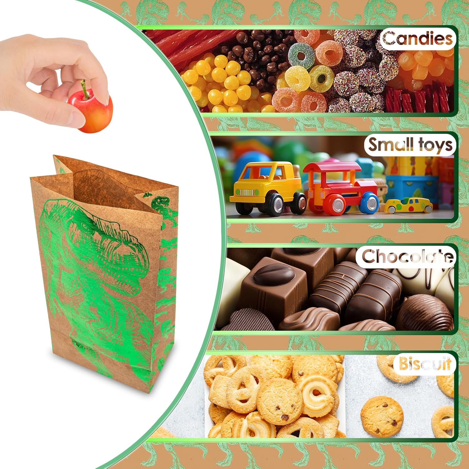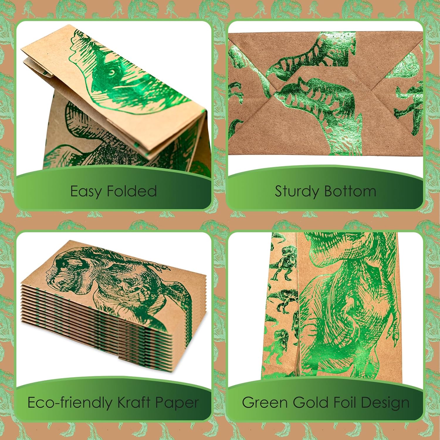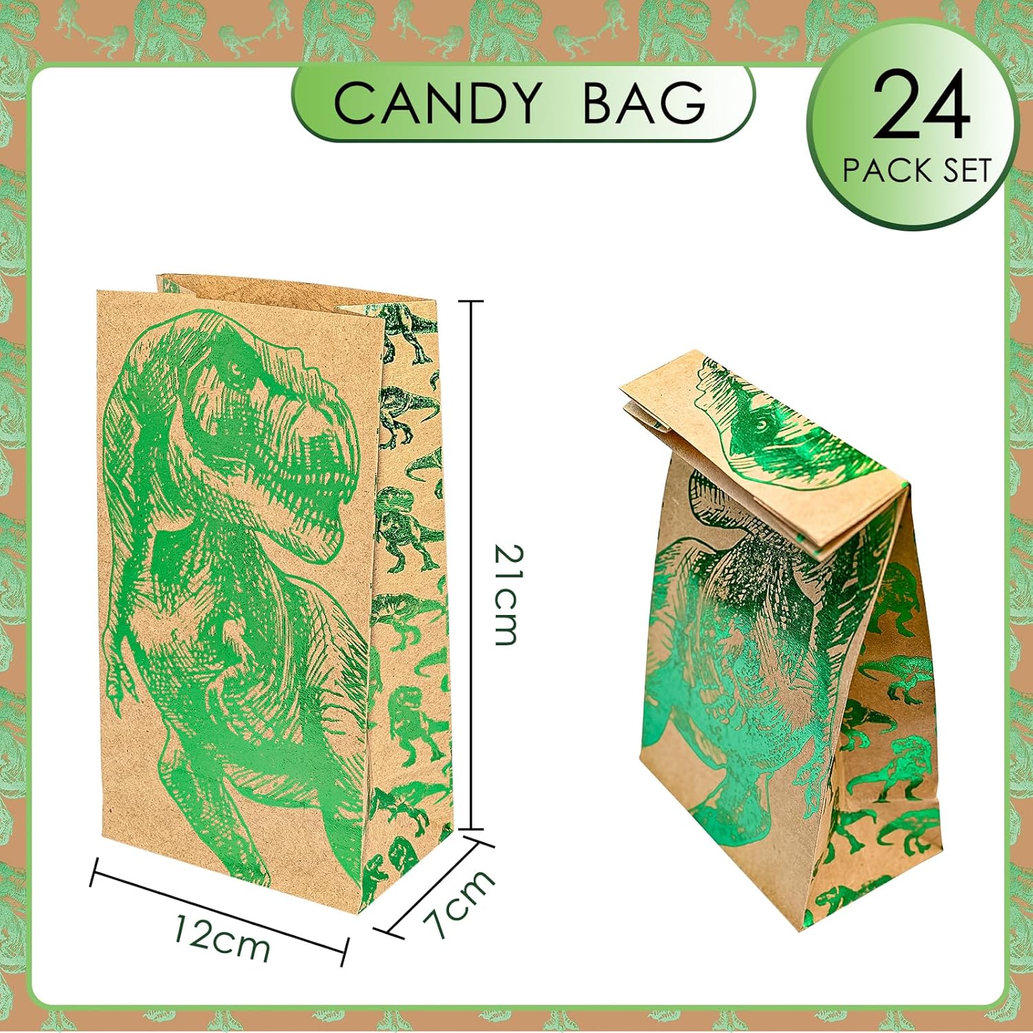 Set da 24 sacchetti per feste con dinosauri