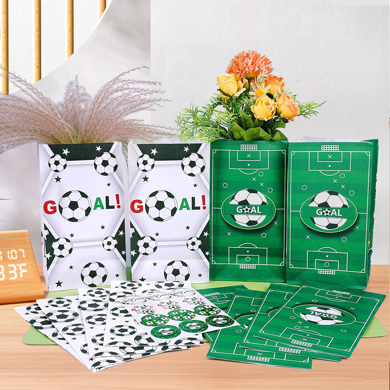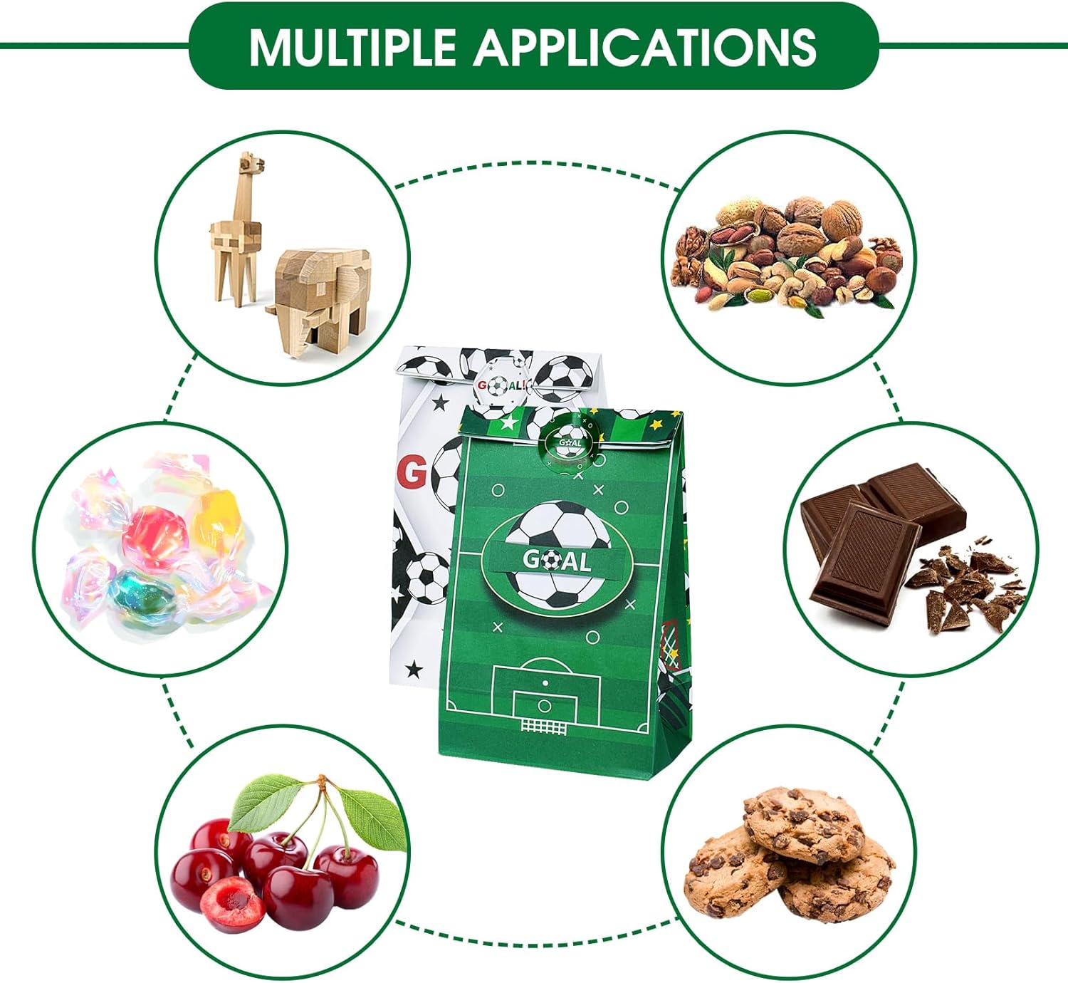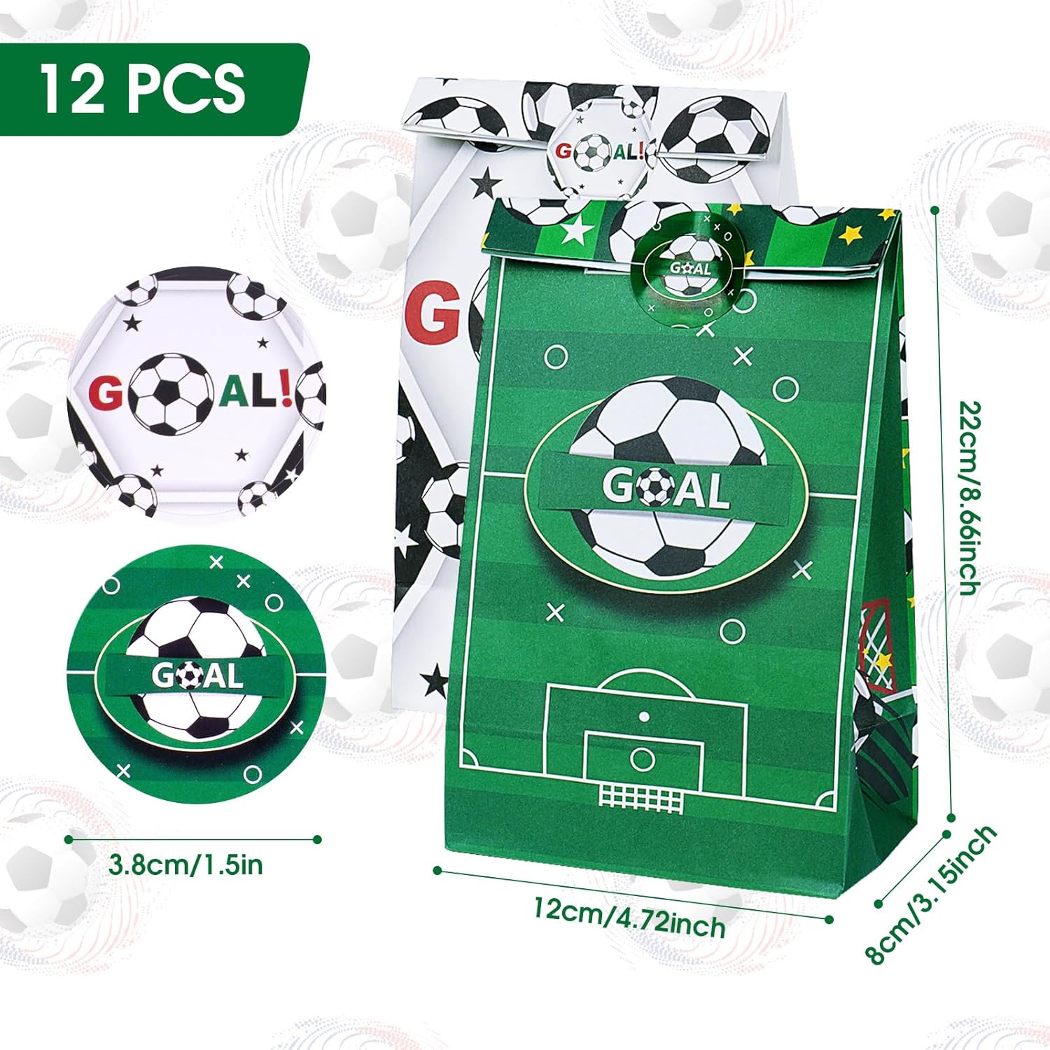 【Borse per feste di calcio】 Il set comprende 24 sacchetti di carta per bomboniere di calcio e 24 adesivi per il calcio. La borsa è disponibile in 2 stili, bianco e verde, con una quantità sufficiente per soddisfare le diverse esigenze. 【Carta Kraft di alta qualità】 Realizzati in carta kraft resistente ed ecologica, questi sacchetti regalo offrono durata e stabilità affidabili. Il materiale è biodegradabile e riciclabile, il che lo rende una scelta sostenibile per gli host attenti all'ambiente. 【Un sacco di spazio】 Con una dimensione di 22 x 12 x 8 cm, questi sacchetti regalo offrono spazio sufficiente per riporre dolci, piccoli giocattoli, biscotti, oggetti di artigianato e altri regali per i tuoi ospiti, offrono spazio sufficiente per piccole sorprese e bomboniere. 【Design a tema calcistico】 I sacchetti regalo in carta kraft offrono una soluzione ideale per migliorare la tua festa di calcio o il compleanno dei bambini con un design a tema calcistico. I sacchetti regalo sono stampati con un attraente design a tema calcistico in verde e bianco. In questo modo la tua festa di calcio avrà un'atmosfera vivace e catturerà l'attenzione degli ospiti. 【Usi versatili】Questi sacchetti regalo sono ideali per feste di compleanno per bambini a tema calcistico, feste di calcio o altre occasioni festive. Possono essere utilizzati anche per progetti fai da te dipingendoli, stampandoli e decorandoli come desideri per renderli unici e personali.