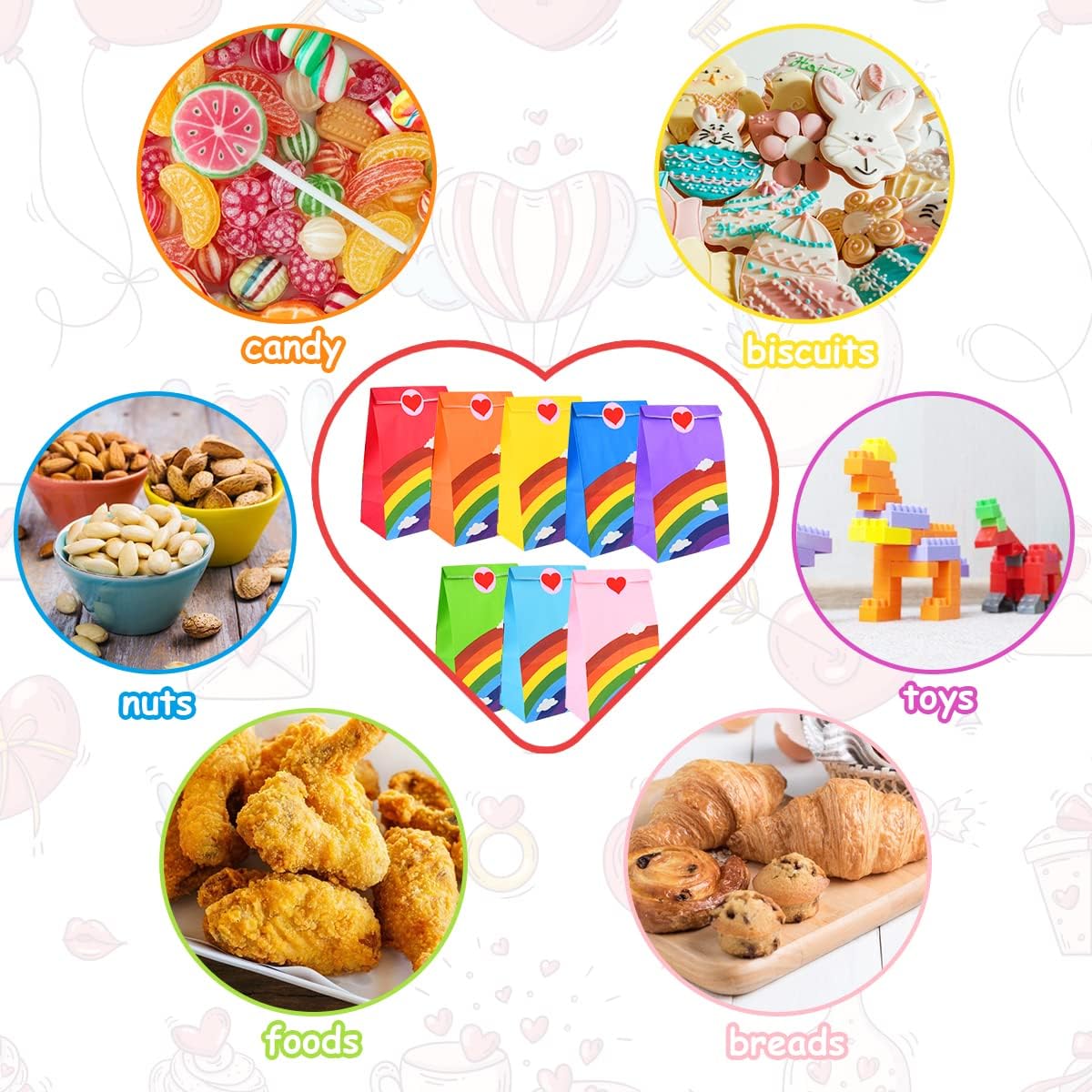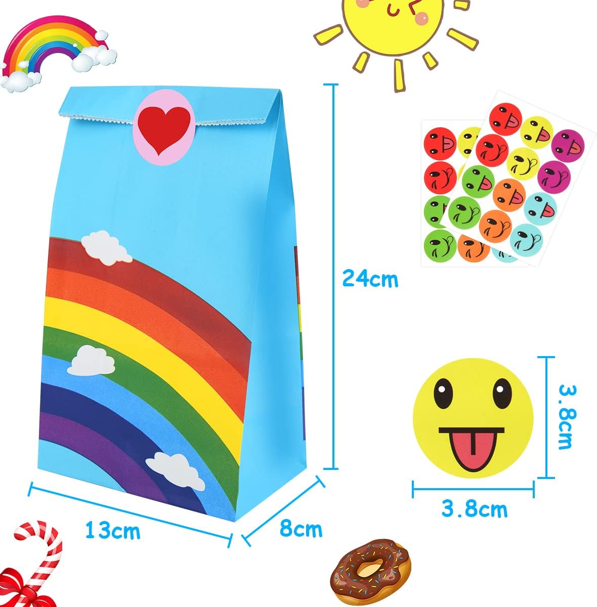 🎁【PREMIUM E DUREVOLE】Il sacchetto di carta è realizzato in carta kraft di alta qualità, leggera e resistente, facile da aprire e piegare, facile da trasportare e può facilmente supportare almeno 5,5 libbre di peso. Il fondo della borsa è piatto in modo che possa stare bene 🎁【ADESIVI CARINI】Questi adesivi sono adesivi e di diversi tipi, il che può aiutare a utilizzare e distinguere diversi oggetti. Gli esclusivi adesivi d'amore dei cartoni animati rendono il pacchetto regalo unico e divertente, fanno sentire le persone preparate con cura e rendono il regalo più prezioso. 🎁 【Riutilizzabile】 Il sacchetto di carta è realizzato in carta kraft da 120 g/m2, che non è facile da strappare e può essere riutilizzata. 🎁【DESIGN FAI DA TE】Queste borse kraft sono perfette per l'artigianato e il fai-da-te. Possono essere dipinti, stampati e decorati a piacere. Personalizza le borse per renderle uniche. Stampa il logo della tua azienda e utilizzalo come borsa per la spesa al dettaglio 🎁【MULTIUSO】Adatto per posizionare piccoli oggetti come snack, caramelle, biscotti, cioccolato, menta, ecc. Può essere applicato a feste di laurea, Pasqua, feste di compleanno, festival estivi, cerimonie nuziali, ecc. I nostri sacchetti di carta kraft dovrebbero essere la tua prima scelta.