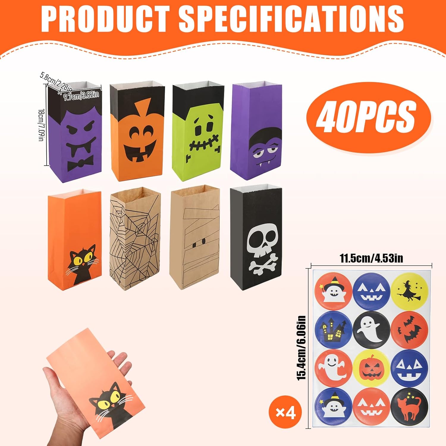 La confezione include: 8 diversi tipi di 40 sacchetti di caramelle di Halloween e 40 adesivi a forma di design di Halloween. Una varietà di stili crea un'atmosfera di Halloween e soddisfa le tue diverse esigenze. 【Materiale superiore】: realizzato in carta kraft di alta qualità, resistente e facile da aprire o piegare; che non è solo esteticamente sofisticato ma anche ecologico, ecologico, inodore, sicuro e di qualità superiore. 【Dimensione perfetta】: i sacchetti di biscotti di Halloween sono di ca. 18x10x6 cm di larghezza. Adatto per piccoli oggetti come snack, caramelle, biscotti, cioccolato, ecc., Luminoso ed elegante. Crea una forte atmosfera festosa. 【Multifunzionale】: possono essere utilizzati per sacchetti regalo di compleanno per bambini, sacchetti di Halloween, sacchetti di carta per feste, sacchetti di Natale, sacchetti per calendari dell'Avvento, come confezionare dolci, regali o altri piccoli oggetti. Puoi usare questi sacchetti per avvolgere caramelle, regali o altri piccoli oggetti. 【Buoni sacchetti per riempire caramelle】: riempilo con giocattoli o dolcetti di Halloween, distribuiscilo per sorprendere i bambini che vengono alla porta o al campeggio, amici o colleghi.