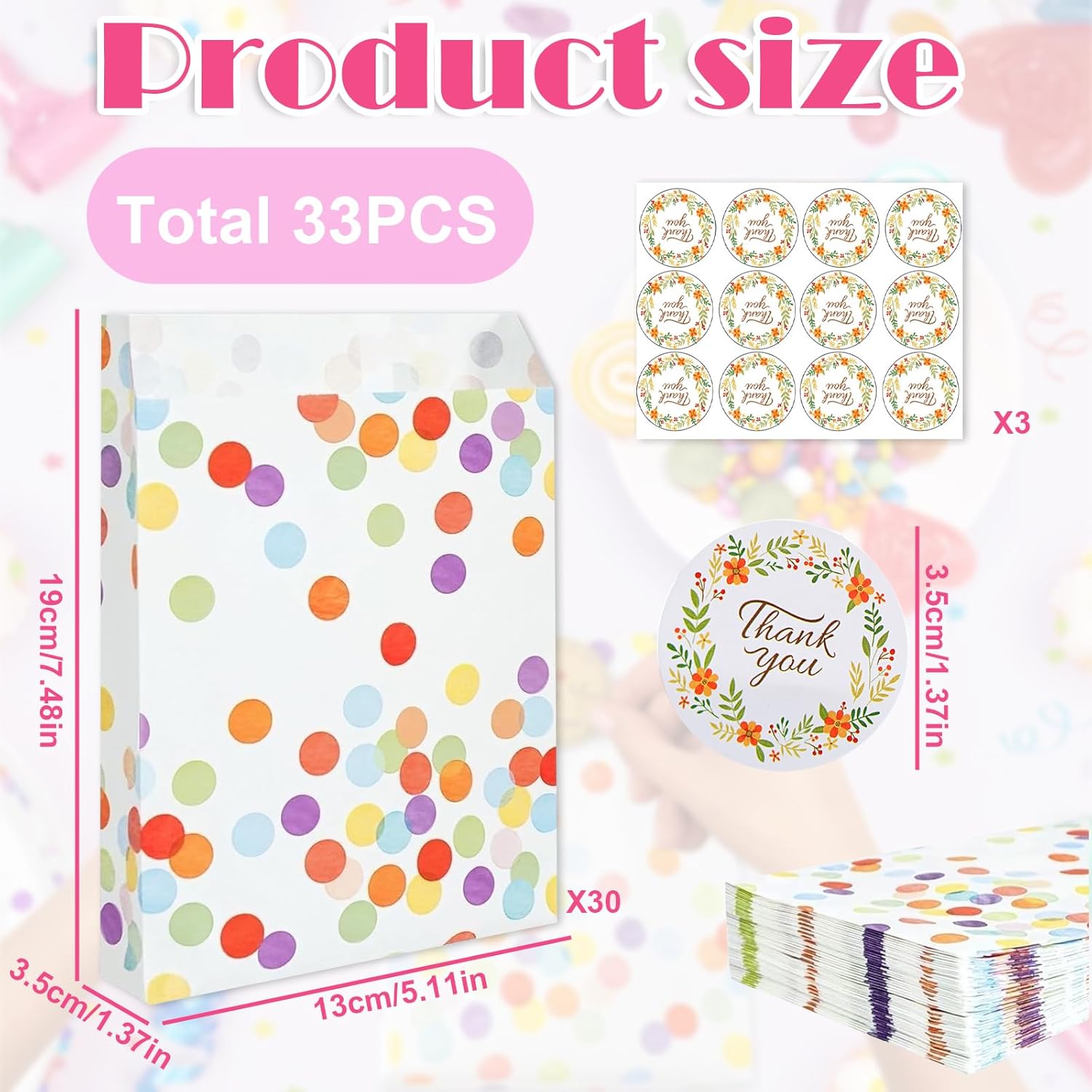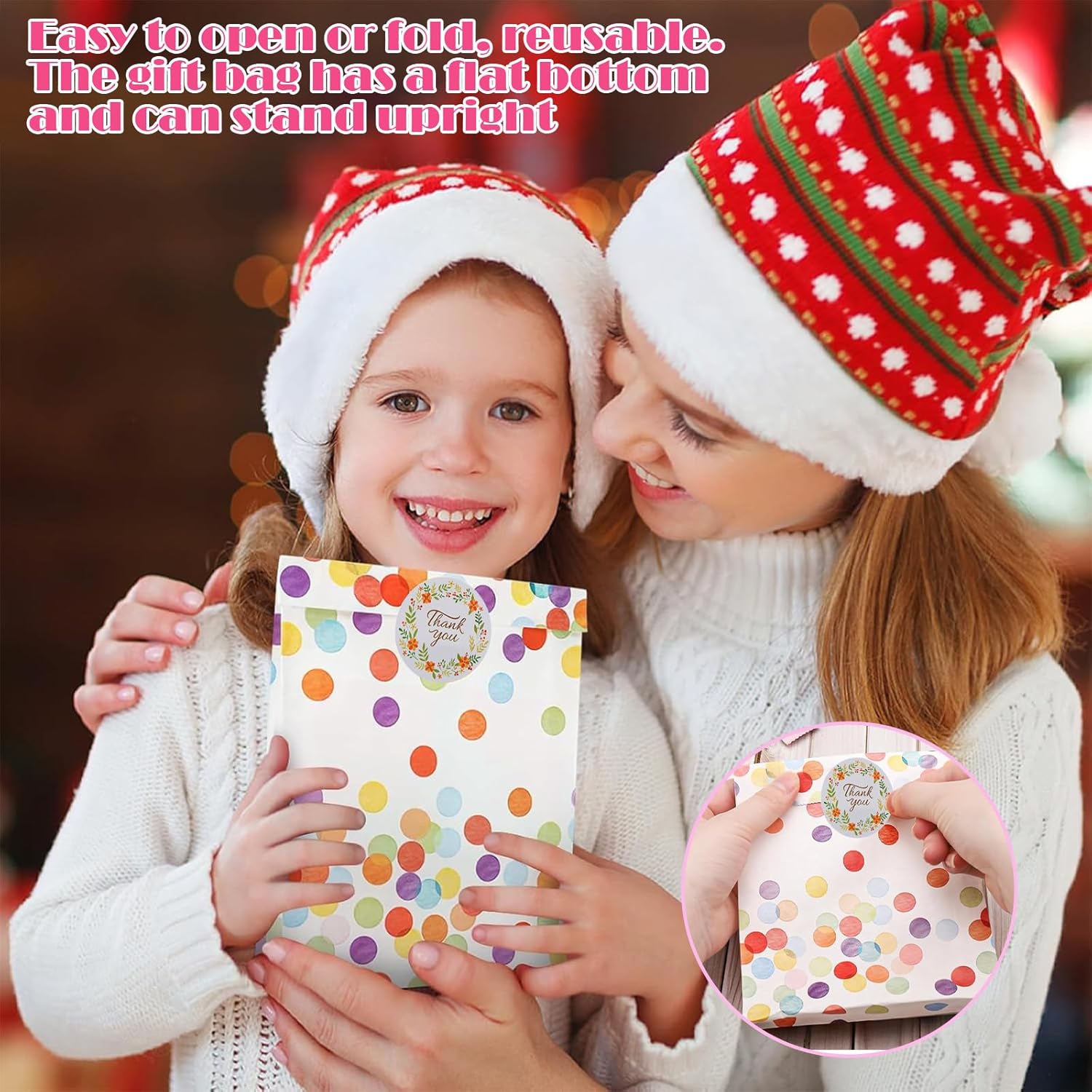 Questi sacchetti regalo sono ideali per diverse occasioni: ogni sacchetto offre spazio sufficiente per dolci, biscotti o piccoli regali e convince con le sue pratiche dimensioni di 13x19x3,5 cm. Gli adesivi dal diametro di 4 cm rendono l'imballaggio e la chiusura particolarmente facili e attraenti. Questo rende questi sacchetti regalo di carta perfetti per compleanni, feste o celebrazioni stagionali dei bambini come Natale e Pasqua. La combinazione di 30 sacchetti regalo e 36 adesivi autoadesivi soddisfa sia esigenze pratiche che decorative: il set contiene più sacchetti rispetto alle alternative tipiche, rendendolo una soluzione ideale per feste più grandi. I sacchetti di carta marrone in carta kraft da 50 g sono robusti ed ecologici, mentre gli adesivi rotondi con motivo a pois colorati aggiungono un accento affascinante - un'opzione affidabile per genitori, insegnanti e organizzatori: grazie al loro design universale e alle dimensioni compatte, i sacchetti per feste possono essere utilizzati in modo flessibile: che si tratti di compleanni di bambini, eventi scolastici, matrimoni o occasioni stagionali, i sacchetti regalo offrono un modo creativo per distribuire piccoli regali con stile. Gli adesivi inclusi facilitano la chiusura rapida e pulita - un dettaglio pratico che fa risparmiare tempo e garantisce una bella impressione generale: i sacchetti regalo di carta non sono adatti solo per confezionare dolci, ma anche per materiali più piccoli, gioielli o prodotti fatti a mano: offrono confezioni regalo ideali per progetti fai da te e sono particolarmente apprezzati dagli host creativi. Che si tratti di mercatini o feste private, questi sacchetti danno ad ogni regalo un tocco personale e sottolineano la vostra attenzione ai dettagli: per confezioni regalo sostenibili con un tocco personale, questi sacchetti regalo in carta kraft sono una scelta eccellente: non contengono plastica, sono completamente riciclabili e offrono comunque abbastanza stabilità per un'ampia gamma di contenuti. Il set da 30 sacchetti con 36 adesivi colorati facilita la preparazione e garantisce che ogni festa sia un completo successo - ideale per famiglie e menti creative: