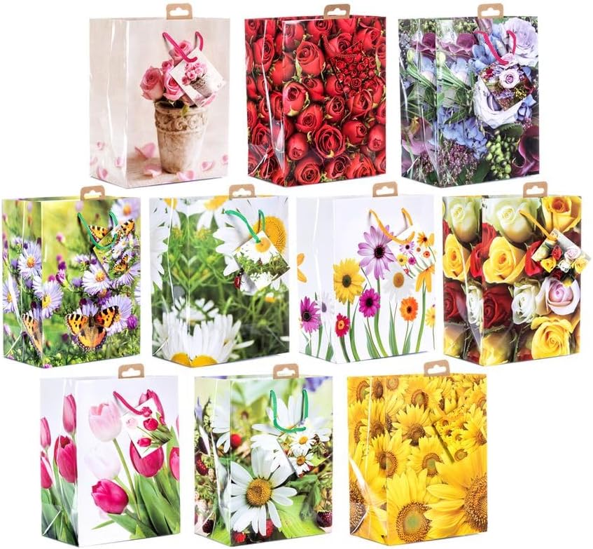 Sacchetti regalo Laro Medium Premium-Line, sacchetti regalo, 10-100 pezzi, fiori medi, numero: 10, sacchetti campione: fiori medi