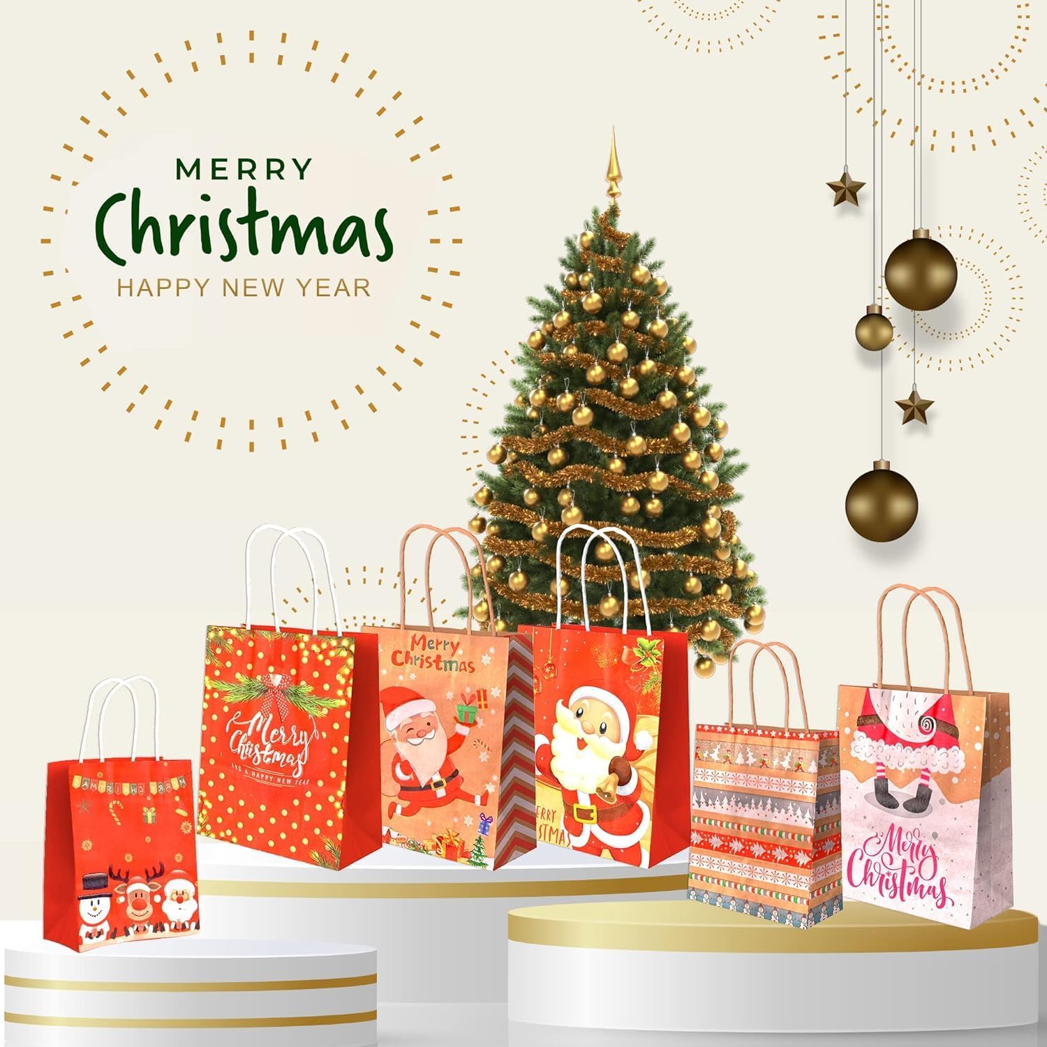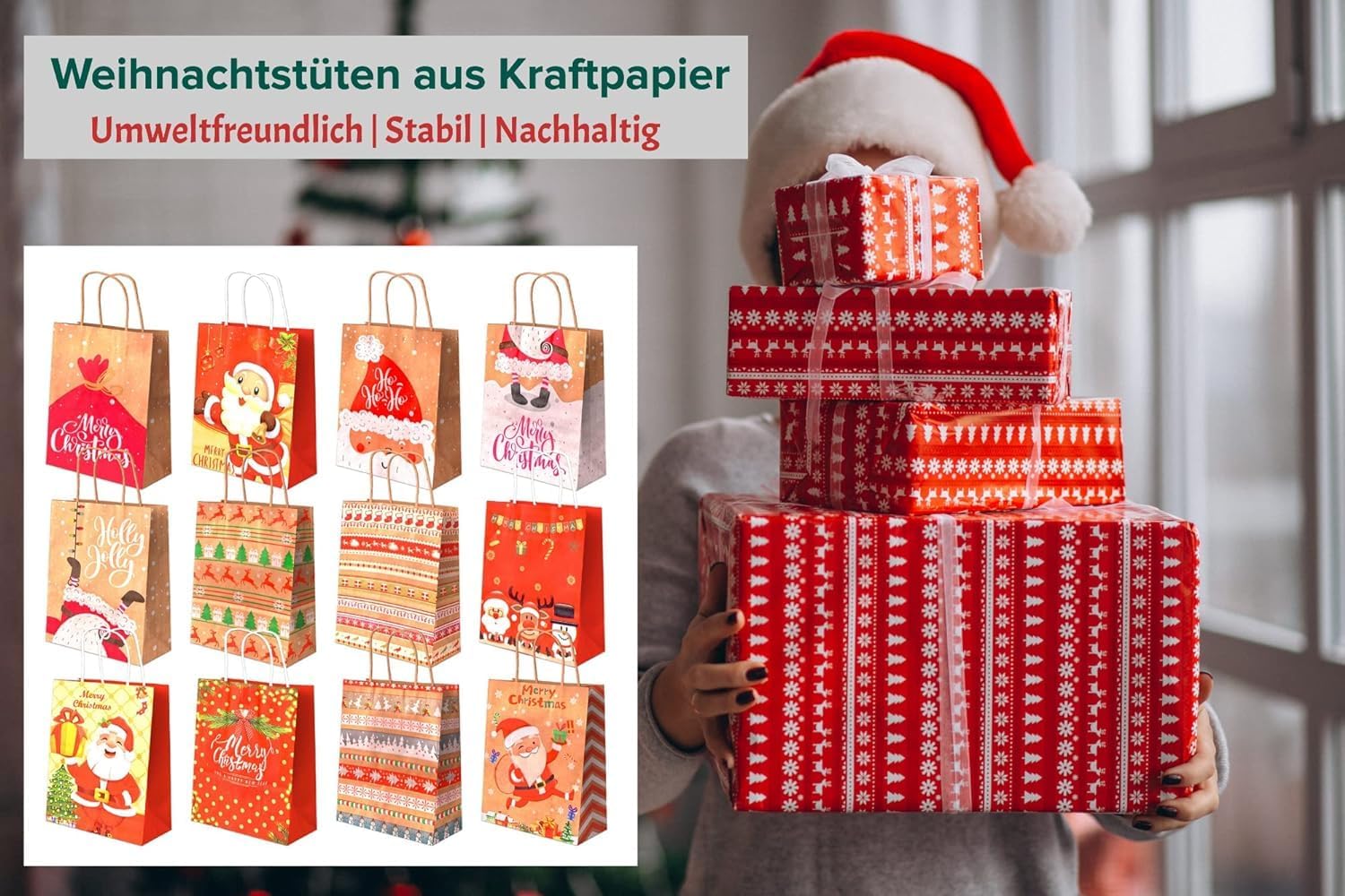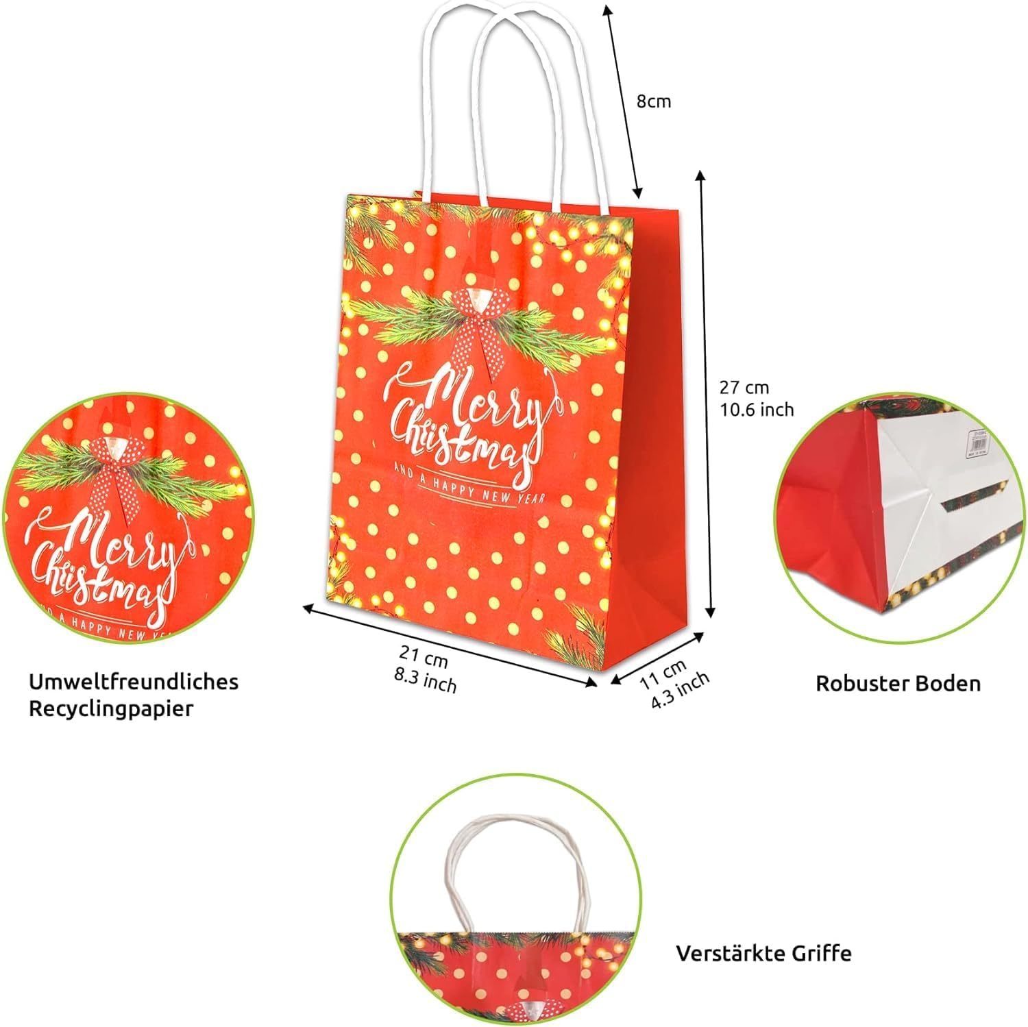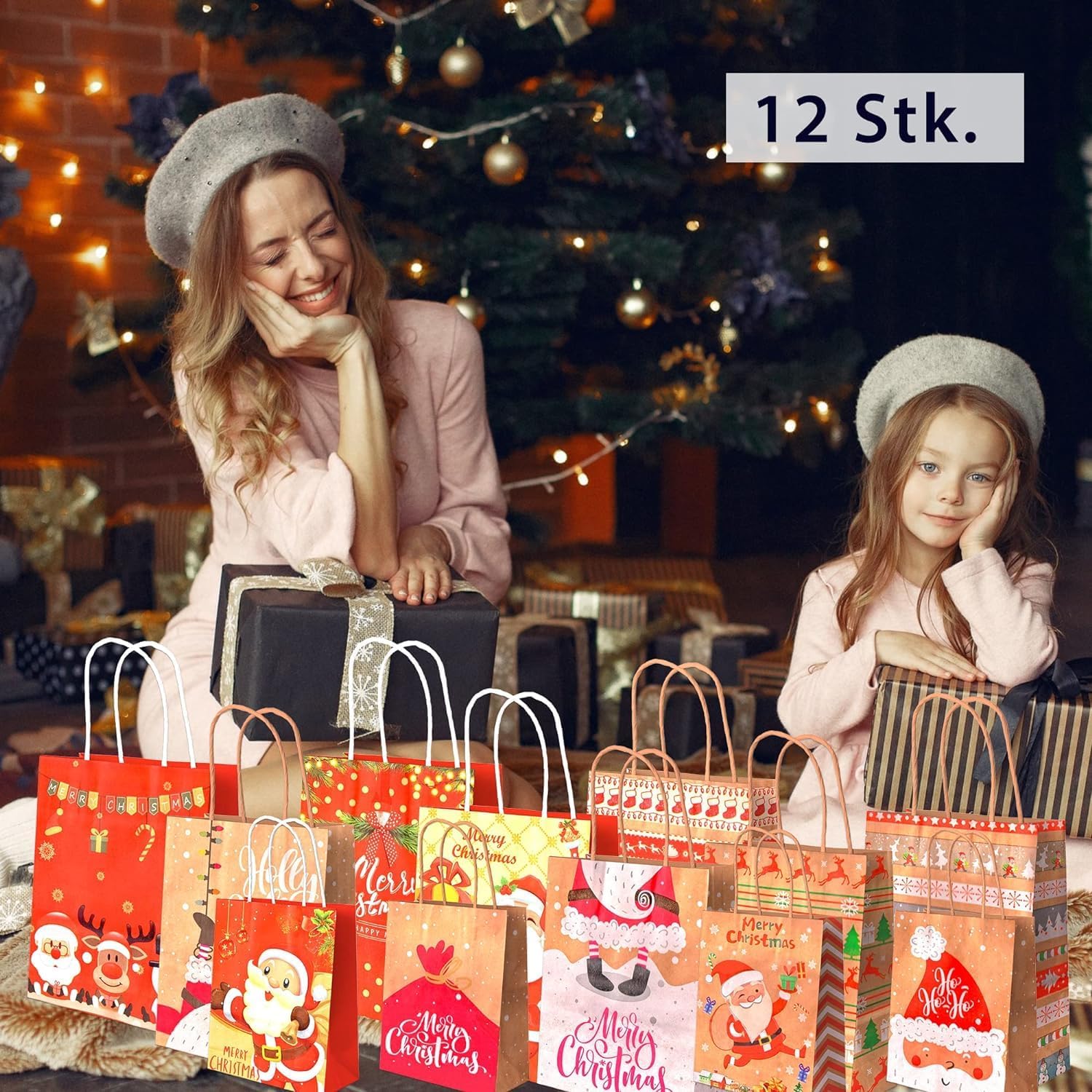 Sacchetti regalo natalizi Confezione da 12 sacchetti natalizi grandi Sacchetti di carta Sacchetti regalo Sacchetti natalizi Sacchetti di carta con manico Manico Sacchetti di carta Kraft Sacchetti regalo natalizi (21 x 27 x 11 cm)