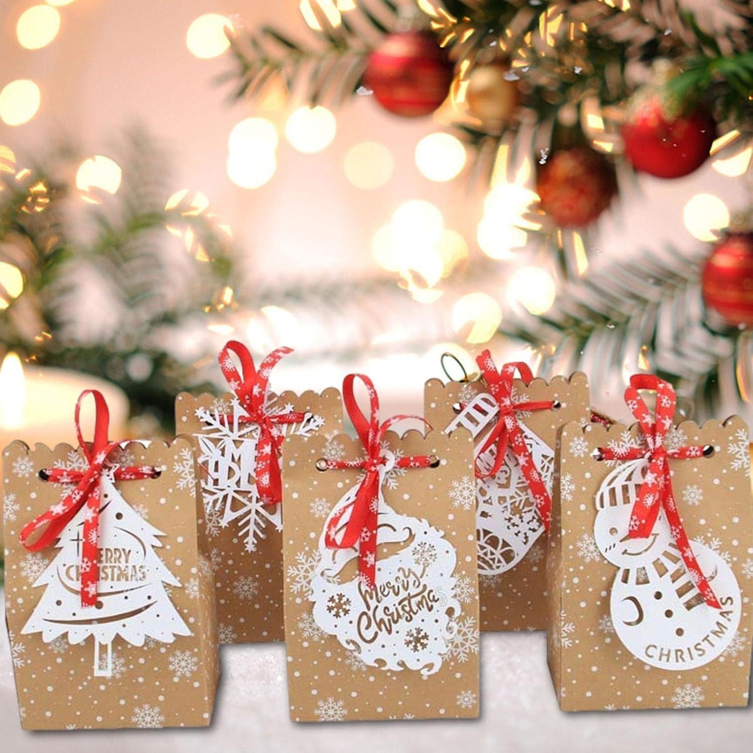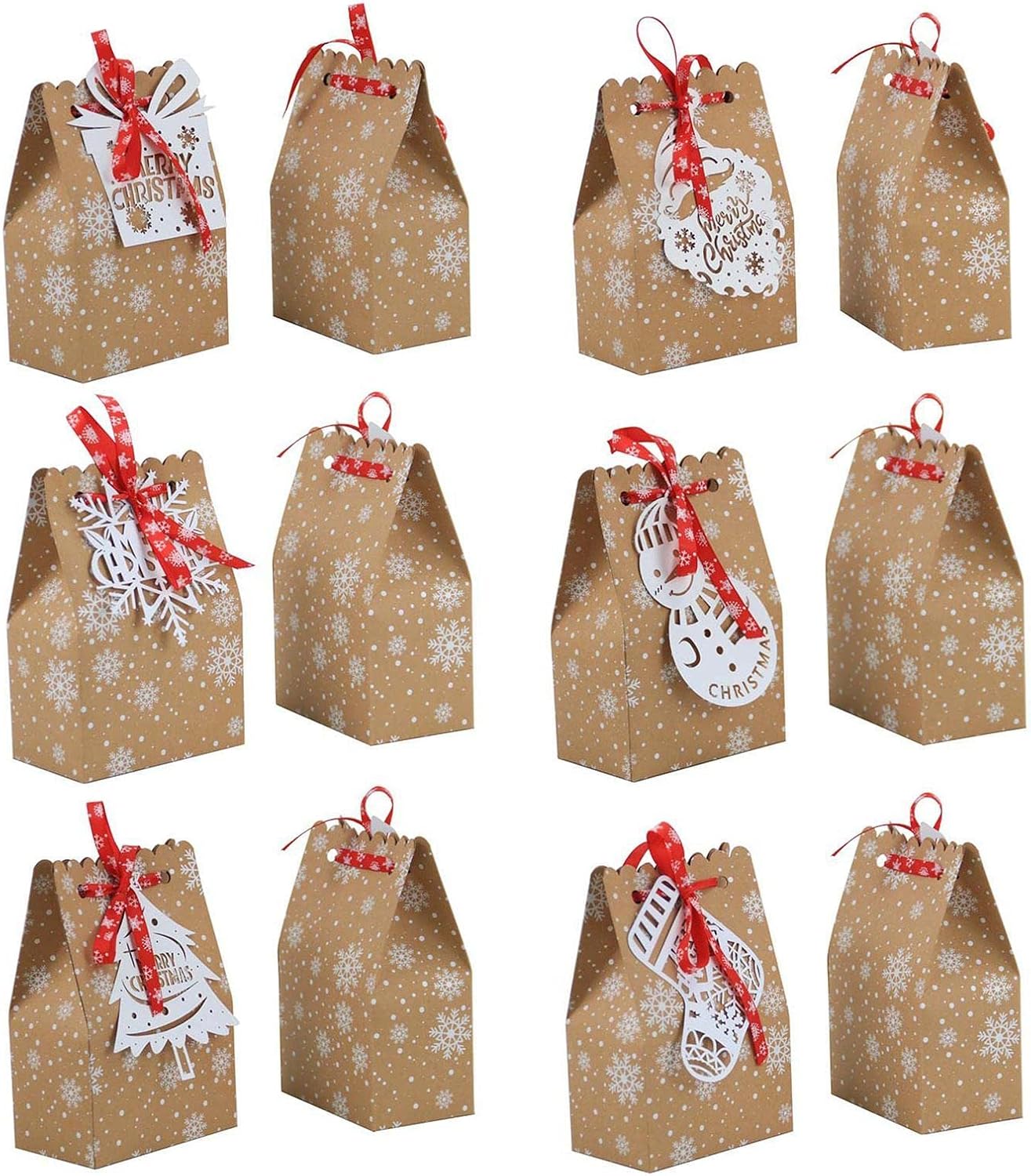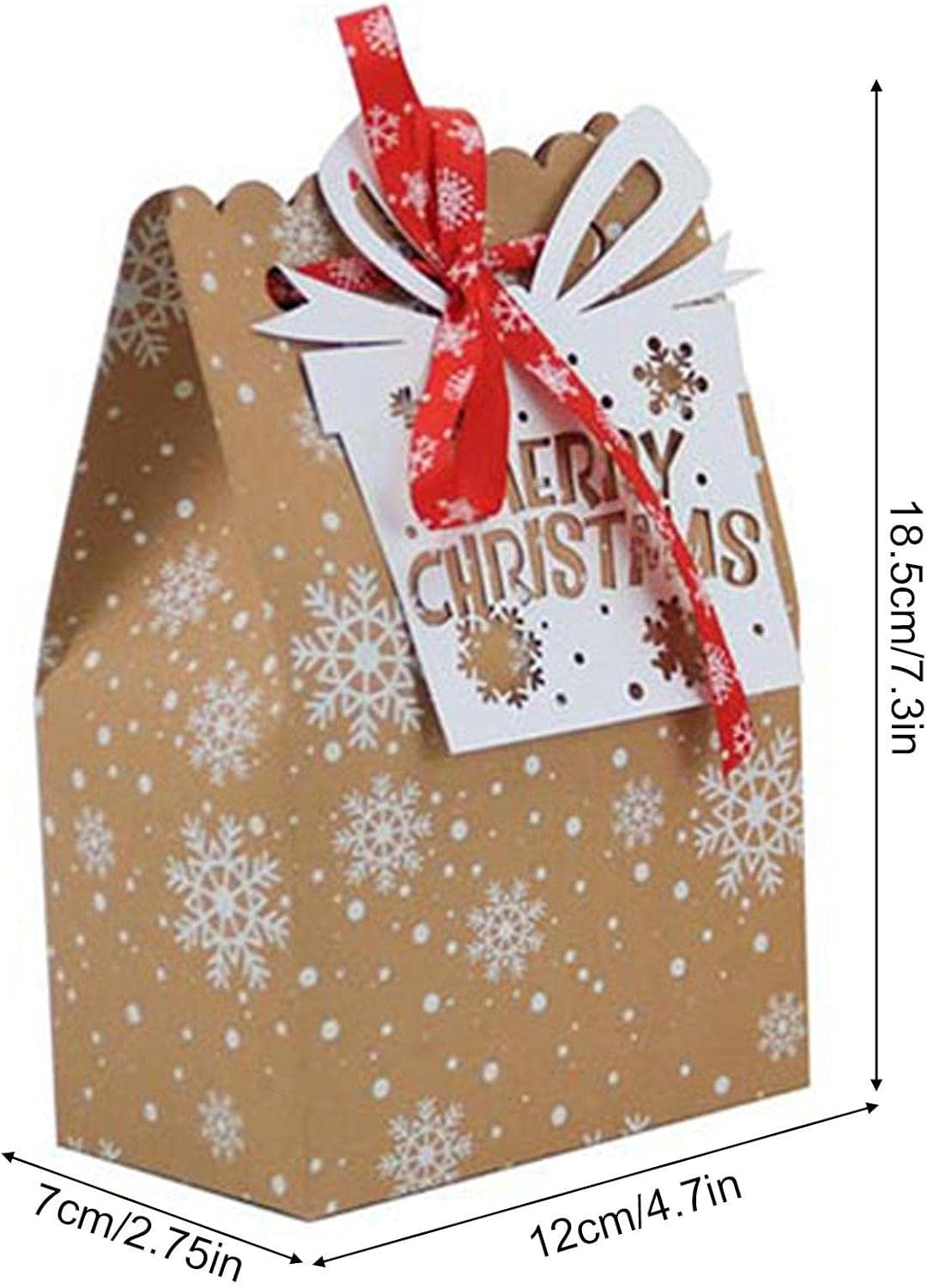 [Contenuto sufficiente]: i sacchetti regalo di Natale in carta hanno 4 design diversi e ciascuno ha 6 sacchetti, sufficienti per soddisfare le tue esigenze per feste di diverse dimensioni, inclusi 24 sacchetti, 24 etichette bianche e 24 nastri rossi con fiocchi di neve. [Comodo assemblaggio]: i sacchetti regalo natalizi in carta kraft creano un momento felice unico tra genitori e figli, progettati con pieghe per un facile assemblaggio, così semplici che i tuoi bambini possono aiutarti. [Materiale di fascia alta]: la carta per sacchetti per bomboniere offre prestazioni robuste, inodore, sicure e riciclabili, progettata per un festival felice, realizzata con carta kraft di alta qualità sotto un rigoroso controllo di qualità. [Varie occasioni]: i sacchetti di carta per bomboniere ti lasceranno un ricordo indimenticabile e ti regaleranno un'atmosfera natalizia, perfetta per feste di Natale, feste di compleanno, feste di matrimonio e feste a tema invernale. [Uso versatile]: le Goodie Bag Christmas non sono solo per dolcetti, ma anche per artigianato e giocattoli, adatte per confezionare articoli per feste e piccoli regali, perfette per confezionare dolci, biscotti, cioccolatini e altri snack.