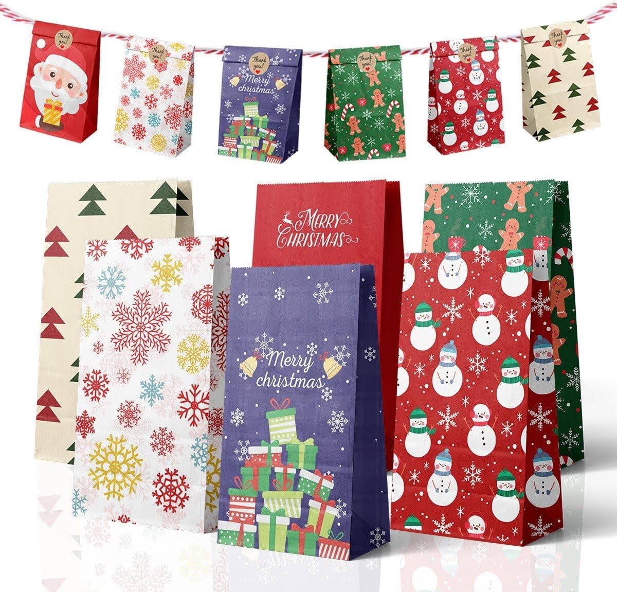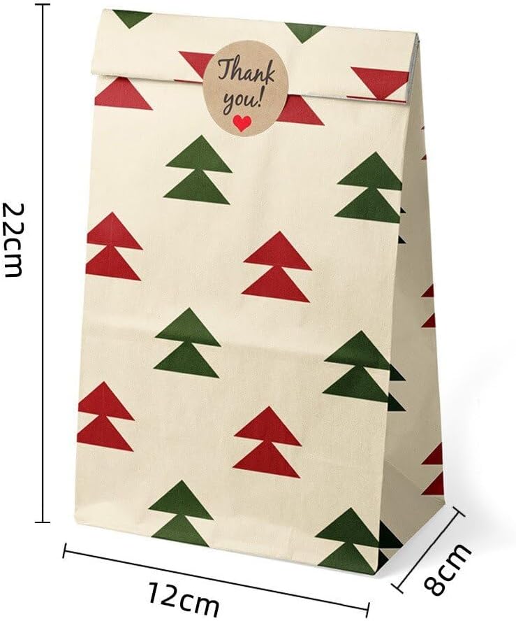 Il pacchetto include: 24 scatole di carta da regalo per sacchetti regalo di Natale in carta kraft, perfette per confezionare regali per le feste di Natale. I sacchetti regalo sono realizzati in carta kraft particolarmente spessa, che non si piega facilmente e, soprattutto, è opaca. Questa è la sorpresa! perfetto per le bomboniere delle feste di Natale. Attaccali alla confezione regalo con le etichette regalo di Natale. I nostri sacchetti di carta misurano 13 x 8 x 22 cm, sufficienti per trasportare bomboniere, piccoli regali e altri oggetti quotidiani. Perfetto da riempire: le dimensioni dei sacchetti di caramelle per bomboniere sono 4,5 x 3 x 7 pollici. I sacchetti di carta natalizi possono essere riempiti con molti regali di piccole e medie dimensioni: biscotti, cioccolatini, torte, snack, premi, oggetti di artigianato, piccoli giocattoli, caramelle, biscotti ecc. La scelta migliore per confezionare i regali di Natale! PERFETTO PER NATALE - 12 motivi natalizi: albero di Natale, fiocchi di neve, Babbo Natale, renne, ecc. sui sacchetti regalo in carta kraft rendono la tua festa più interessante e attraente. bellissimo colpo d'occhio nel periodo natalizio.