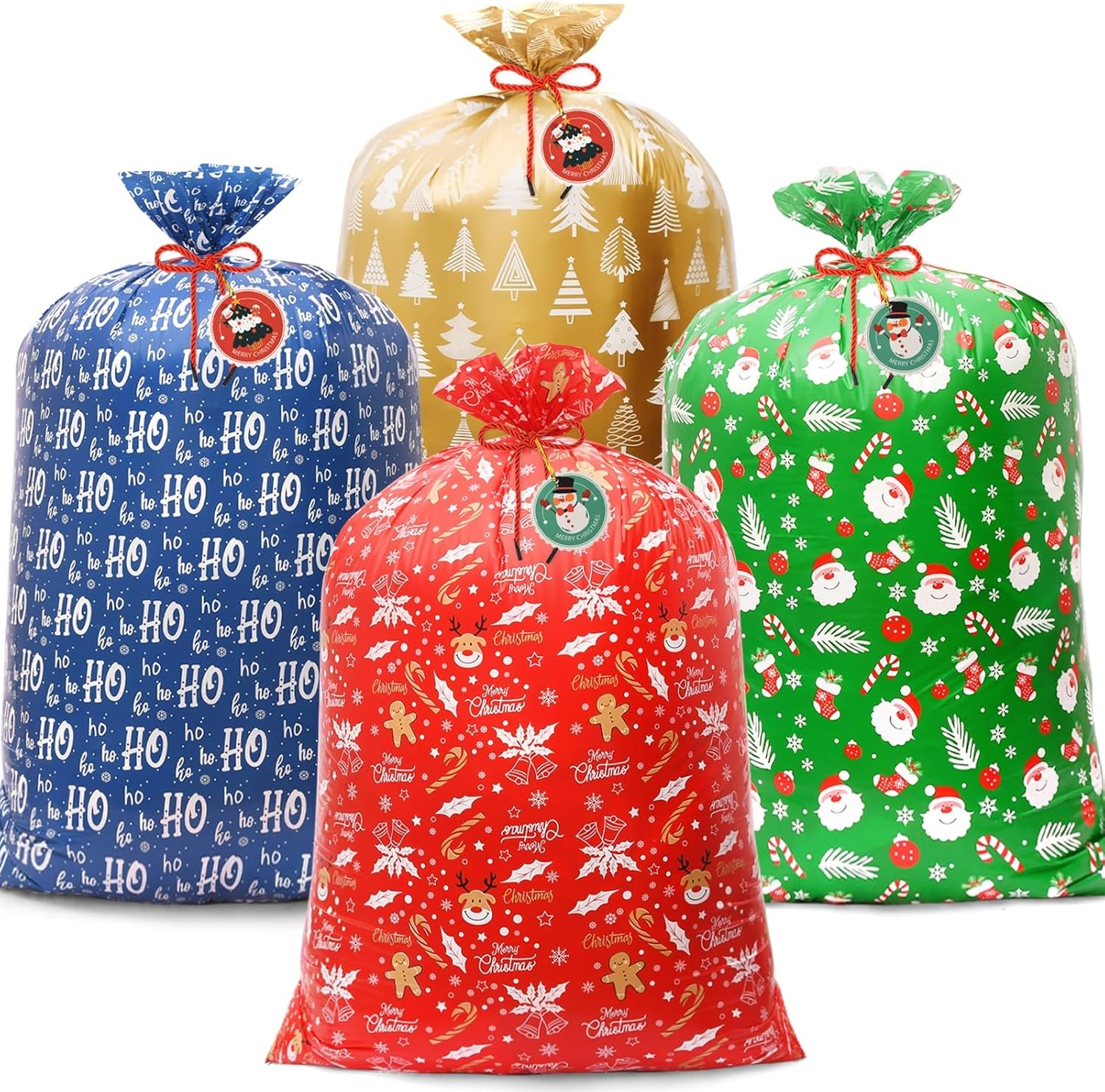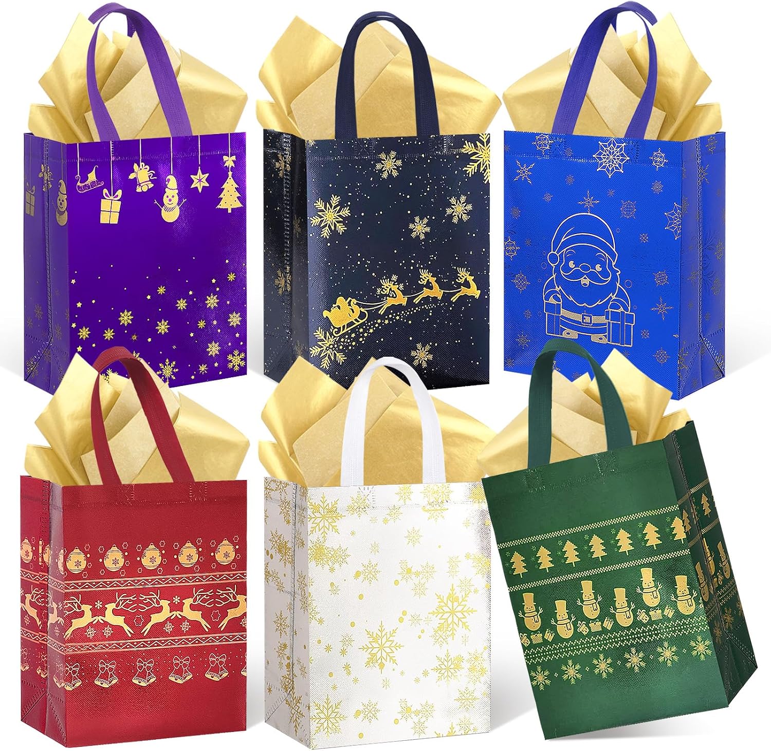 Opzione di conservazione sicura: queste borse festive robuste e facili da usare offrono una comoda alternativa alla carta fragile. Forniscono uno spazio sicuro per tutti i tipi di regali e semplificano i preparativi per le vacanze. Divertimento per secoli: crea un'atmosfera festosa con vivaci disegni natalizi. Perfetto per la presentazione di regali durante le riunioni di famiglia e le celebrazioni di fine anno, apprezzato da ogni generazione. Combinazione festosa: versatilità e festività, queste borse soddisfano le esigenze decorative delle aule e degli alberi di Natale, forniscono confezioni regalo di qualità e aggiungono un tocco festoso a qualsiasi riunione o celebrazione stagionale. Design robusto: sacchetti in foglio di alluminio robusti, riutilizzabili e resistenti agli strappi con elevata capacità di carico. Perfetto per preservare la forma e l'integrità dei regali durante tutto il periodo natalizio. Maneggevolezza semplificata: l'affidabile chiusura con coulisse di questi sacchetti natalizi garantisce un confezionamento rapido e una preparazione intuitiva dei regali grazie a un sistema di apertura/chiusura senza sforzo.