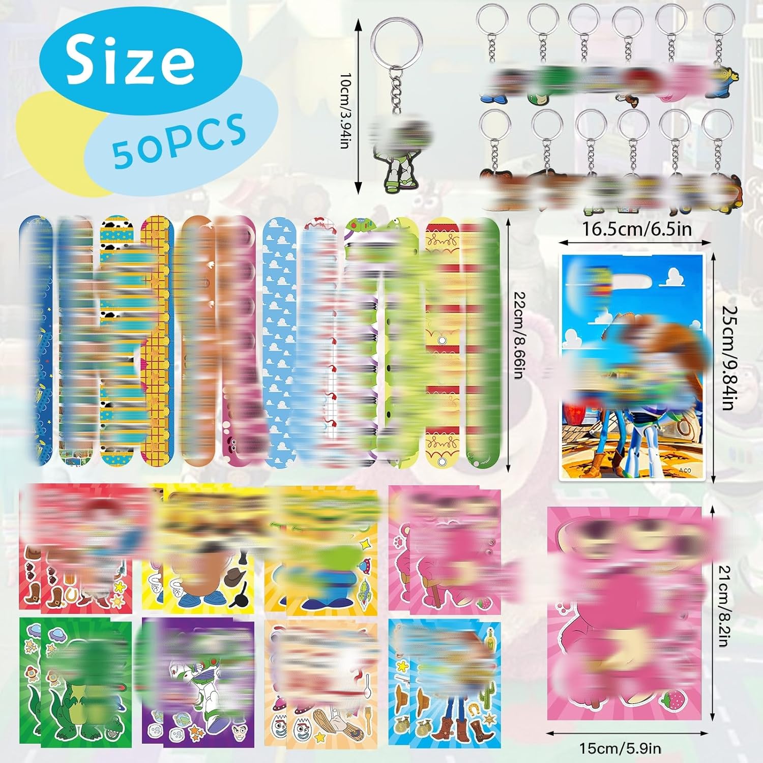 【Set di borse per festa di compleanno per bambini】: riceverai 12 braccialetti schiaffo, 16 adesivi per il viso fai-da-te, 12 portachiavi, 10 sacchetti di carta da regalo, 50 pezzi in totale. La varietà di colori e accessori garantisce che i bambini possano divertirsi ed essere creativi quando giocano con gli amici. 【Giocattoli sicuri】 Le borse da festa sono realizzate con materiali di alta qualità, non tossici e inodori, durevoli e riutilizzabili. Il bordo del braccialetto schiaffo è morbido, flessibile ed elastico, non graffia la pelle ed è facile da indossare e regolare. Gli adesivi sono autoadesivi, adatti ai bambini e possono essere rimossi facilmente e senza lasciare residui. Garantisci la sicurezza e la salute dei bambini che giocano e offri ai genitori maggiore tranquillità.,Design carino: questi riempitivi per borse da festa per bambini sono colorati e carini, con motivi stampati ad alta definizione e portachiavi flessibili. I tuoi bambini possono creare diverse espressioni dei personaggi con adesivi fatti in casa, esercitando le loro abilità pratiche e la loro immaginazione. 【Set di compleanno per bambini casuale】: contiene una varietà di colori e stili di giocattoli casuali, ogni volta che lo apri è una nuova esperienza. Puoi scegliere diversi tipi di combinazioni di colori e motivi per creare un'atmosfera di festa secondo i tuoi desideri e rendere la festa del tuo bambino più unica e piena di sorprese. 【Regalo perfetto per le feste】 Questo sacchetto regalo per le feste è molto popolare tra i bambini. Puoi regalarli ai tuoi bambini per regalare loro una festa di compleanno indimenticabile. Allo stesso tempo, può migliorare la coordinazione occhio-mano di tuo figlio. Può anche allenare le capacità di concentrazione e osservazione di tuo figlio. Perché non lo provi?