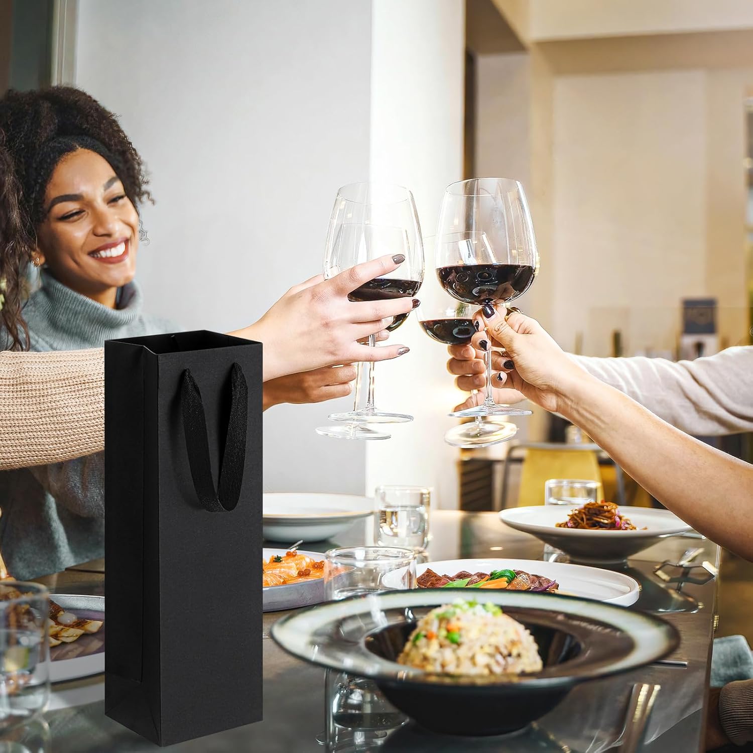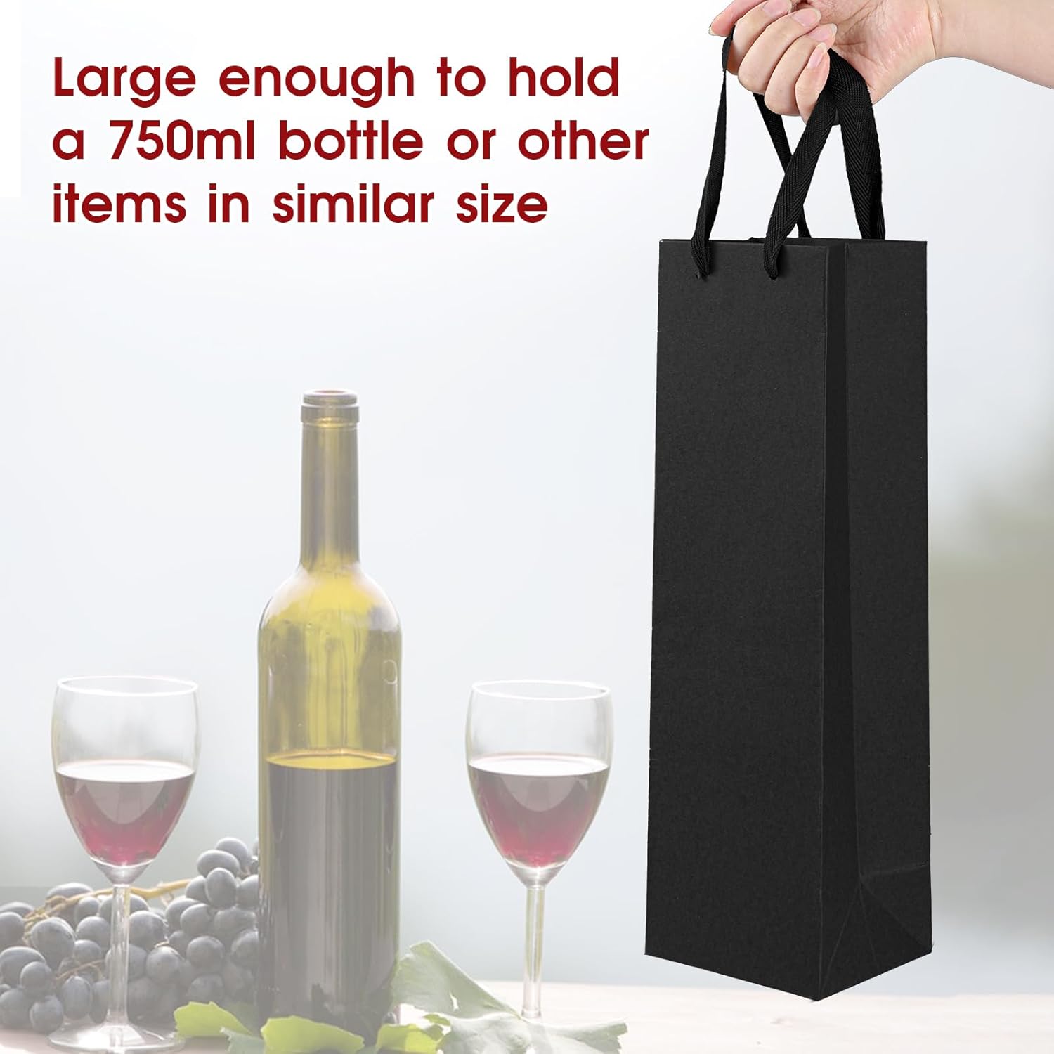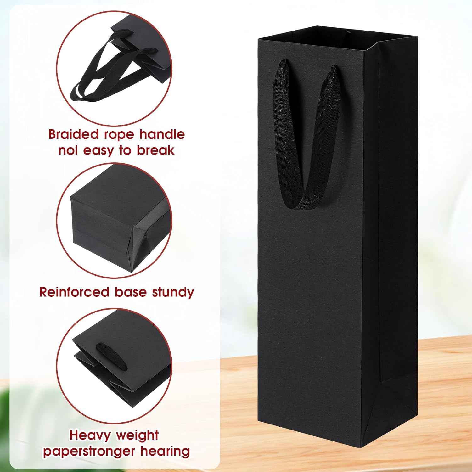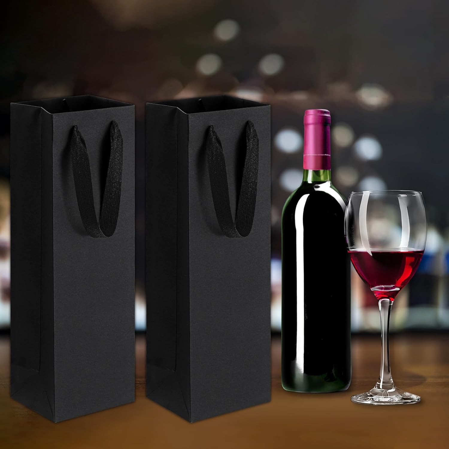 Eleganti sacchetti regalo neri: realizzati in carta Kraf di alta qualità con una finitura liscia opaca e robusti manici in corda, questi sacchetti regalo riutilizzabili per vino nero trasudano raffinatezza per qualsiasi celebrazione. Durevole, elevata capacità di trasporto: il fondo rinforzato e le robuste maniglie sono progettati per contenere in modo sicuro bottiglie singole o articoli da regalo sottili, rendendo questi sacchetti regalo per vino neri affidabili per le esigenze quotidiane dei regali. REGALO VERSATILE E USO AL DETTAGLIO: Ideali per bomboniere, compleanni, vacanze o regali aziendali, questi sacchetti regalo color champagne migliorano le presentazioni pur rimanendo pratici per una varietà di occasioni. LEGGERI MA ROBUSTI: Con un peso di 90 g ciascuno, questi sacchetti regalo per champagne in stile tote bilanciano leggerezza e durata, consentendo una facile movimentazione senza compromettere resistenza o stile. Dimensioni e dettagli dell'imballaggio: Nome del prodotto: Sacchetti regalo per bottiglie di vino nere con manici; materiale: carta; colore: nero; Dimensioni: 9 x 11 x 35,1 cm per busta; Il set include 2 sacchetti regalo di carta nera per un pratico regalo.