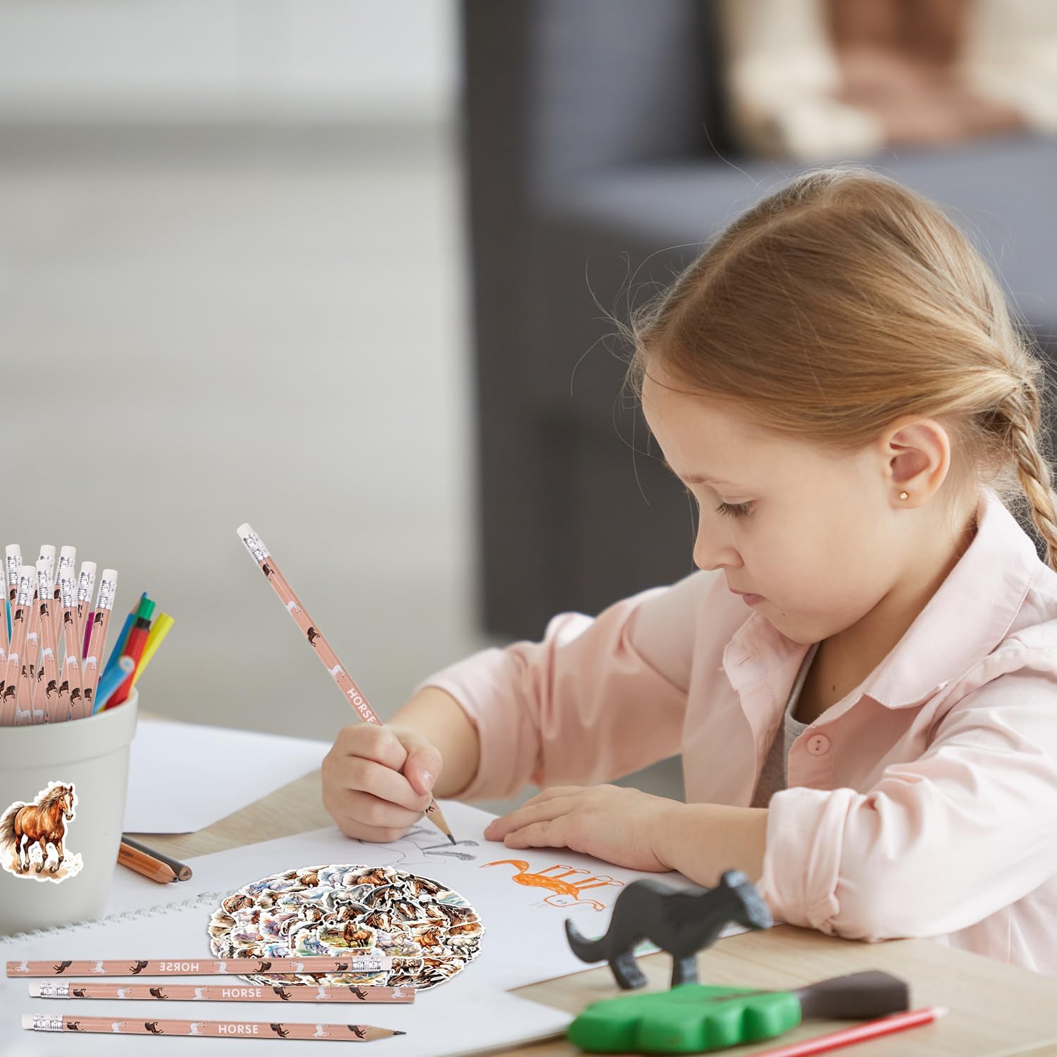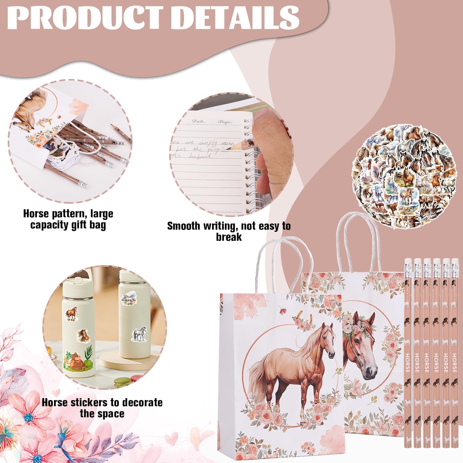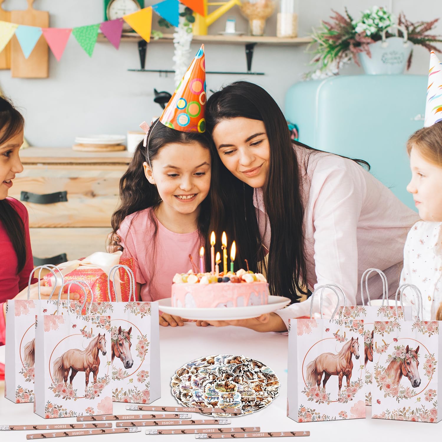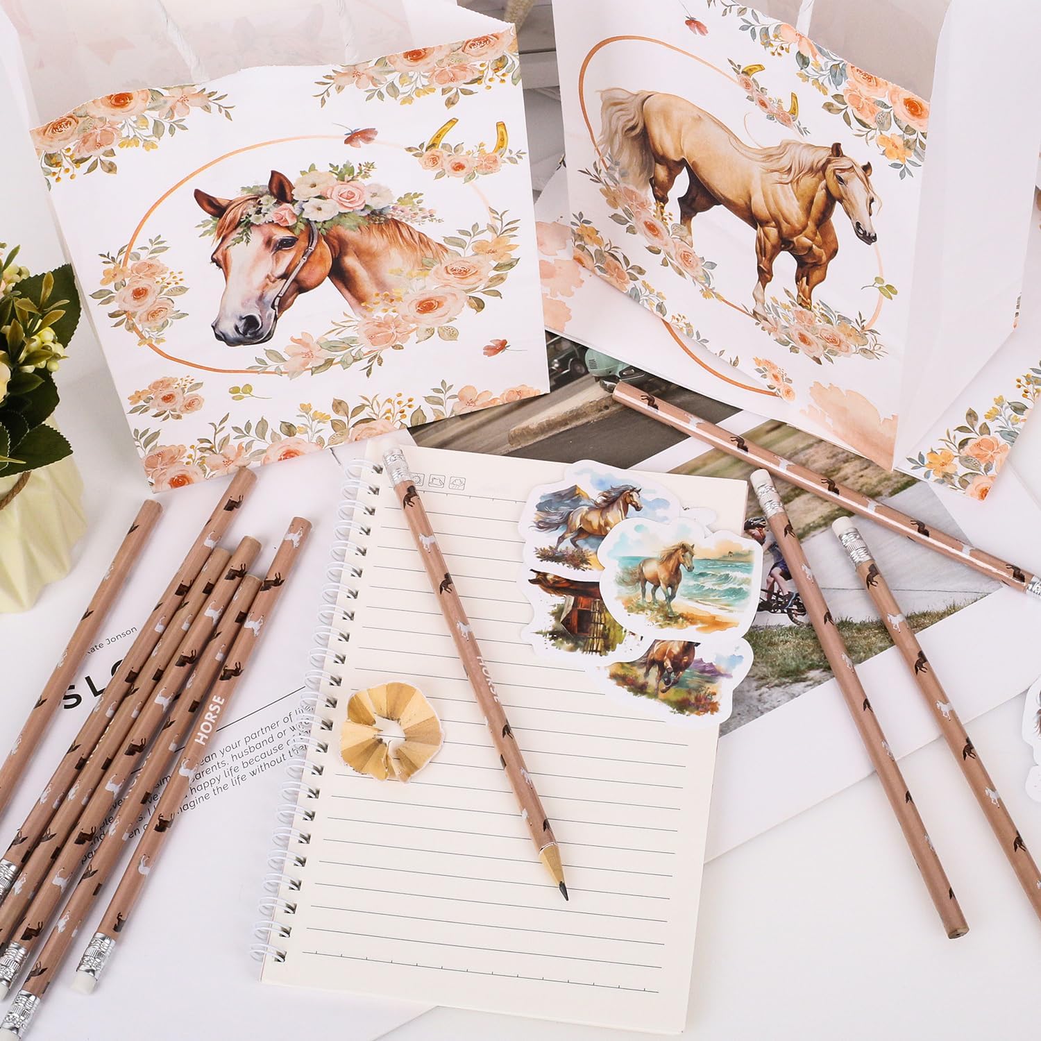 Design con motivi di cavalli: oggigiorno i compleanni dei bambini hanno spesso un tema specifico. Inoltre è sempre più frequente regalare ai bambini ospiti qualcosa da portare a casa con sé: un “party bag”. Per queste e altre occasioni simili è adatto un set di borse da festa per cavalli come quello qui offerto sul tema “cavalli”. Set di sacchetti per feste con cavalli: la selezione di regali di cavalli per feste di compleanno per bambini amanti dei cavalli è composta da 74 pezzi. 12 matite per cavalli, 12 sacchetti regalo per cavalli e 50 fogli di adesivi per cavalli per un design creativo. Perfetto per feste di compleanno per bambini o feste in stalla, open day o lotterie a premi. Ampie applicazioni: le nostre borse da festa a cavallo per i compleanni dei bambini sono molto adatte come decorazioni per il compleanno dei cavalli, borse da festa a cavallo per i compleanni dei bambini, compleanni di pignatta, corse di cavalli, premi in classe, imbottiture di pignatta ecc. Ottimo per i piccoli amanti dei cavalli. Il momento clou della festa di compleanno! Ha attirato l'attenzione tra le bomboniere della festa di compleanno. Borsa per festa di compleanno con cavallo: molto buona per gli amanti dei cavalli, puoi creare borse a sorpresa ed è stata molto apprezzata per i compleanni dei bambini. Non solo sono una fantastica aggiunta a una festa di compleanno a cavallo, ma sono anche un modo divertente e creativo per deliziare i piccoli ospiti. Borsa regalo per cavalli: queste borse per compleanno a cavallo sono molto stabili e hanno la dimensione giusta per essere riempite. Motivi molto carini per gli amanti dei cavalli. Borse regalo molto belle e robuste per i nostri piccoli ospiti.