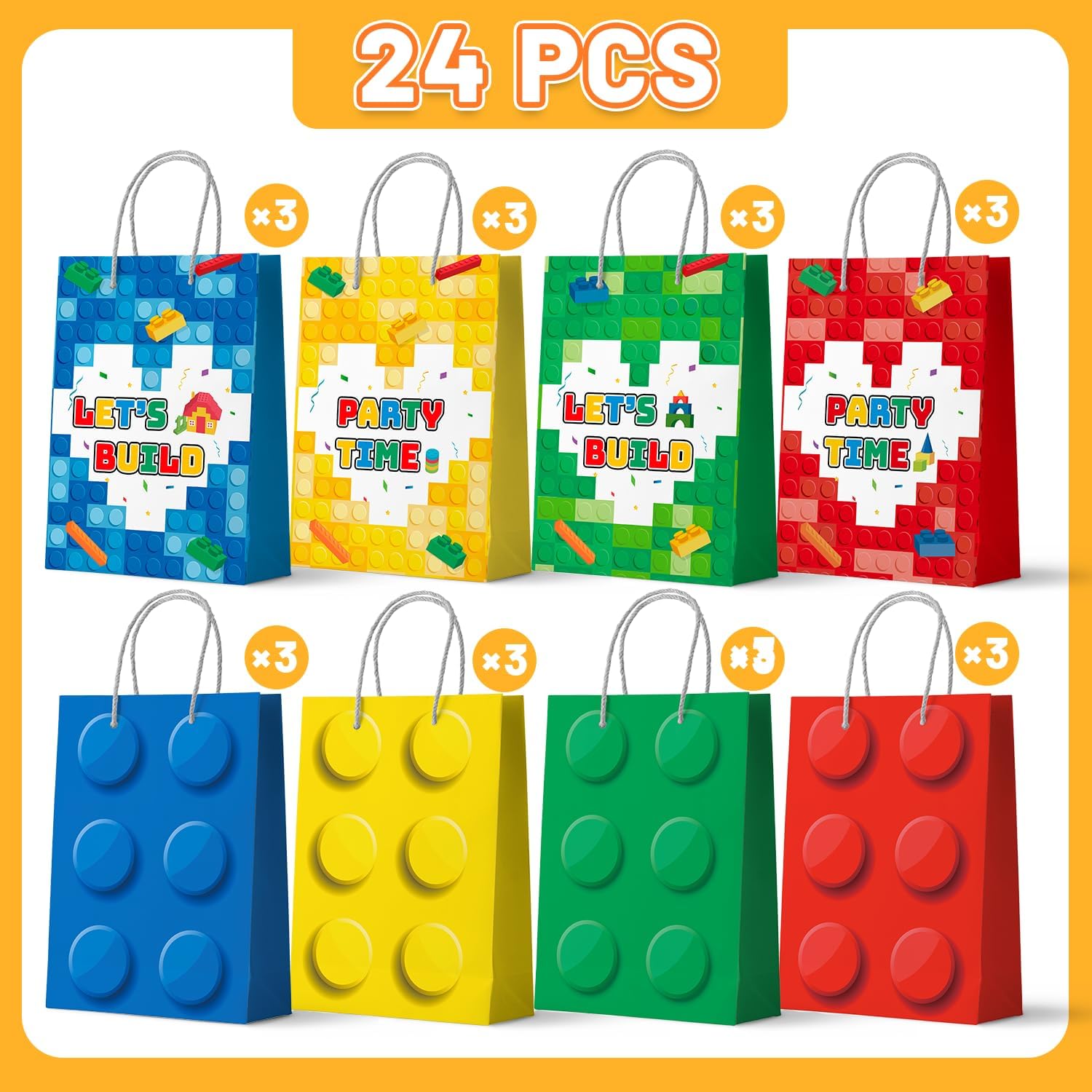 Borsa regalo con mattoncini: questo set di sacchetti regalo con motivo a mattoncini contiene 24 sacchetti regalo con mattoncini, 8 modelli diversi, 3 sacchetti di carta con mattoncini per ogni modello, in grado di soddisfare le diverse esigenze di sacchetti regalo per feste con mattoncini. Design unico: questi sacchetti regalo di compleanno con mattoncini sono pieni di elementi a tema mattoncini in diversi colori e aspetto classico, che possono creare una forte atmosfera di mattoncini per la tua festa di compleanno di mattoncini. Qualità eccellente: le nostre bomboniere per feste di compleanno con mattoncini sono realizzate con materiali di alta qualità, sono durevoli e non si strappano, si usurano o si deformano facilmente, rendendole la scelta migliore per la decorazione delle feste con mattoncini. Dimensioni adatte: ogni sacchetto per feste a tema con mattoncini misura 8x 5,9x 3,1, fornendo spazio sufficiente per biscotti, snack, popcorn, caramelle, piccoli premi, piccoli giocattoli e altri regali per feste di compleanno con mattoncini, che renderanno il tuo sacchetto regalo per feste con mattoncini più interessante e memorabile. Ampia applicazione: i sacchetti regalo con mattoncini nelle forniture per feste con mattoncini sono adatti per feste a tema con mattoncini, feste di compleanno con mattoncini, feste con mattoncini, feste a tema con mattoncini, baby shower con mattoncini e altre feste a tema.