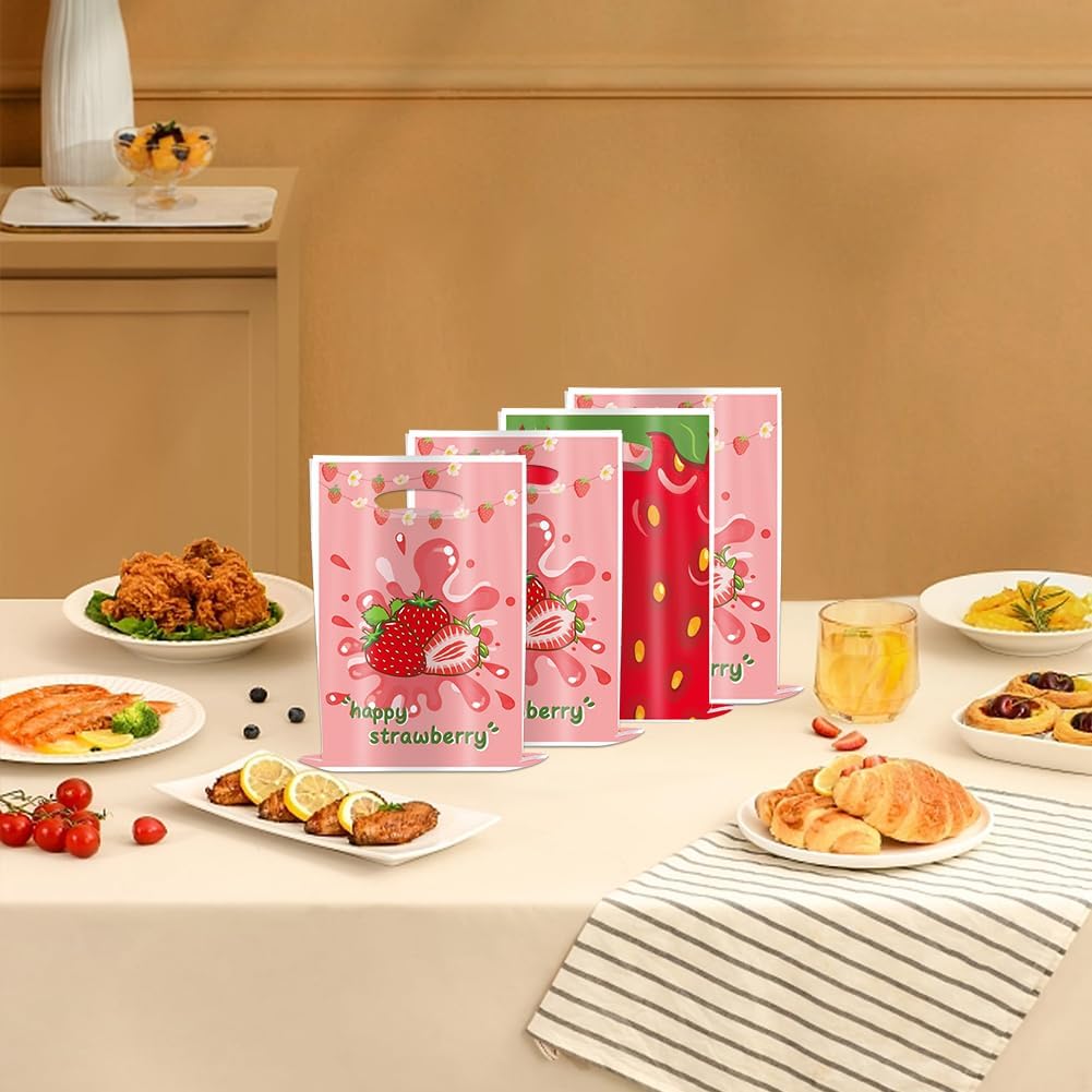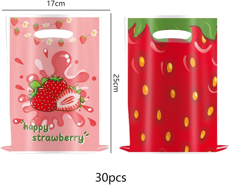 Il pacchetto include: 30 sacchetti per bomboniere con fragole. Fornisce una quantità sufficiente per soddisfare le tue esigenze per feste, eventi o uso quotidiano. Materiale premium: i sacchetti di caramelle alla fragola sono realizzati in materiale OPP di alta qualità, atossico e inodore, colore uniforme, materiale spesso, leggero e semplice, di alta qualità. Inoltre, sono progettati con maniglie ritagliate, facili e comode da trasportare. DESIGN UNICO: Questi sacchetti per caramelle sono disegnati con fragole rosse e rosa, con un classico abbinamento di colori, ogni dimensione è 25 x 17 cm. Crea una vivace atmosfera a tema fragola per le feste estive e lascia bei ricordi a tutti. Facile da usare: questi sacchetti per dolcetti alla fragola sono riutilizzabili e facili da inserire o estrarre ciò di cui hai bisogno. Puoi usarli per posizionare biscotti e dolci, perfetti per la decorazione della tua festa a tema fragola. Ampie applicazioni: sono ideali come sacchetti regalo per il compleanno di un bambino e possono essere facilmente utilizzati per regalare piccoli oggetti durante baby shower, campeggio, feste estive, addio al nubilato, matrimoni, feste di squadra e altri eventi interni ed esterni e altre feste a tema simili.