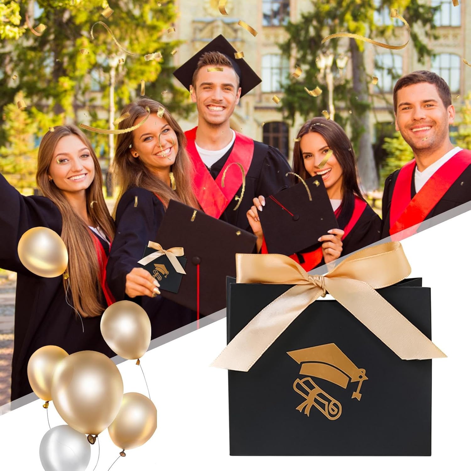 Soluzione di archiviazione versatile: ideali per eventi speciali, queste borse regalo offrono un design spazioso per riporre vari oggetti con praticità ottimale, perfettamente adatte alle diverse esigenze delle celebrazioni di laurea. Materiale cartaceo: progettata per ottimizzare l'esperienza di condivisione, questa versione riutilizzabile in carta spessa garantisce un utilizzo regolare e piacevole durante le celebrazioni studentesche o le riunioni festive. Design pratico e affidabile: sacchetti per caramelle di laurea pronti all'uso con struttura antideformazione, compatti e pieghevoli per una conservazione ottimale. Il loro formato leggero li rende facili da trasportare e organizzare risparmiando spazio di archiviazione. Decorazione armoniosa: crea un'atmosfera festosa memorabile attraverso una perfetta integrazione con i temi degli eventi, appositamente progettati per mostrare caramelle migliorando al tempo stesso l'estetica delle celebrazioni di laurea. Resistenza ottimizzata: mantiene pieghe nitide e rigidità eccezionale anche dopo un uso ripetuto. liscio a prova di sbavature con trattamento opaco e dettagli sui bordi pressati migliorano sia l'attrattiva visiva che la praticità quotidiana (caratteri: 248)