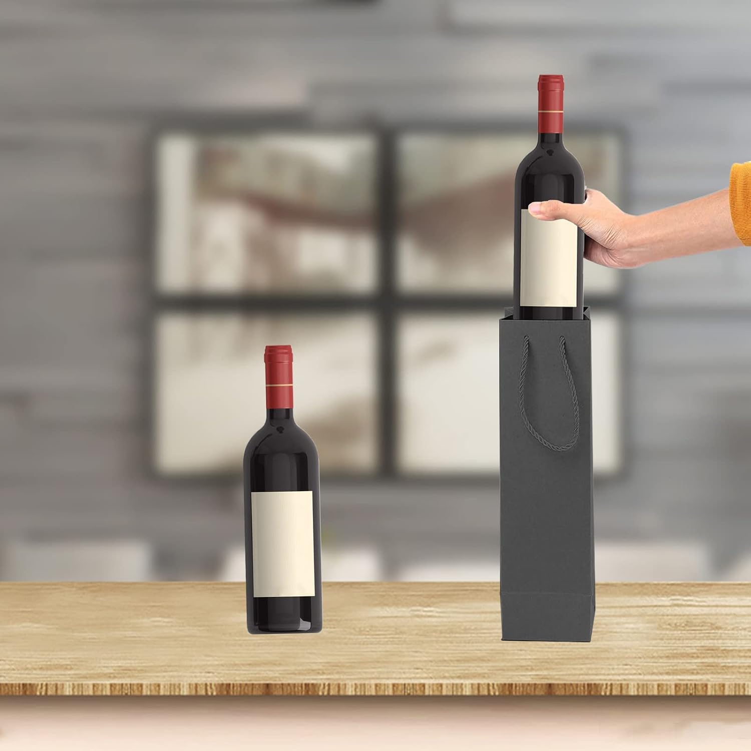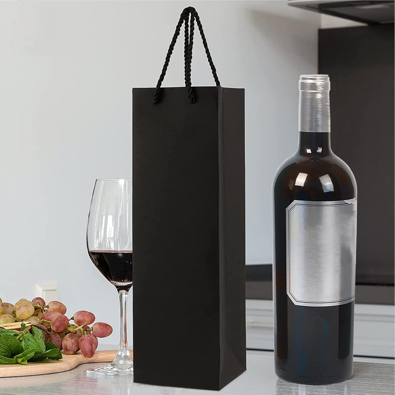 QUALITÀ PREMIUM: borsa per vino per bottiglia singola realizzata in cartone di alta qualità, resistente e durevole, con robuste maniglie in corda per il riutilizzo. Bellissimo design: realizzata in cartone di alta qualità, la borsa regalo per vino è dotata di una bella tracolla robusta e la maniglia in corda ha un rivestimento in raso per un trasporto più confortevole. La borsa può stare in posizione verticale per un facile accesso. Dimensioni della borsa tote: 9,5 cm x 9,5 cm x 35 cm / 3,7 x 3,7 x 13,7 pollici, la borsa può contenere bottiglie di vino da 750 ml a 1,5 litri. La confezione include: 20 sacchetti regalo per vino con manici con cordoncino, design kraft marrone, perfetti per scrivere e disegnare fai da te. Versatile: i sacchetti per vino possono essere utilizzati per diversi tipi di bottiglie di vino. Perfetti per qualsiasi evento e festività come Natale, Ringraziamento, anniversari e regali di compleanno.