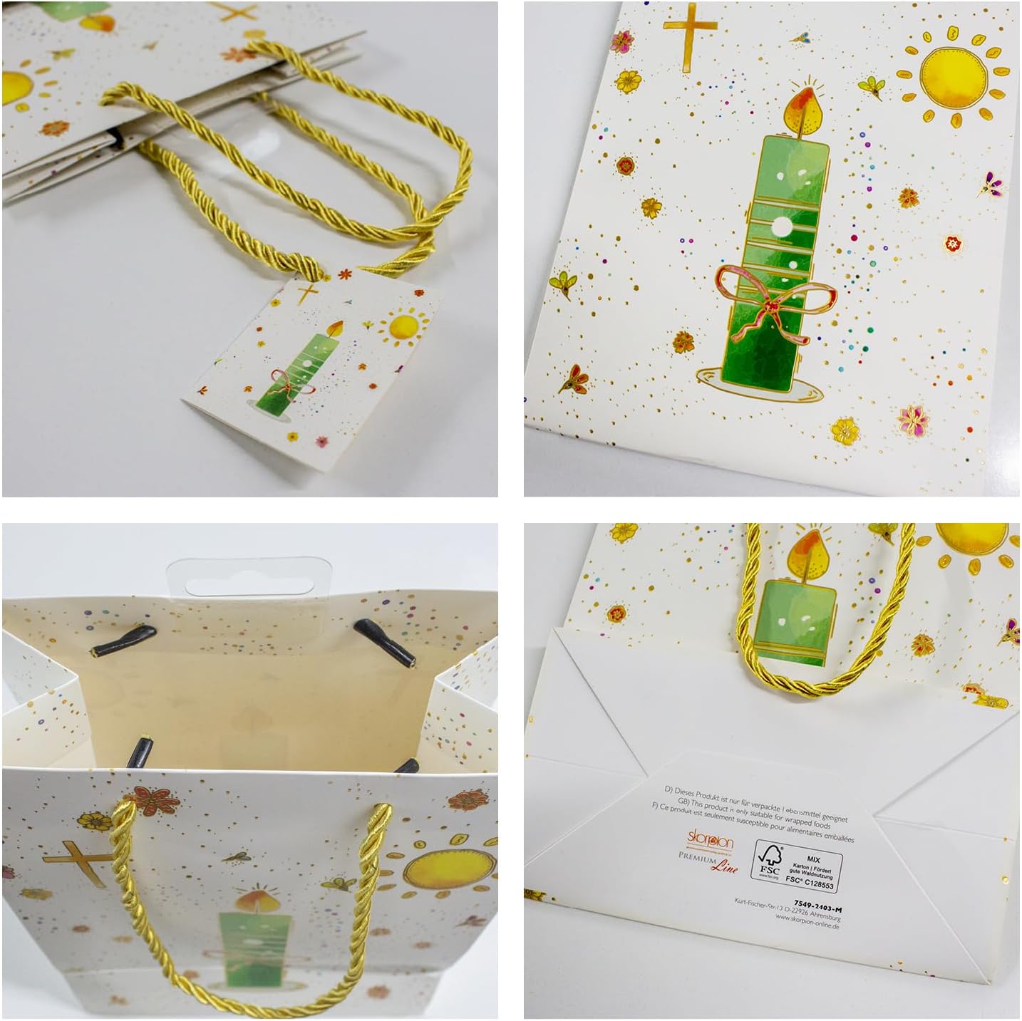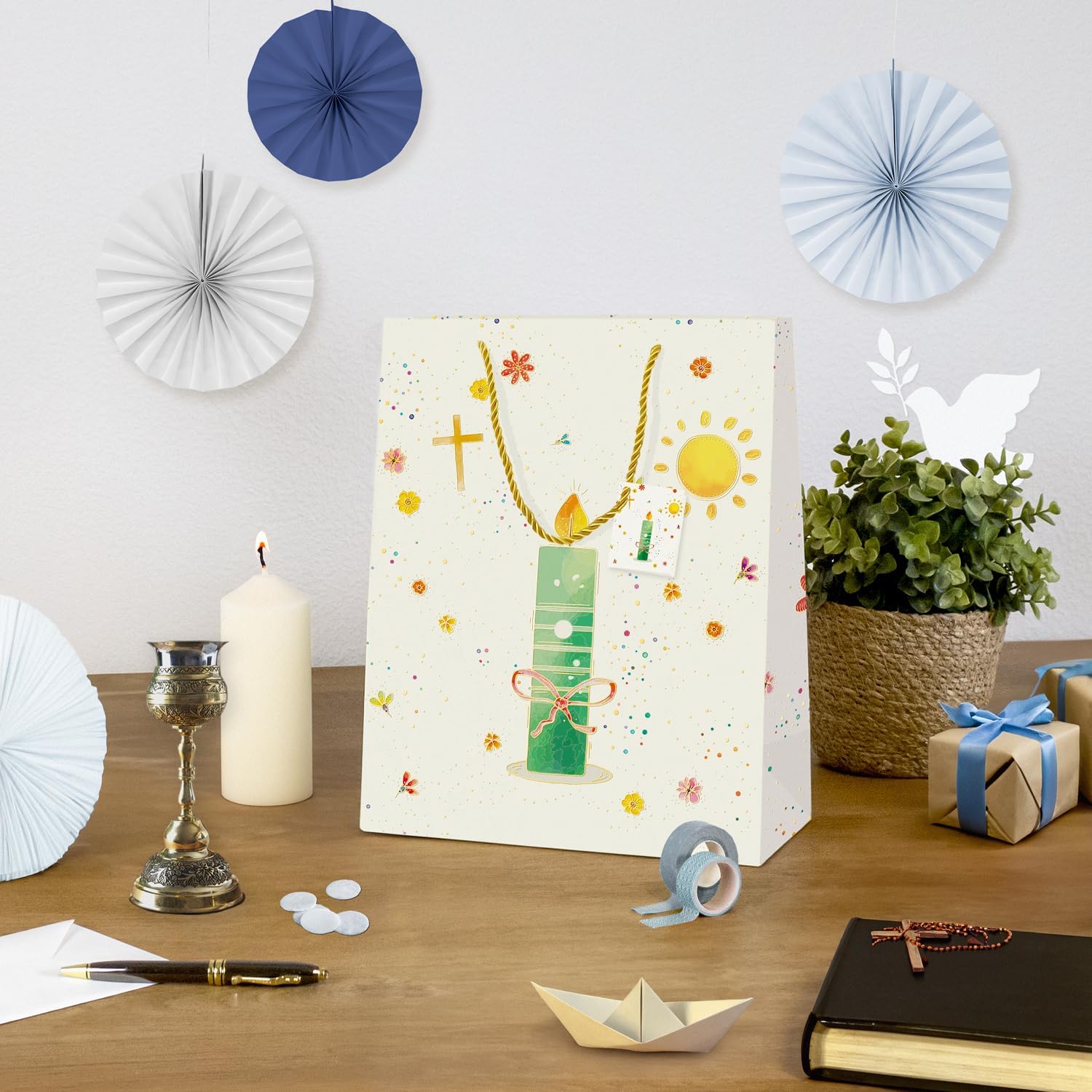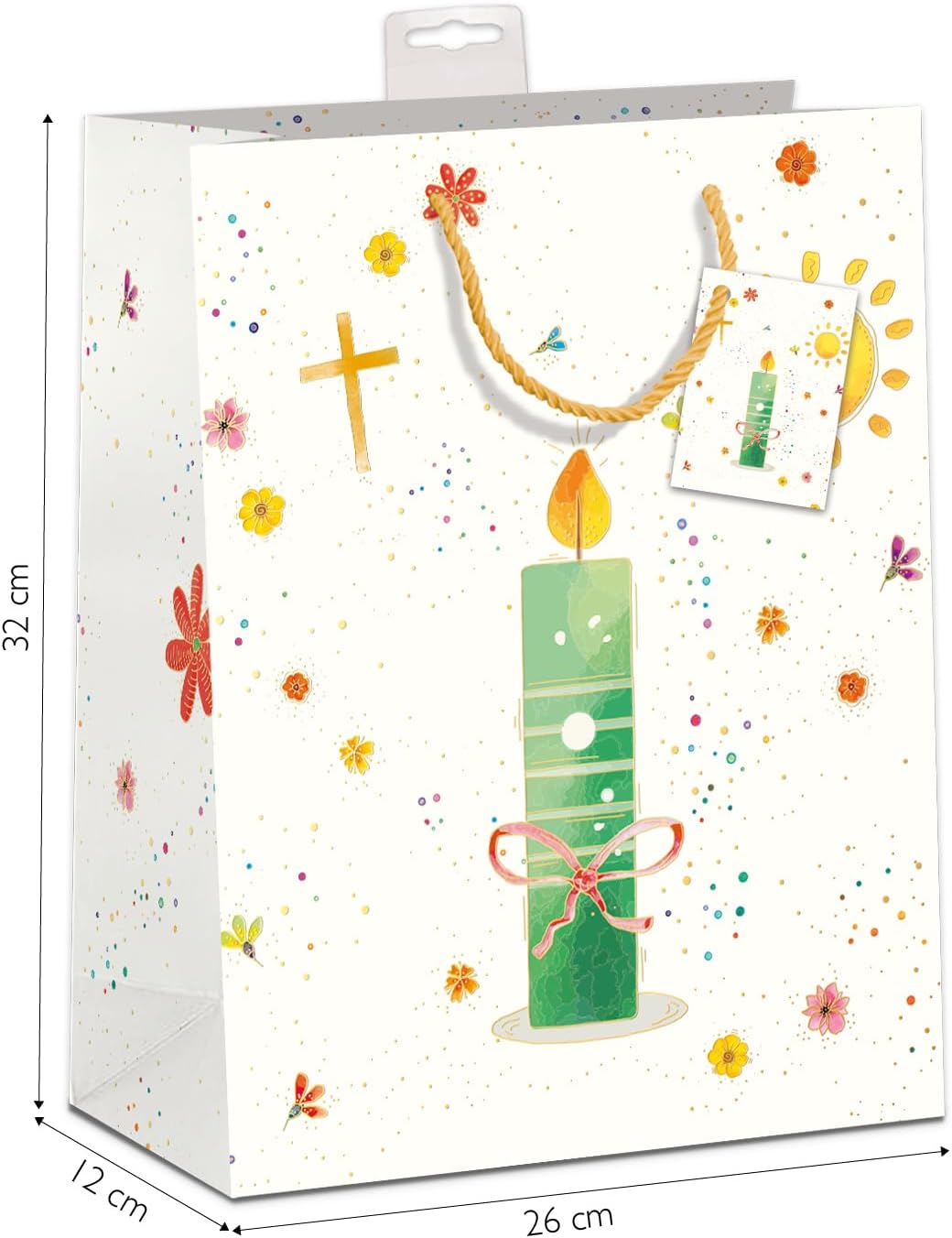 🙏 QUALITÀ PREMIUM - Fornitura: 6 sacchetti regalo di alta qualità per occasioni religiose in qualità premium 🎁 PERFETTO PER UN REGALO - ideale per regali fino al formato DIN A4, formato Large (26 x 32 x 12 cm) 🕊️ DESIGN DI ALTA QUALITÀ - Finitura di alta qualità con vernice a dispersione e laminazione opaca ✝️ EXTRA PRATICI - Ogni sacchetto include cordoncino colorato, cartellino con il nome e dispositivo Euro Hole 🌷 ROBUSTO - carta stabile e resistente agli strappi, spessore carta: 210 g/m²