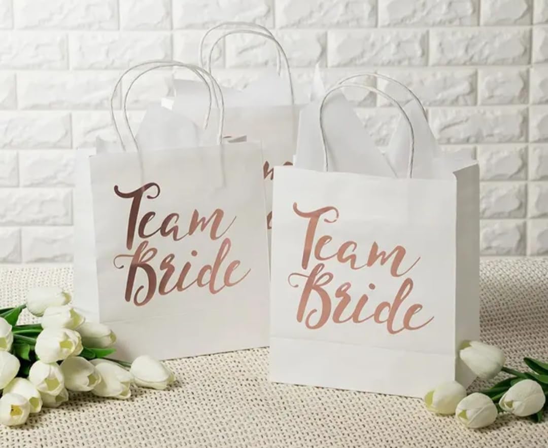 DESIGN UNICO: questo set di 5 sacchetti regalo in stile Team Bride è perfetto per le feste di addio al nubilato. Materiali di alta qualità: i sacchetti sono realizzati in carta robusta e offrono spazio sufficiente per le vostre sorprese. Versatile: che si tratti di piccoli regali, caramelle o decorazioni, queste borse possono essere utilizzate in molti modi diversi. Facile da usare: grazie alle loro pratiche dimensioni, le borse possono essere facilmente riempite e trasportate. Atmosfera festosa: con i colori e i motivi allegri, le borse donano alla tua festa la perfetta atmosfera da addio al nubilato.