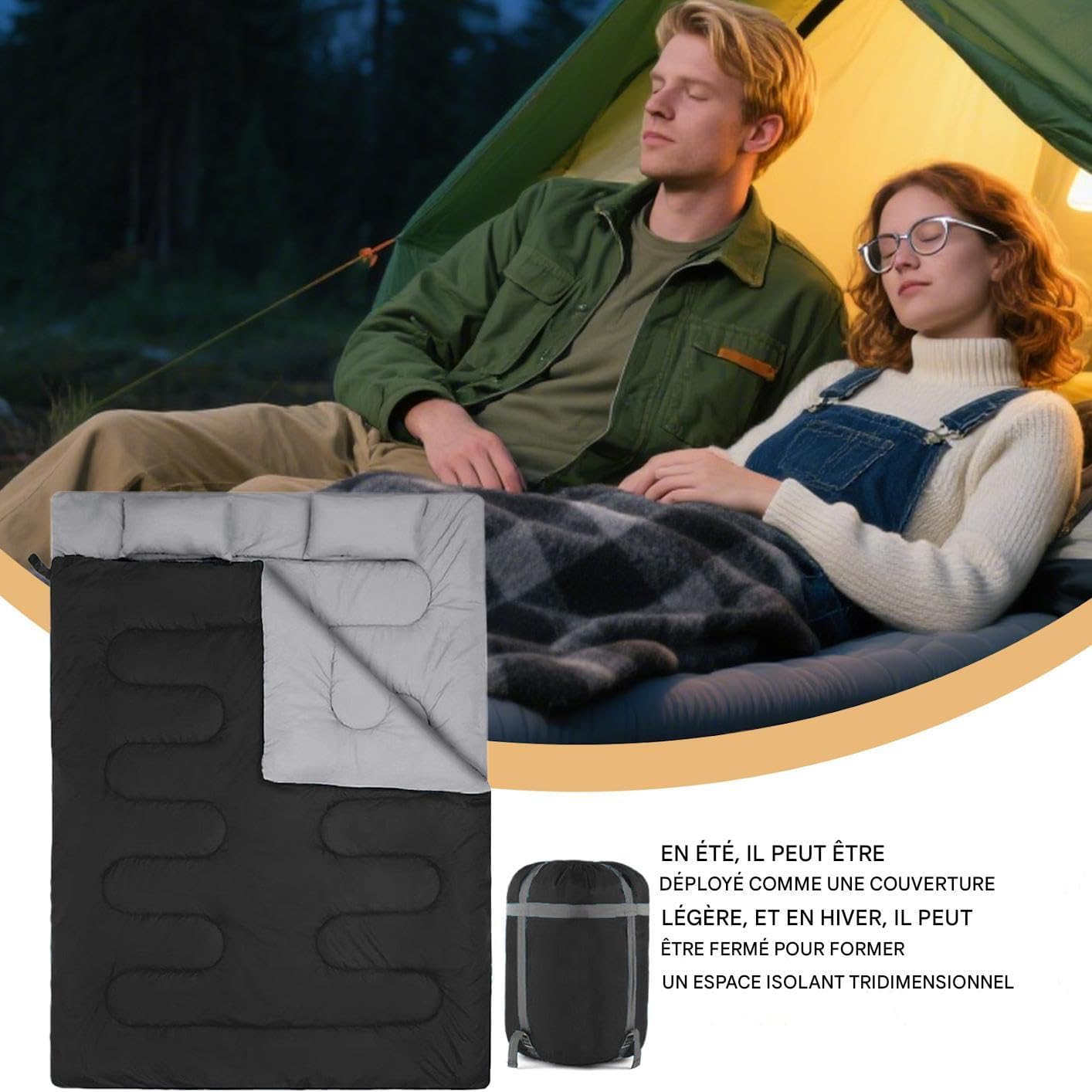 Resistenza al calore: materiali impermeabili al vento e resistenti all'acqua con poliestere 210T e isolamento termico sintetico per mantenere un calore costante e un comfort in ambienti freddi. Libertà di movimento: maggiore libertà di azione grazie all'ampio spazio di stretching comfort termico tramite un design a volume ampliato e meticolose tecniche di taglio tridimensionale Ampio utilizzo: un sacco a pelo innovativo con cerniera avvolgente che consente una ventilazione regolabile, offrendo un controllo ottimale del flusso d'aria garantendo una chiusura sicura per un comfort ininterrotto durante la notte. Confortevole e affidabile: Combinando le funzioni di equipaggiamento auto e biancheria da letto, questo sacco a pelo soddisfa le esigenze di esplorazione esterna, garantendo una maggiore utilità pratica attraverso la sua versatilità e prestazioni affidabili in vari ambienti. Ventilazione piede staccabile: sistema di ventilazione regolabile al piede per un controllo localizzato della ventilazione. Combina praticità della borsa a compressione portatile e flessibilità del cappuccio pieghevole per l'avventura all'aperto.