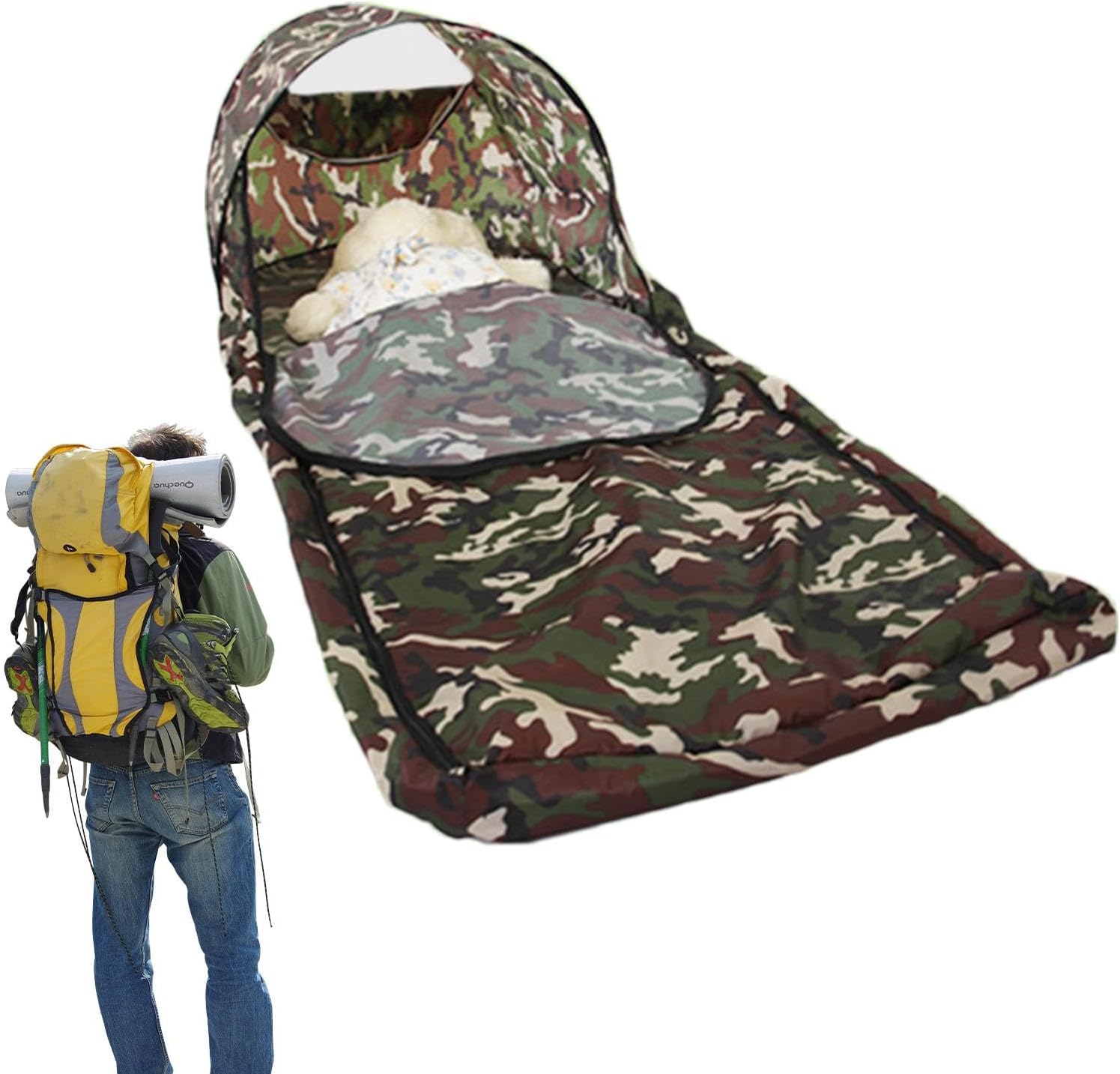 ✣Perfetto comfort per il sonno: con i suoi interni sontuosamente progettati che garantiscono uno spazio adeguato, il nostro sacco a pelo garantisce una durata di alta qualità, garantendo ogni volta un'esperienza di riposo eccellente. ✣Protezione a prova di peep: il nostro sacco a pelo offre mimetizzazione naturale e completa privacy, garantendo la massima protezione e proteggendoti da occhi indiscreti. ✣Trasporta facilmente: il nostro sacco a pelo leggero offre un ambiente di riposo confortevole ovunque, rendendolo la scelta perfetta per l'escursionismo, il campeggio o qualsiasi altra avventura in cui ti imbarchi. ✣Comodo da usare: apri, chiudi e riposa: goditi un relax senza problemi con il nostro sacco a pelo che si adatta rapidamente a qualsiasi ambiente, senza bisogno di attrezzi, assicurando che la tua avventura inizi senza ritardi. ✣Ampie applicazioni: sperimenta il massimo comfort durante le tue avventure all'aria aperta con questo versatile sacco a pelo ideale per il campeggio, il ciclismo o i picnic.