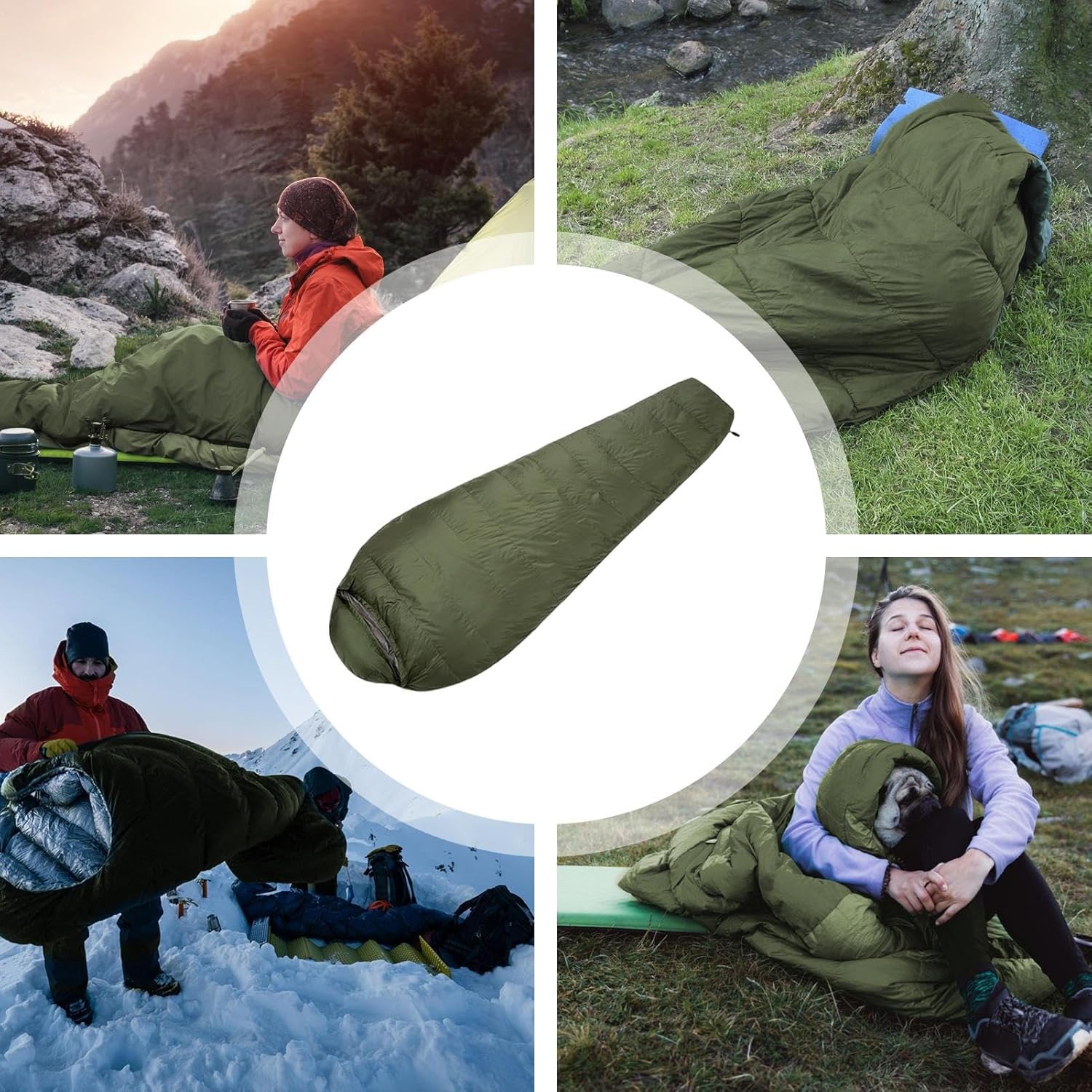 Design con cordino: con il suo design resistente con cordino, questo sacco nanna invernale è facile da appendere e riporre dopo l'uso. Questa funzione contribuisce anche al fatto che il riempimento diventa nuovamente soffice, fornendo così un ambiente morbido e accogliente. Design della custodia per cellulare: la custodia per cellulare del sacco a pelo invernale ti consente di accedere facilmente al tuo telefono cellulare e ad altri piccoli oggetti senza lasciare il tuo materiale confortevole. Sacco a pelo multifunzionale: scopri la funzione trapuntata del nostro sacco nanna invernale che funge anche da coperta o materassino grazie al suo design versatile a 360 aperti. Protezione antipioggia: il nostro sacco a pelo invernale è realizzato in tessuto impermeabile che crea una barriera contro la pioggia. Goditi una notte di sonno confortevole e senza paura di essere inzuppato e svegliati rinfrescati e pronti per l'avventura. Ideale per l'alpinismo: goditi notti calde e piacevoli mentre esplori la natura, sia che si tratti di un viaggio di campagna, di guida o di alpinismo.