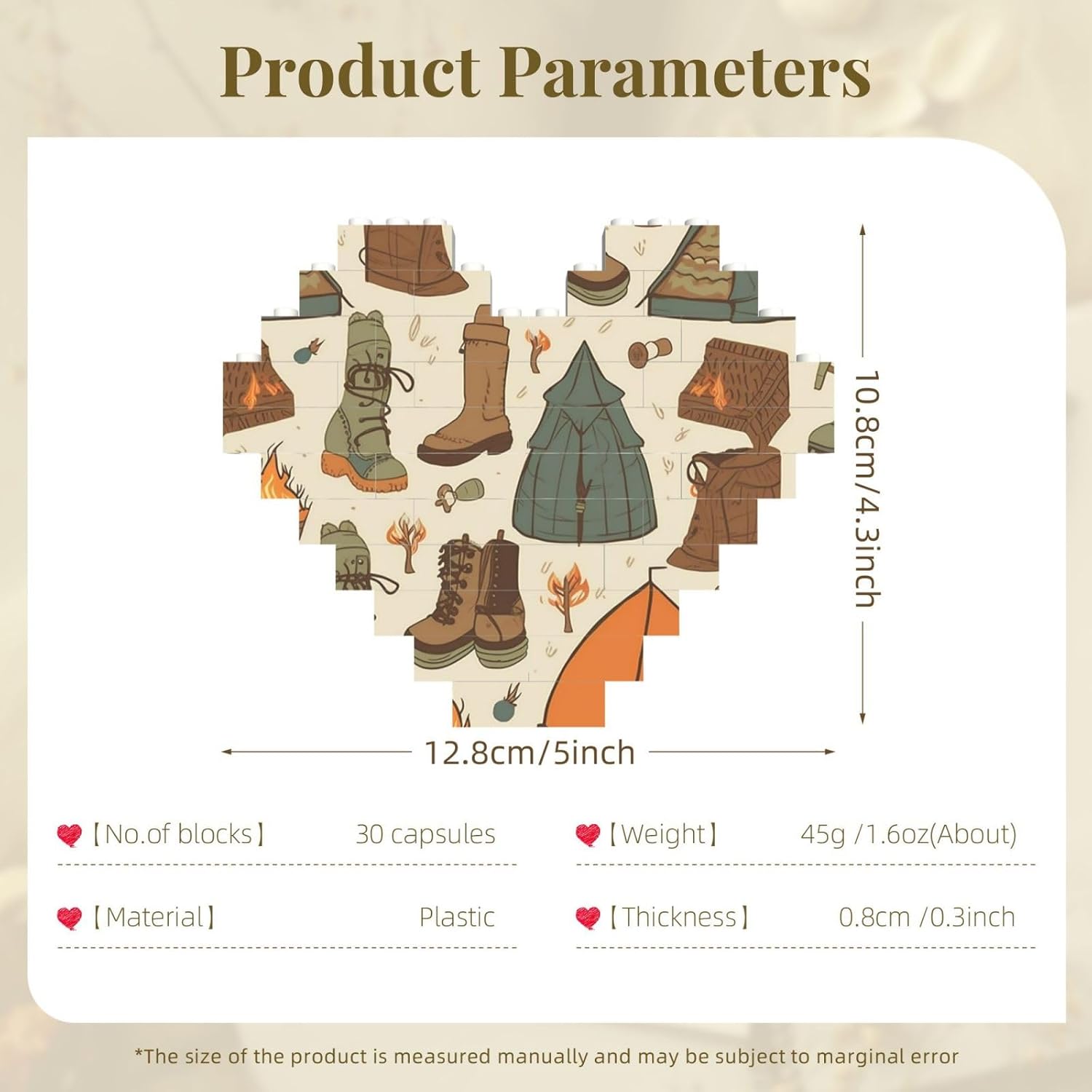 Sacco a pelo Stivali Campfire Puzzle da costruzione Puzzle a forma di cuore con foto personalizzate Puzzle fotografico per adulti Micro mattoncini 3D per la decorazione della casa Set di mattoni
