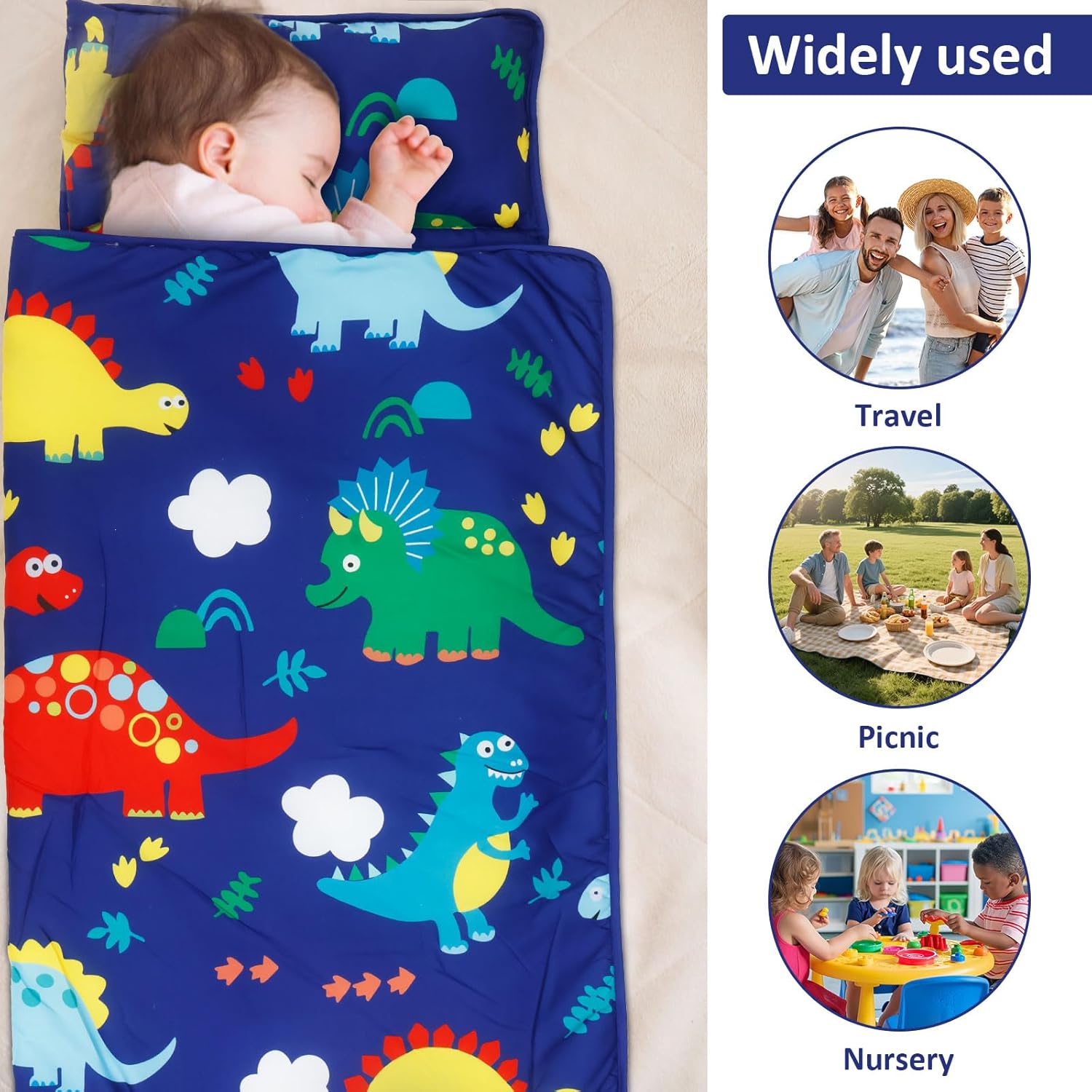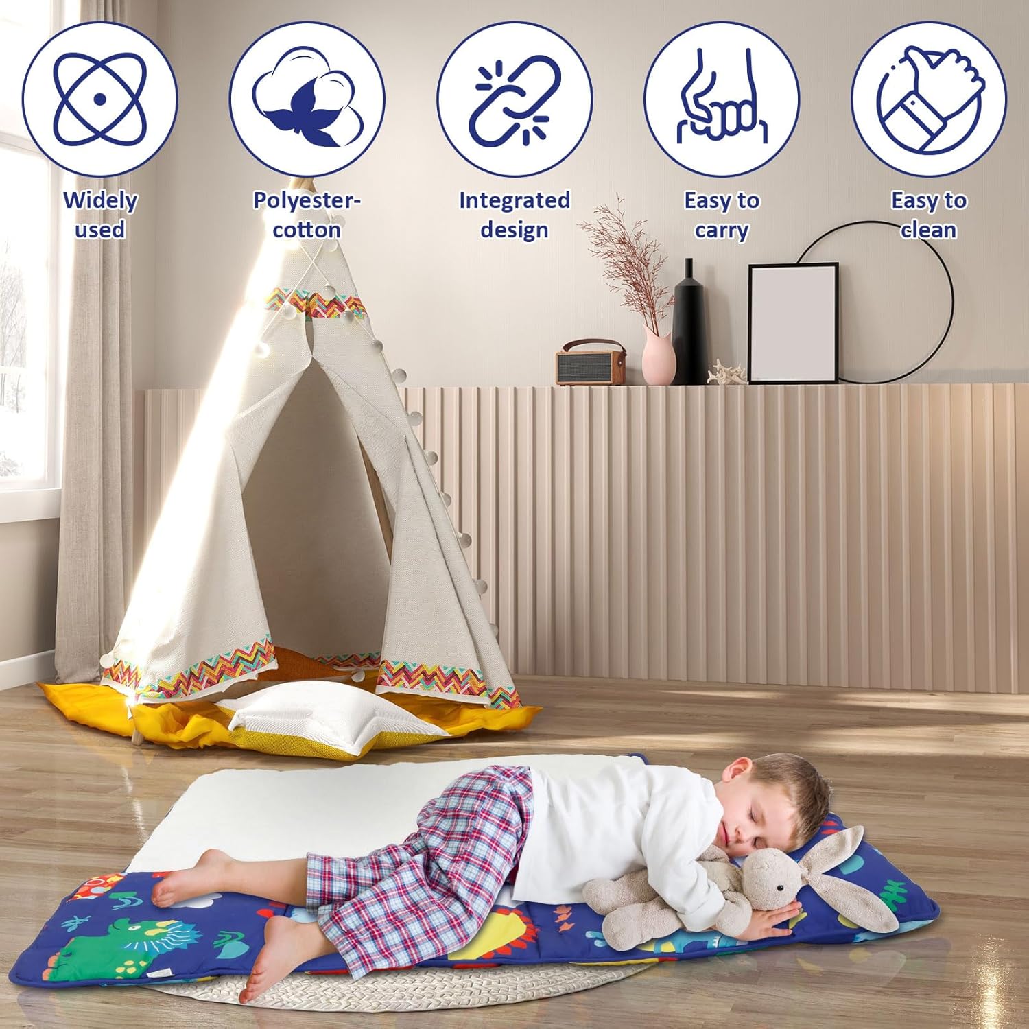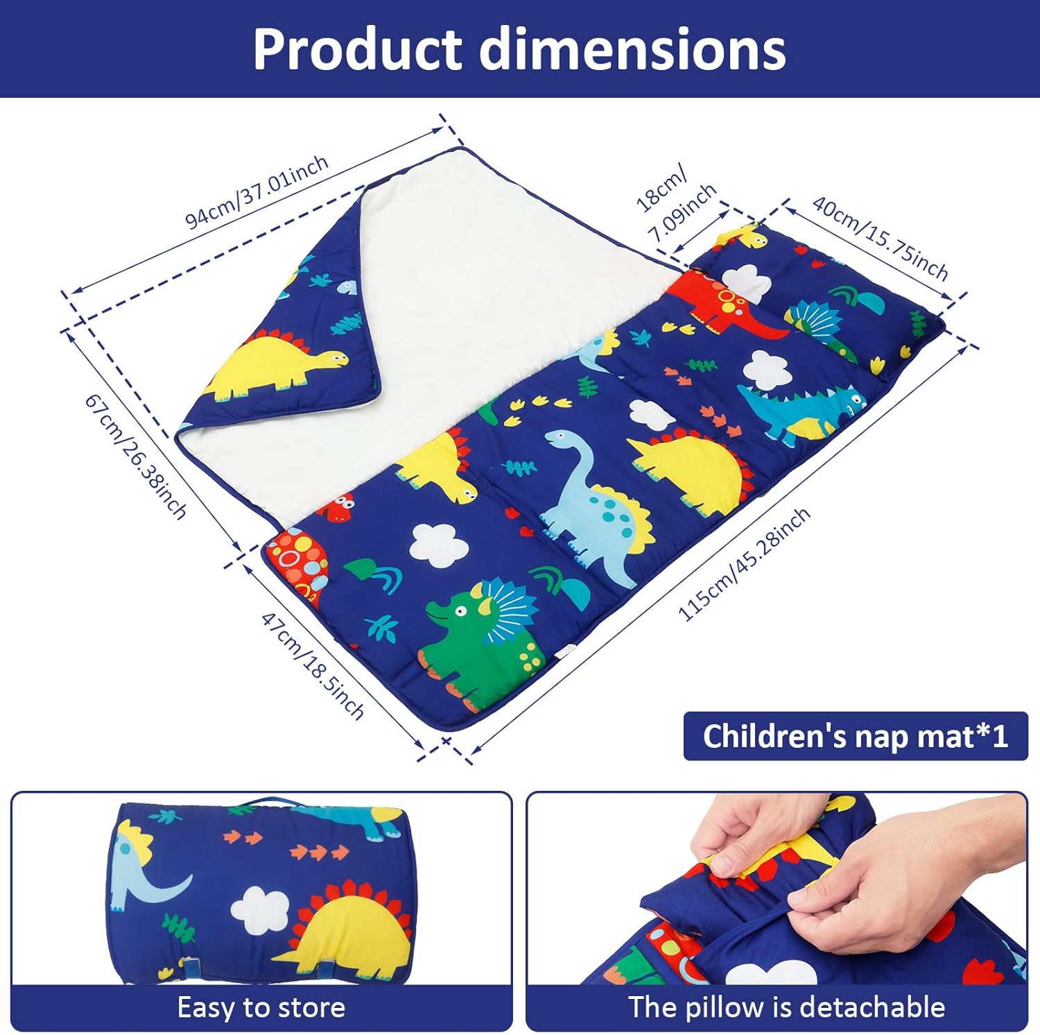 Design tutto in uno: il materassino misura 115 x 47 cm e combina coperta, cuscino e cuscino in un unico prodotto. Così si crea un luogo accogliente e sicuro dove i bambini possono riposare e andare alla deriva nei dolci sogni. Materiali di alta qualità: il tappetino per bambini è realizzato in policotone ed è imbottito con ovatta di seta, che garantisce una piacevole sensazione al tatto. La coperta ultra morbida anti-piega, offre calore e comfort e aiuta i bambini a rilassarsi. Leggero e portatile: il tappetino per bambini non è solo leggero, ma può anche essere arrotolato facilmente. Grazie alla cinghia di fissaggio e alla maniglia per il trasporto, può essere portato ovunque, sia all'interno che all'esterno. 【Risparmio di tempo e senza sforzo】Basta rimuovere il cuscino e mettere il tappetino in lavatrice. Asciugare e riutilizzare dopo la pulizia, risparmiando tempo e fatica. Versatile: sia all'asilo, in kita, a casa, in viaggio, in campeggio, in picnic o durante un pernottamento, questo tappetino per dormire assicura che il bambino si senta a proprio agio ovunque.