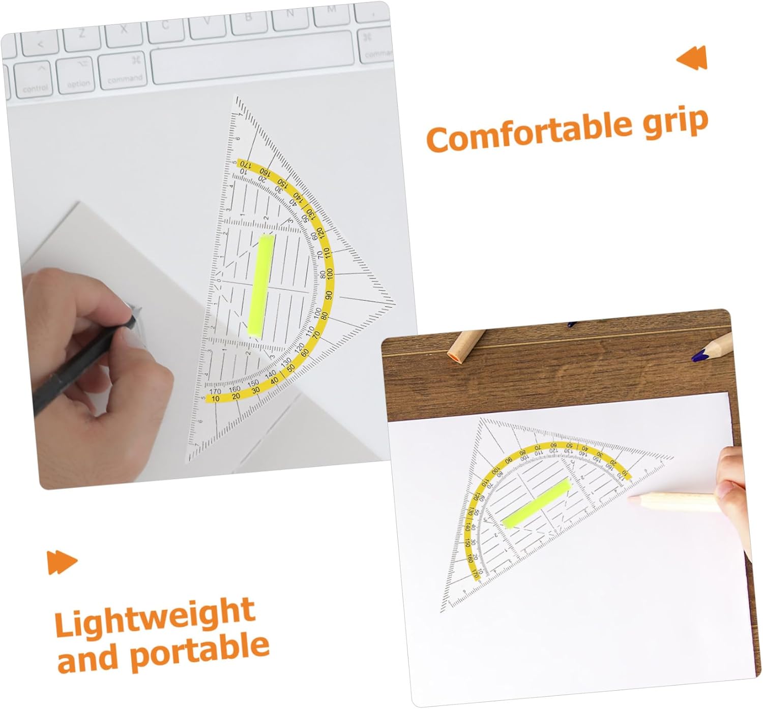 Struttura robusta: il righello con manico è realizzato con materiali di alta qualità, garantendo un'affidabilità a lungo termine che venga utilizzato come righello scolastico, strumenti da disegno o forniture per ufficio, righello triangolare in plastica, righello scolastico Uso scolastico: progettati per righelli per per la scuola, scale per architetti o forniture per disegno, questi set di righelli in grandi quantità garantiscono a tutti gli studenti e ai professionisti l'accesso a strumenti da ufficio affidabili in classe, scale per architetti, righelli per per la scuola Durata prolungata: i righelli geometrici sono realizzati in plastica trasparente per un uso ripetuto, garantendo che il set di righelli triangolari rimanga preciso per progetti di geometria, disegno o disegno, righello triangolare multifunzionale, righello goniometro Set versatile: può essere utilizzato come goniometro, righello triangolare, consentendo una soluzione completa di righello per la marcatura degli angoli per la scuola o l'ufficio, righello per la misurazione degli angoli, forniture per il disegno Facile da maneggiare: ogni righello in plastica con manico la presa e la regolazione del righello della scala, migliorando le prestazioni del righello da disegno in classe che in ufficio. forniture di misurazione, piccolo righello, kit di geometria