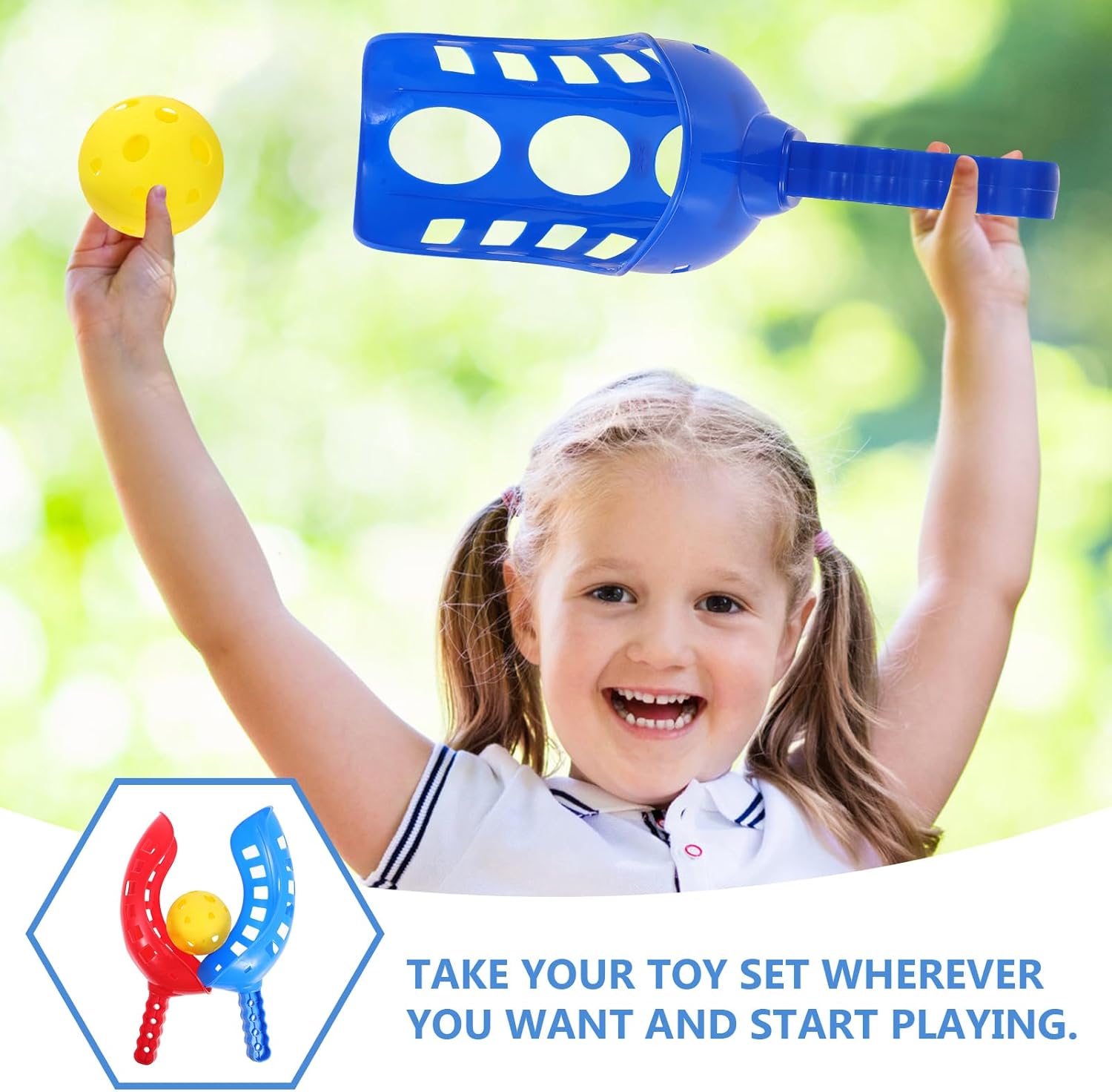 Set completo per due giocatori: include palette e palline, consentendo a due giocatori di divertirsi a lanciarsi e a prendersi, il che lo rende un'ottima aggiunta alle riunioni di famiglia o alle feste dei bambini. Gameplay divertente e coinvolgente: vivi l'emozione del gioco Scoop Ball con il suo lancio unico e, perfetto per i bambini che vogliono divertirsi con le attività all'aperto migliorando al contempo la coordinazione occhio-mano e le capacità motorie. Perfetto per tutti i livelli di abilità: che il tuo bambino sia un principiante o un giocatore , questo gioco di lancio e cattura è adatto a tutti i livelli di abilità e offre ore di intrattenimento per tutta la famiglia Materiale durevole e sicuro: realizzato in plastica robusta, questo gioco con la palla cucchiaio garantisce un utilizzo e un gioco sicuri per i bambini, rendendolo un'ottima scelta per le attività di genitore-figlio Design leggero e portatile: progettato per una facile trasportabilità, questo set di palline è ideale per giocare in giardino, giochi di lancio in giardino o da portare nei parchi giochi e nei campi della palestra per un divertimento senza fine.
