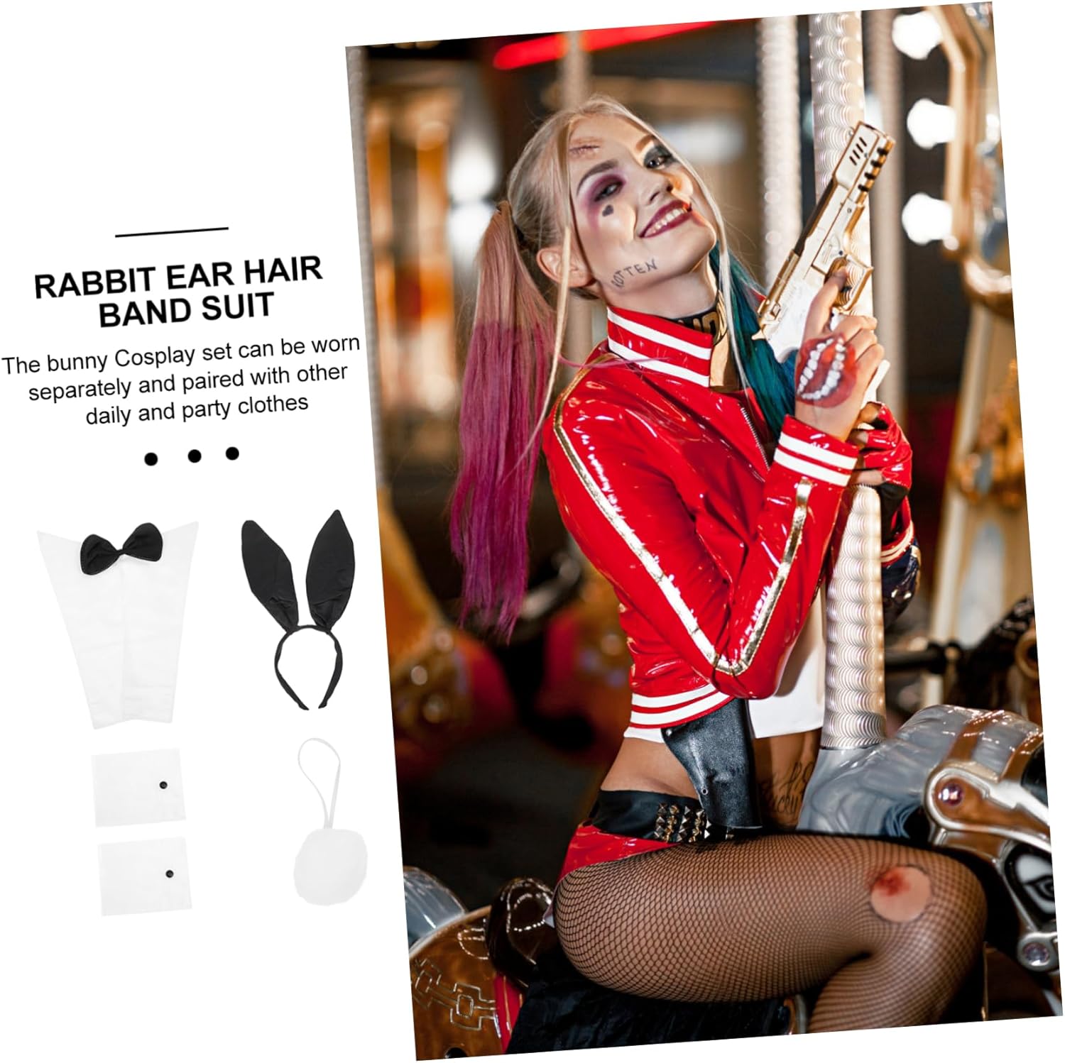 Fascia per da festa: gli accessori sono riutilizzabili e puoi usarli più volte, fascia carina Kit di accessori per travestimenti da coniglio: realizzato principalmente con materiale in tessuto di alta qualità, durevole per un uso duraturo, fasce per con orecchie da coniglio Fascia per con orecchie da coniglio per donna: il design adorabile e divertente può darti una sensazione di utilizzo, fasce per con orecchie da coniglio per le feste Accessorio per cosplay: sono ottimi per il carnevale, la celebrazione di festival o feste in maschera, coda da coniglio cosplay Decora gli accessori per da cosplay: selezionati e buoni, non facili da strappare o rompere, decorazione del colletto da cosplay