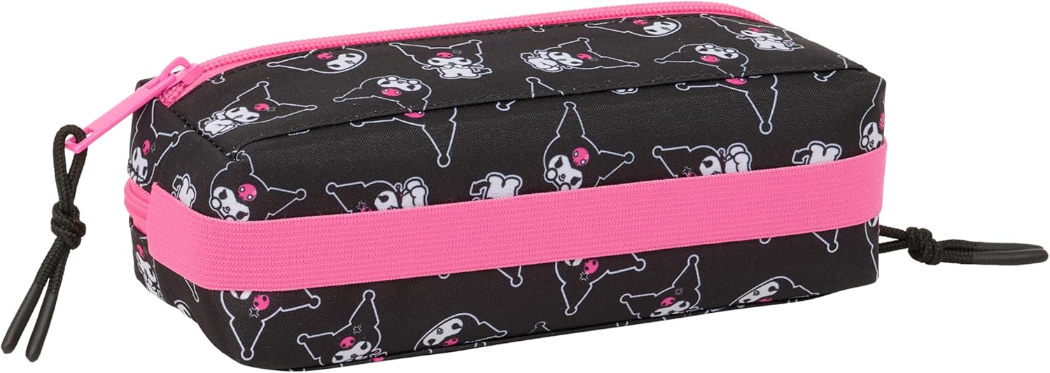 safta KUROMI - Astuccio triplo piccolo, astuccio per bambini, ideale per bambini in età scolastica, comodo e versatile, qualità e resistenza, 22 x 6 x 8,5 cm, nero/fucsia, M, Casual