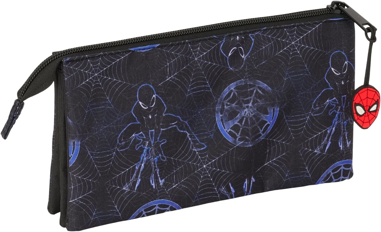 safta SPIDERMAN ATTACK - Astuccio triplo, astuccio per bambini, ideale per bambini in età scolastica, comodo e versatile, qualità e resistenza, 22 x 3 x 12 cm, Nero, M, Casual