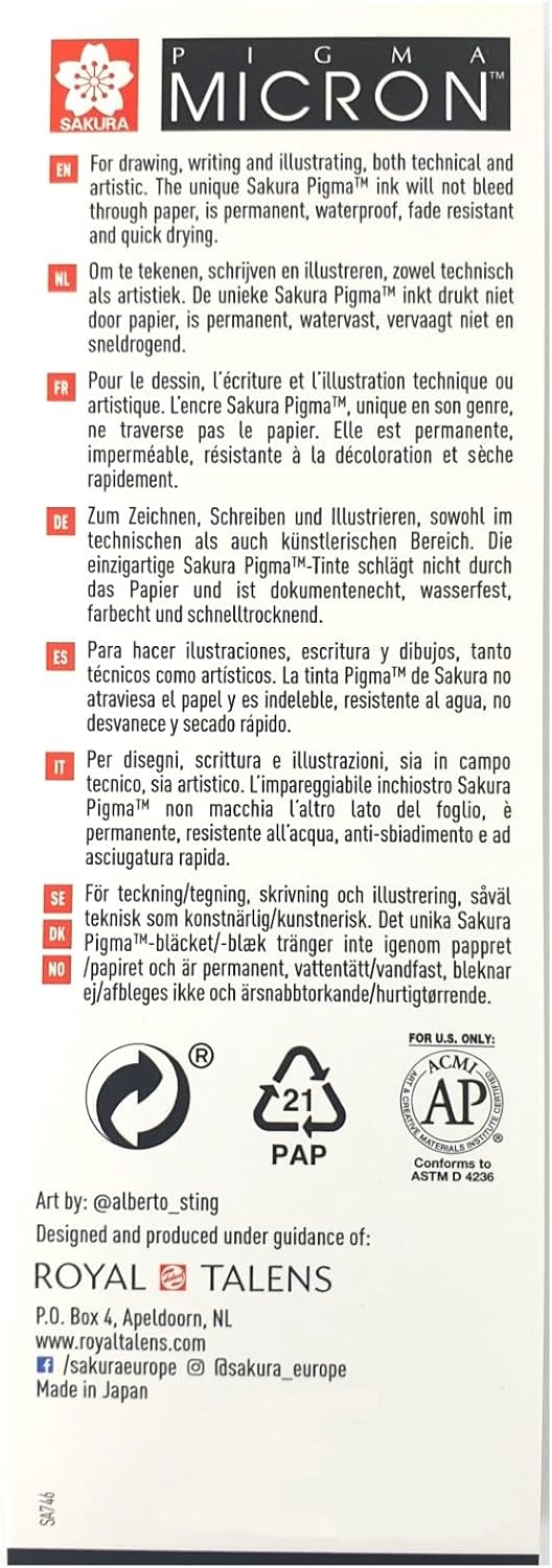 + ESTOMPE et 1 CARTE La punta durevole porous-point offre una linea coerente e una superba colore transferal Sakura Sakura Pigma inchiostro Custodia unica è il primo al mondo a combinare gli inchiostri pigmenti e inchiostro a base d' acqua, per dei colori che non attraversa la carta. L' inchiostro di qualità di archiviazione è anche, alla luce, indelebile e asciutta a un PH neutro. Ogni confezione contiene una piuma di le taglie Made in Japan