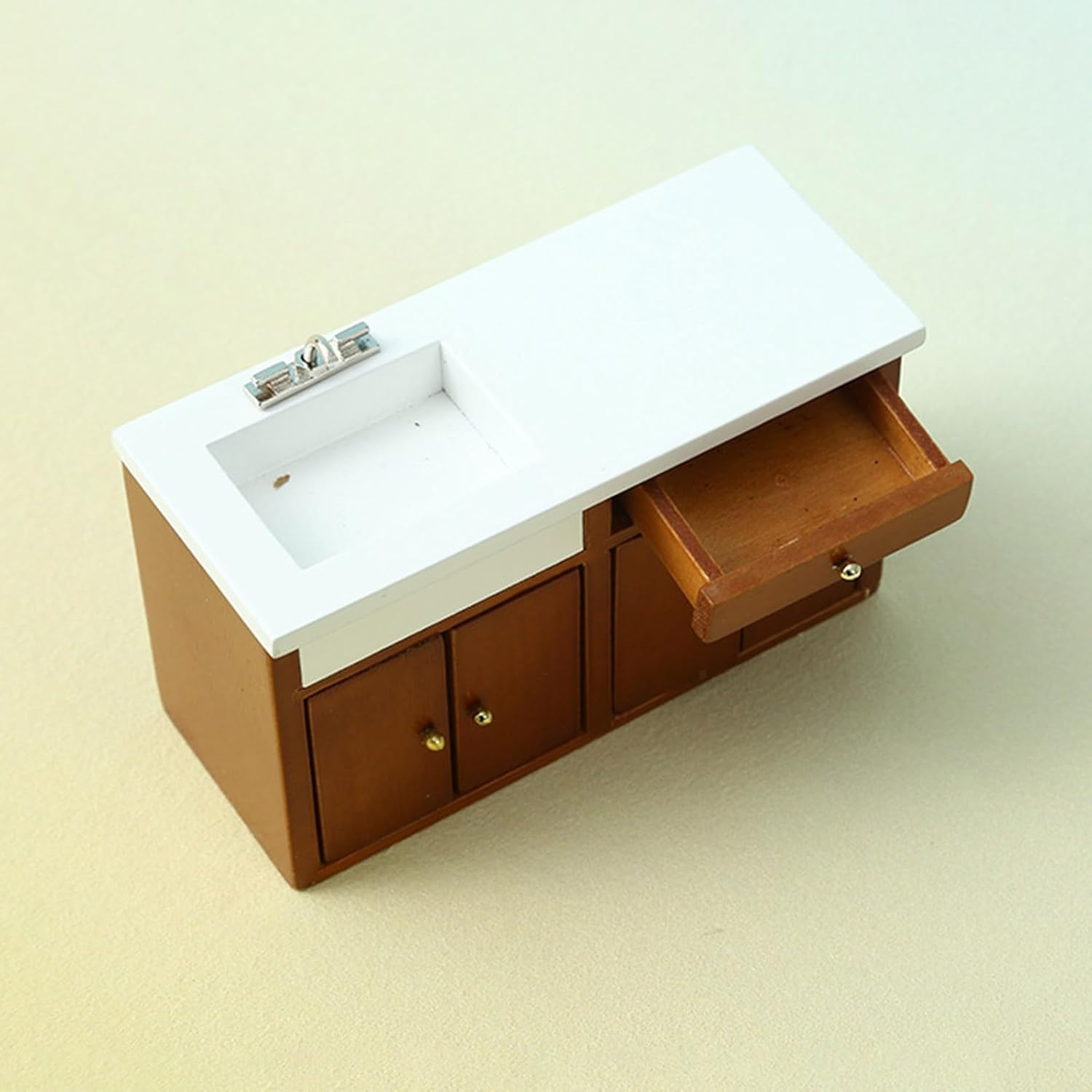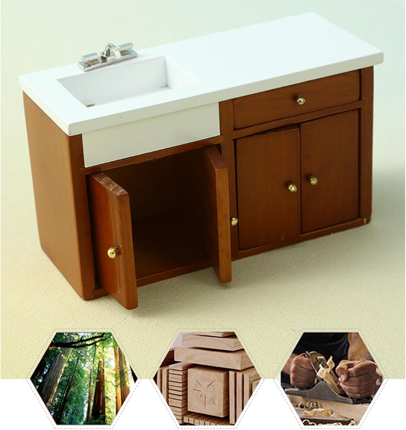 L'eccellente modello di aspetto è molto vicino alla realtà. Ottimi oggetti di scena fotografici Modello elaborato e vintage dell'armadio da cucina, compatto e tridimensionale, alto grado di riduzione, i materiali in legno non sono facili da deformare. Ottima decorazione per la casa delle bambole Materiali in legno. Non si deforma facilmente Include: 1 mobile lavabo (altri accessori non sono inclusi) È molto divertente chi ama i decoratori delle case delle bambole