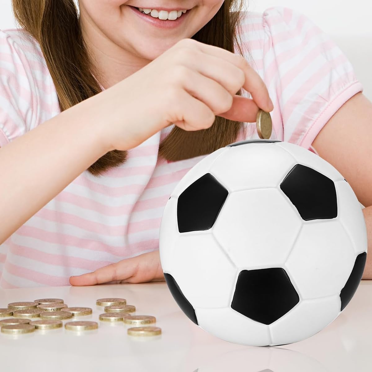 Salvadanai a forma di pallone da calcio per bambini: questo salvadanaio a forma di pallone da calcio per bambini ha una vivace forma di pallone da calcio, perfetto per gli appassionati di calcio e un regalo perfetto per i più piccoli. Un salvadanaio pratico ed elegante che i bambini adorano conservare in questo adorabile amico salvadanaio e vedere crescere i propri risparmi. Salvadanaio infrangibile: il materiale principale di questo salvadanaio a forma di pallone da calcio è la plastica vinilica PVC. A differenza di altri fragili salvadanai in vetro o ceramica, questo salvadanaio a forma di pallone da calcio è flessibile, molto resistente e sicuro. Slot per salvadanaio: un'ampia entrata nella parte superiore garantisce che ogni moneta entri, e un tappo a vite in plastica nella parte inferiore di questo salvadanaio a forma di pallone da calcio; basta girare il pulsante nel punto giusto. Non è così facile per i più piccoli entrare in un ciclo infinito di rimozione delle monete dal salvadanaio, ma è facile rimuoverlo quando sono pronti ad aprire la scatola dei lavoretti per un po' di divertimento. Dimensioni: il salvadanaio misura 15x14 cm, abbastanza grande da contenere un sacco di monete. Il salvadanaio a forma di pallone da calcio può essere utilizzato anche come decorazione per la cameretta dei più piccoli. Il regalo perfetto per i più piccoli: questo salvadanaio a forma di pallone da calcio per bambini e bambine può aiutare i più piccoli a sviluppare l'abitudine al risparmio, insegnando loro a iniziare a risparmiare presto. Un regalo perfetto per bambini e adulti per compleanni, Natale, Capodanno, feste, ecc.