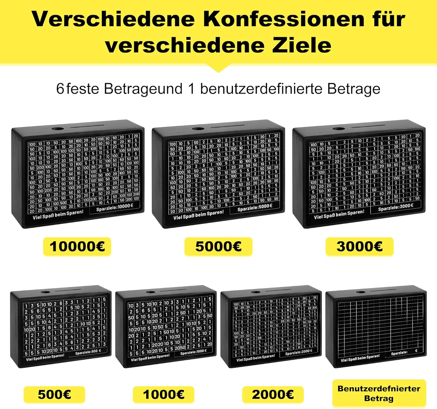 MATERIALE DI ALTA QUALITÀ: Questo salvadanaio da banco realizzato in legno molto spesso, molto resistente, è più semplice e resistente dei tradizionali salvadanai che devono essere assemblati, la superficie del materiale è liscia, sicura e non tossica, adatta per riporre tutti i tipi di monete e banconote. NESSUN MONTAGGIO NECESSARIO: il nostro salvadanaio in legno ha un design tutto in uno, non è richiesto alcun assemblaggio, aprilo e puoi usarlo, ha due fessure nella parte superiore. Al suo interno si possono inserire banconote e monete, sul retro c'è un foro con tappo morbido, puoi prelevare i soldi ritagliandoli quando arrivi a destinazione, è molto comodo, in più abbiamo anche 4 pennarelli per inserire la somma di denaro. OBIETTIVI MULTIPLI ALLO STESSO TEMPO: questa scatola di risparmio numerica è riutilizzabile e ti consente di impostare più obiettivi di risparmio, forniamo adesivi per obiettivi di risparmio da € 500, € 1000, € 2000, € 3000, € 5000 e 2 adesivi vuoti, puoi impostare i tuoi obiettivi di risparmio come preferisci. TI AIUTA A CREARE UN'ABITUDINE DI RISPARMIO: La scatola di risparmio crea un divertente piano di risparmio per te, ti aiuta a contrassegnare l'importo e a monitorare i tuoi progressi, quando tutti i numeri sono contrassegnati significa che il tuo obiettivo è stato raggiunto e puoi goderti il processo di risparmio mentre raggiungi il tuo obiettivo. REGALO PER TUTTI: Il salvadanaio con numeri di spunta è perfetto da regalare in occasioni speciali come vacanze, compleanni, ecc. Questo salvadanaio digitale è adatto a tutti, anche gli anziani e i bambini possono usarlo facilmente così puoi pianificare meglio le tue finanze.