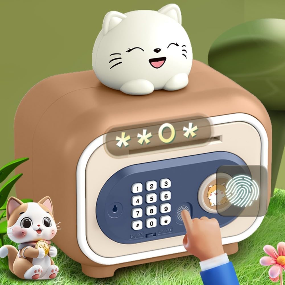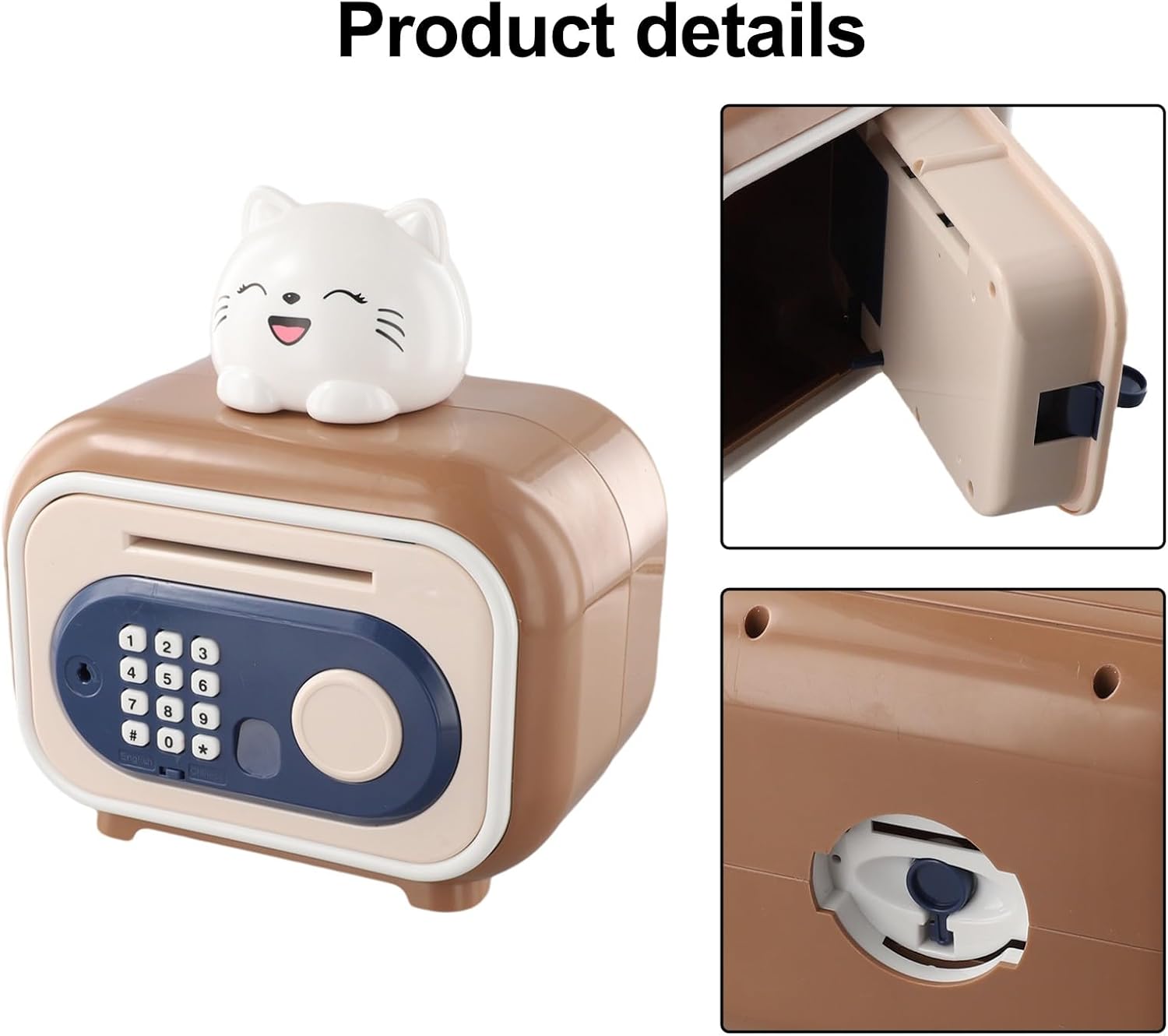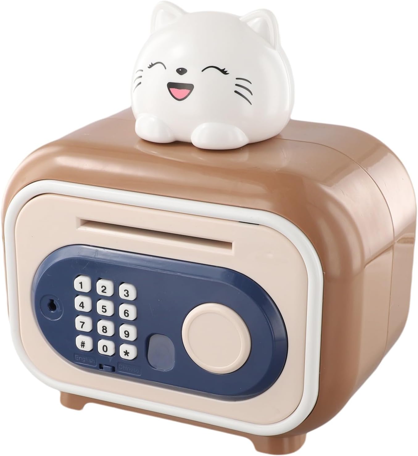 [Protezione intelligente della password] Dotato di un blocco sicuro con password, questo salvadanaio garantisce la sicurezza con un codice predefinito di La porta si sblocca dopo aver inserito la password corretta e verificato le impronte digitali, mantenendo i tuoi risparmi protetti. [Robusta struttura in ABS] Realizzato in robusta plastica ABS, questo salvadanaio resiste all'uso quotidiano e alla manipolazione approssimativa, rendendolo perfetto per i bambini che imparano a gestire il denaro mentre dura a lungo. [Strumento finanziario educativo] Questo salvadanaio non solo funge da opzione di archiviazione sicura, ma educa anche i bambini sul valore del risparmio e della responsabilità finanziaria fin dalla tenera età. Funzionamento a batteria con opzioni di lingua: utilizza 3 batterie AA non ricaricabili; bassa potenza può reimpostare la password. Passa facilmente dalla modalità inglese a quella cinese e goditi filastrocche giocose.